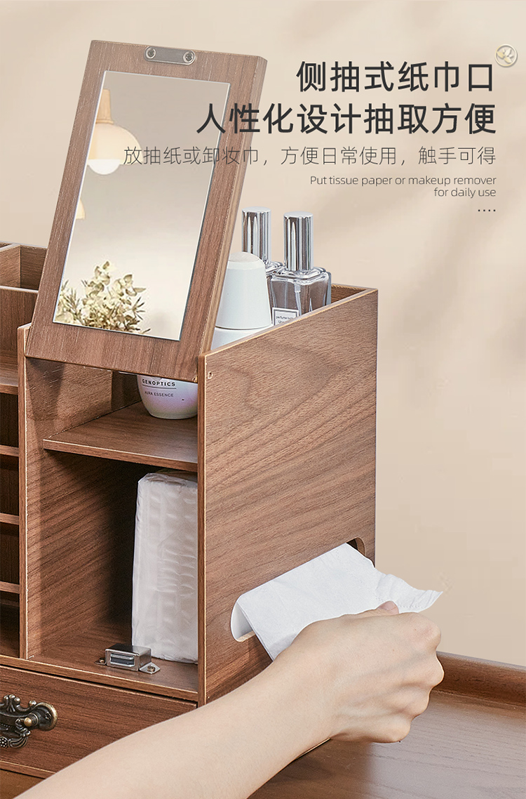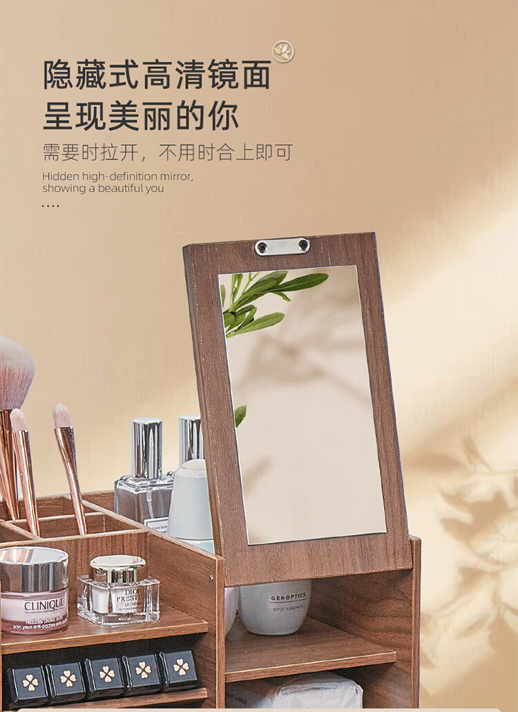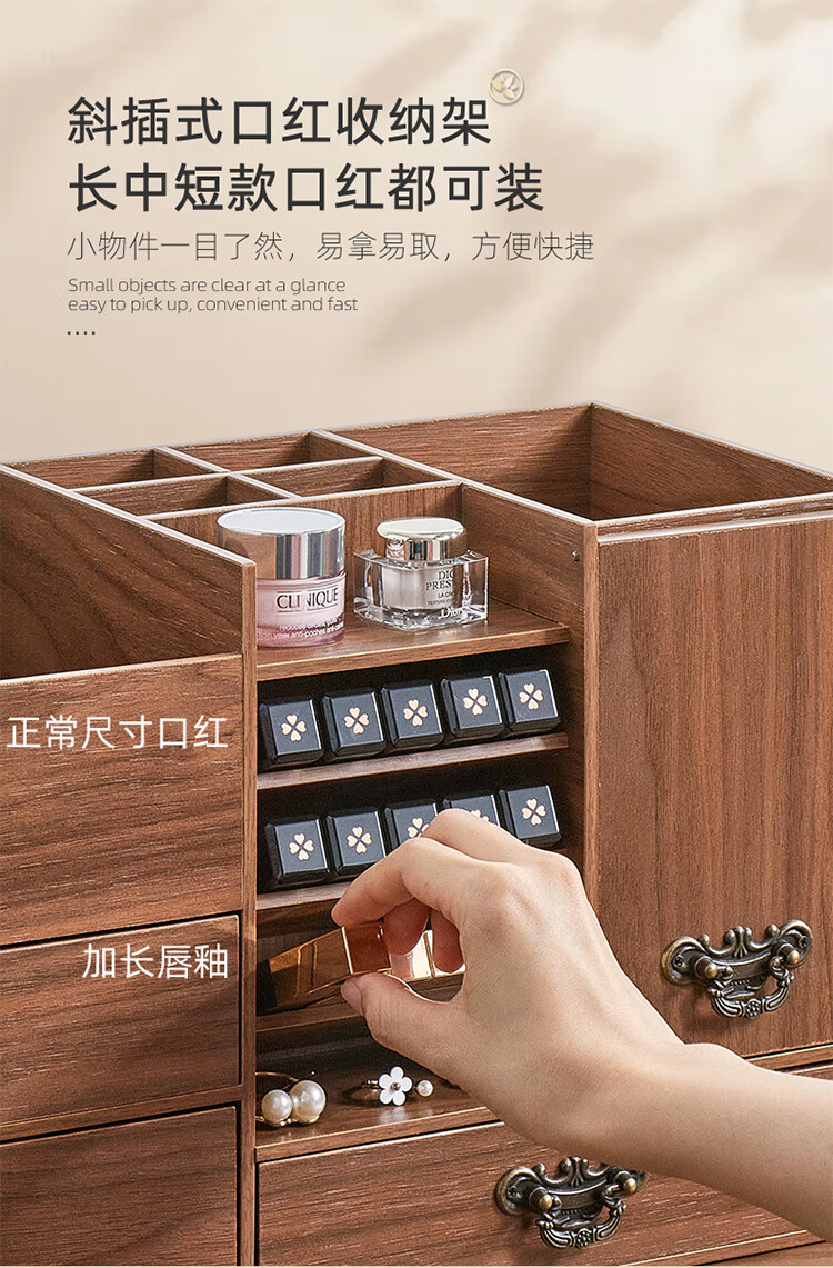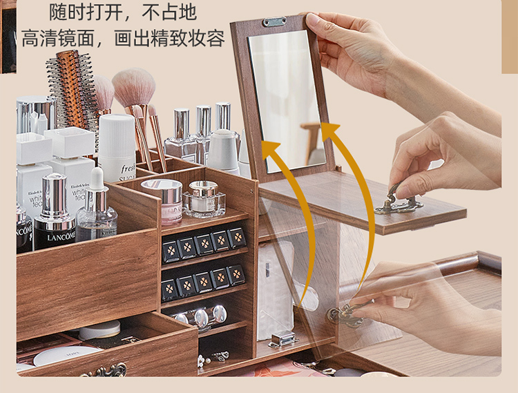 Cosmetics storage box large capacity home bedroom wooden dresser skin care product storage rack extra large brush rack extra large brush