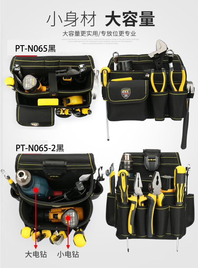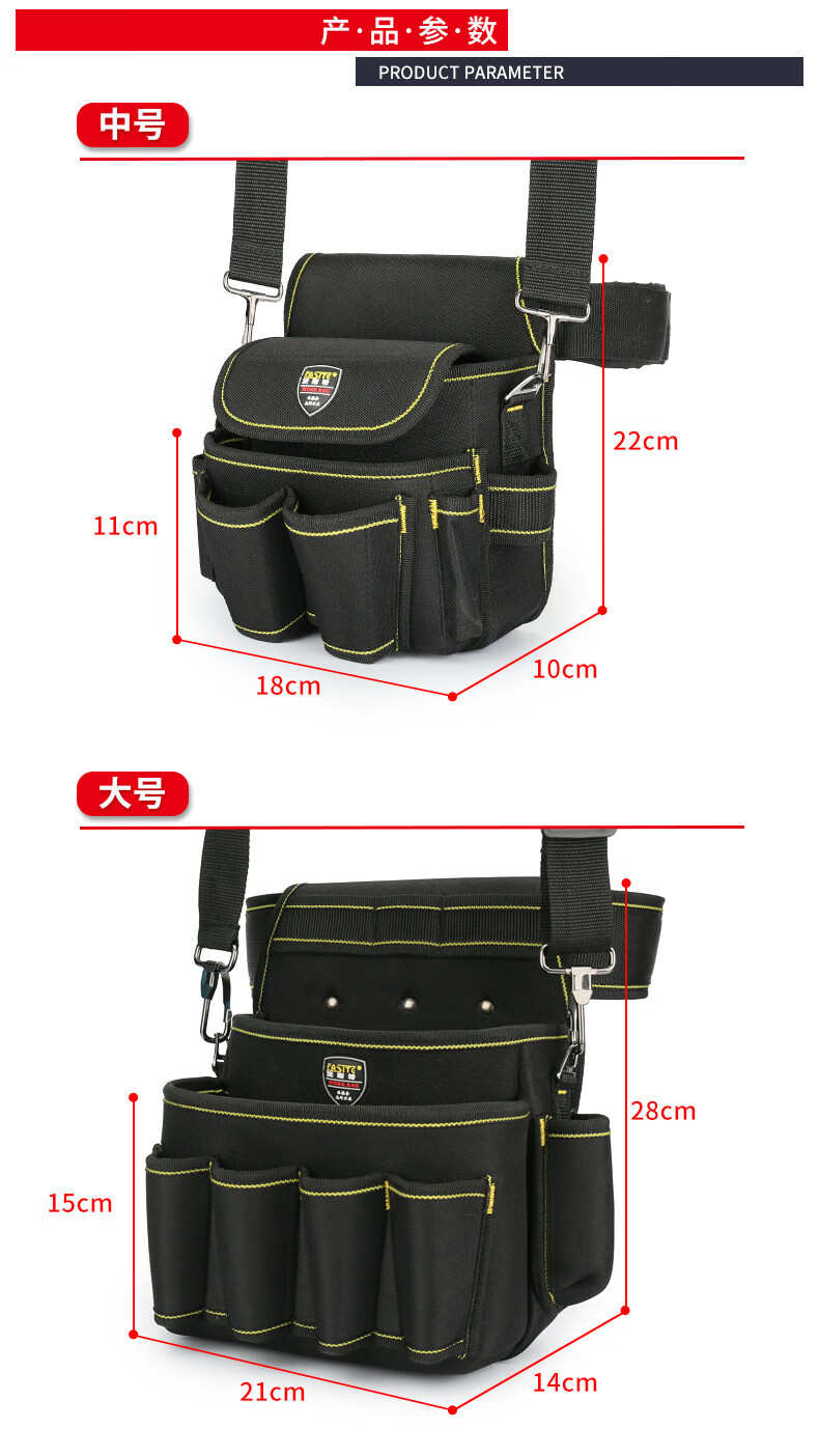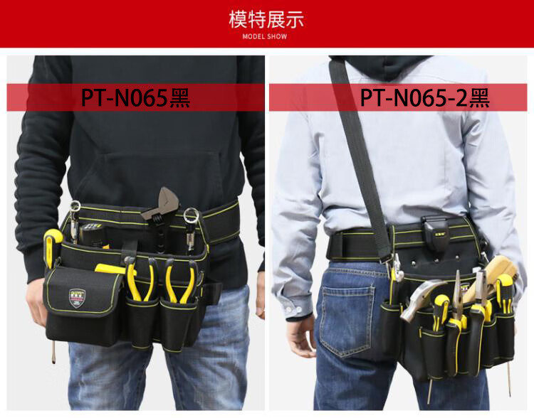 RSRDDY electrician cross-body large waist bag high-altitude waist bag canvas electrician bag multi-functional portable tool bag PT-N066 medium size with belt and shoulder straps