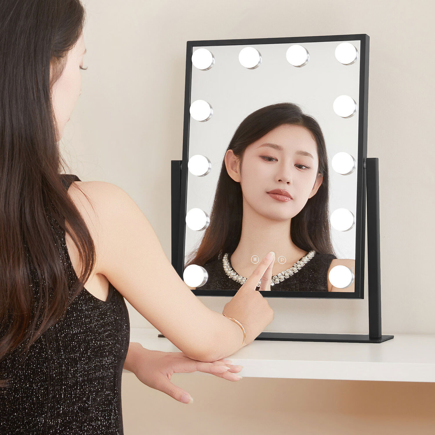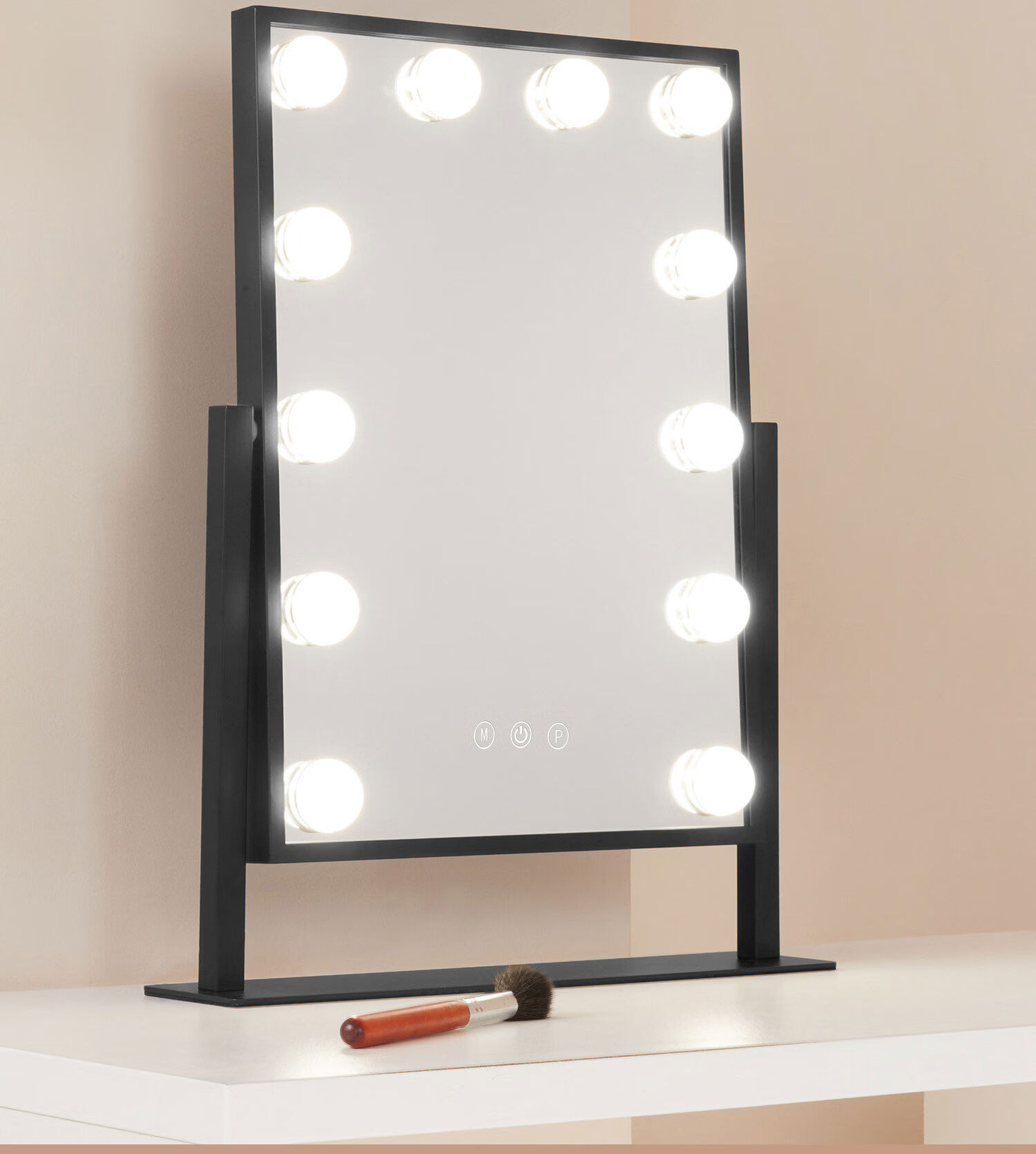 Desktop makeup mirror with light LED high-definition makeup mirror smart touch special makeup artist mirror beauty mirror white mirror 25*30CM plug-in model