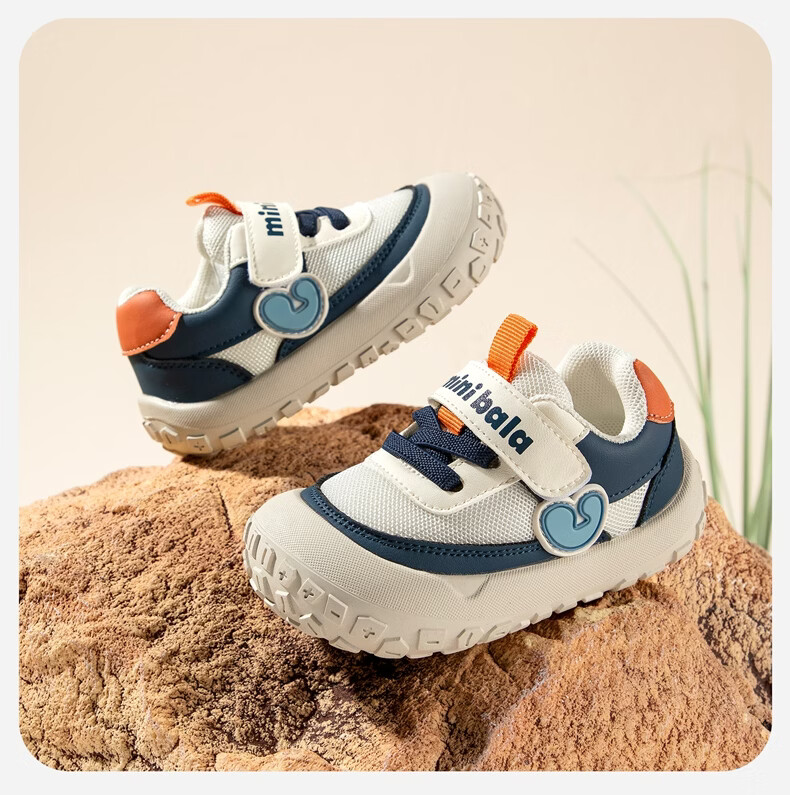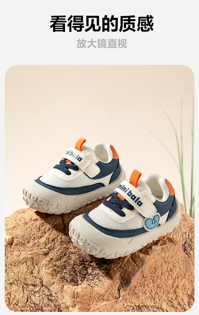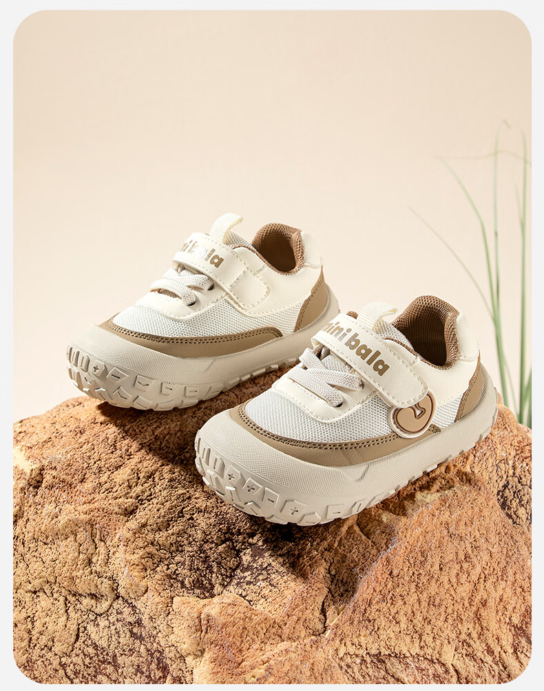 Minibala children's shoes, children's toddler shoes, spring new baby breathable lightweight sports shoes, infant and child anti-collision soft-soled mesh shoes, khaki size 23, suitable for feet 13.8-14.3cm long