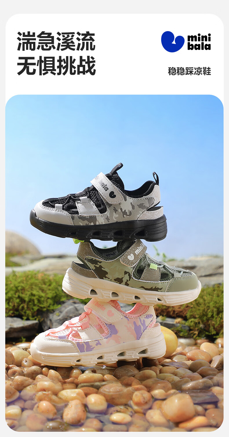 Minibala (minibala) children's shoes, children's sandals, summer new river tracing shoes, boys' breathable beach shoes, girls' sports, leisure, anti-collision and versatile rice/pink size 25 suitable for feet length 13.8-14.5cm