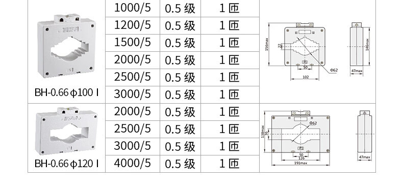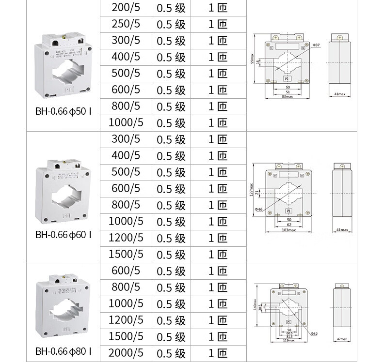 Chint AC current transformer 30 0.5 level 1 level 3 current ratio 75/150/300/5A BH-0.66_30B_50_5A_1 turn_3 level