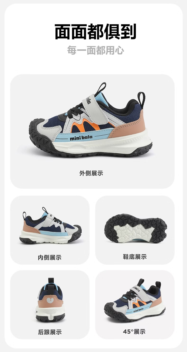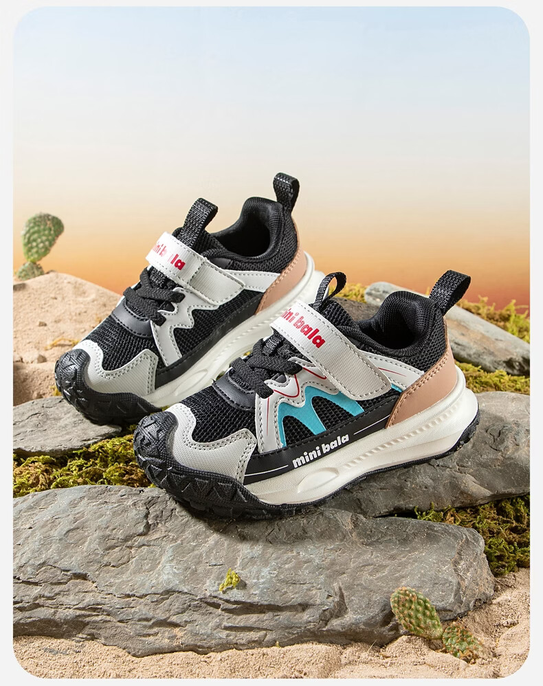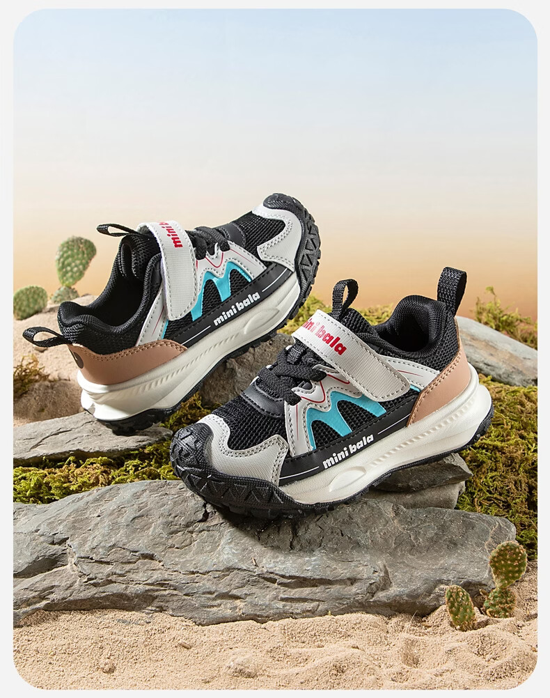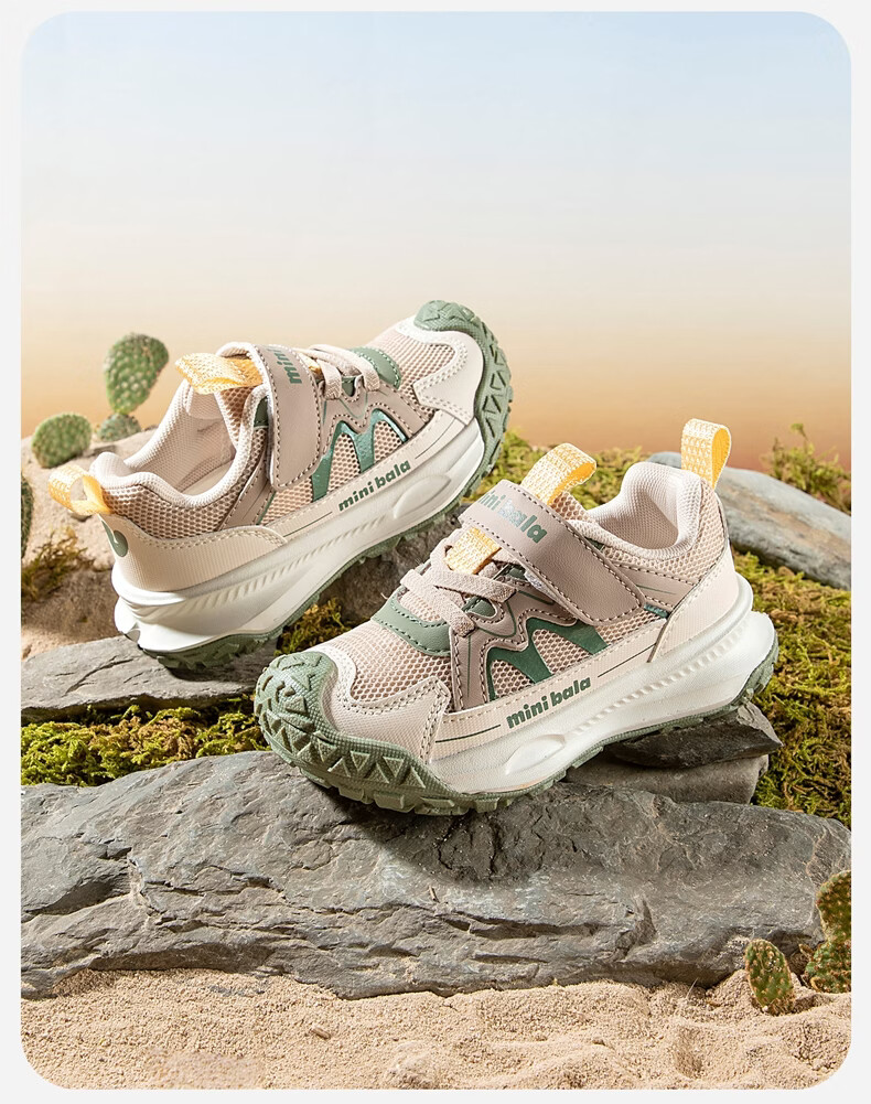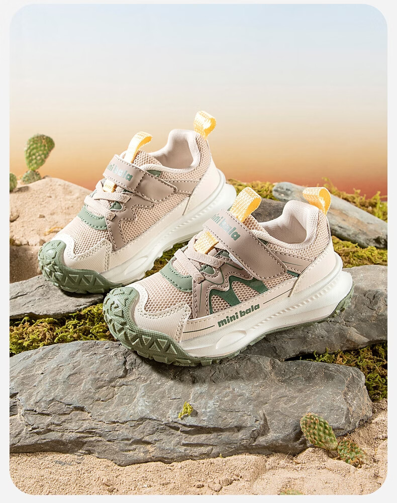 Minibala children's shoes, children's sports shoes, spring new running shoes for boys and girls, children's outdoor leisure, comfortable and versatile, coffee green, size 29, suitable for feet length 17.0-17.5cm