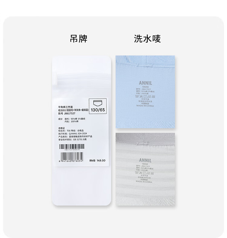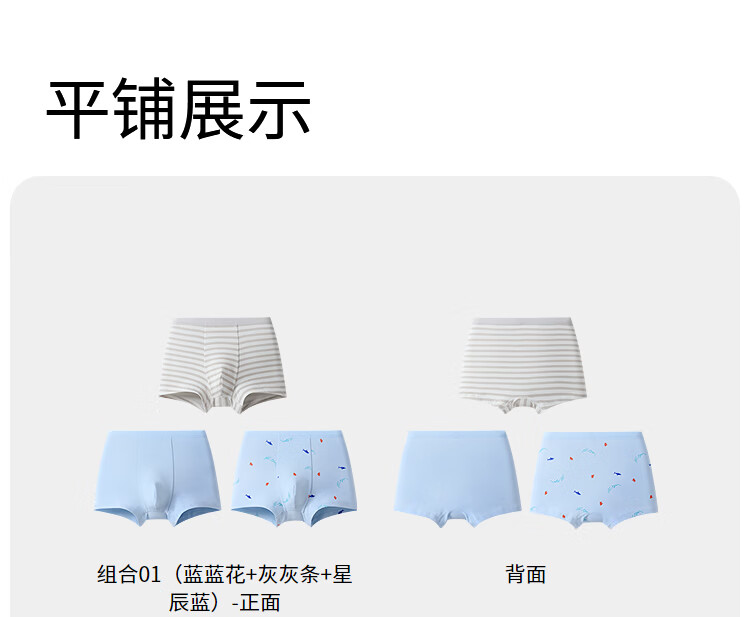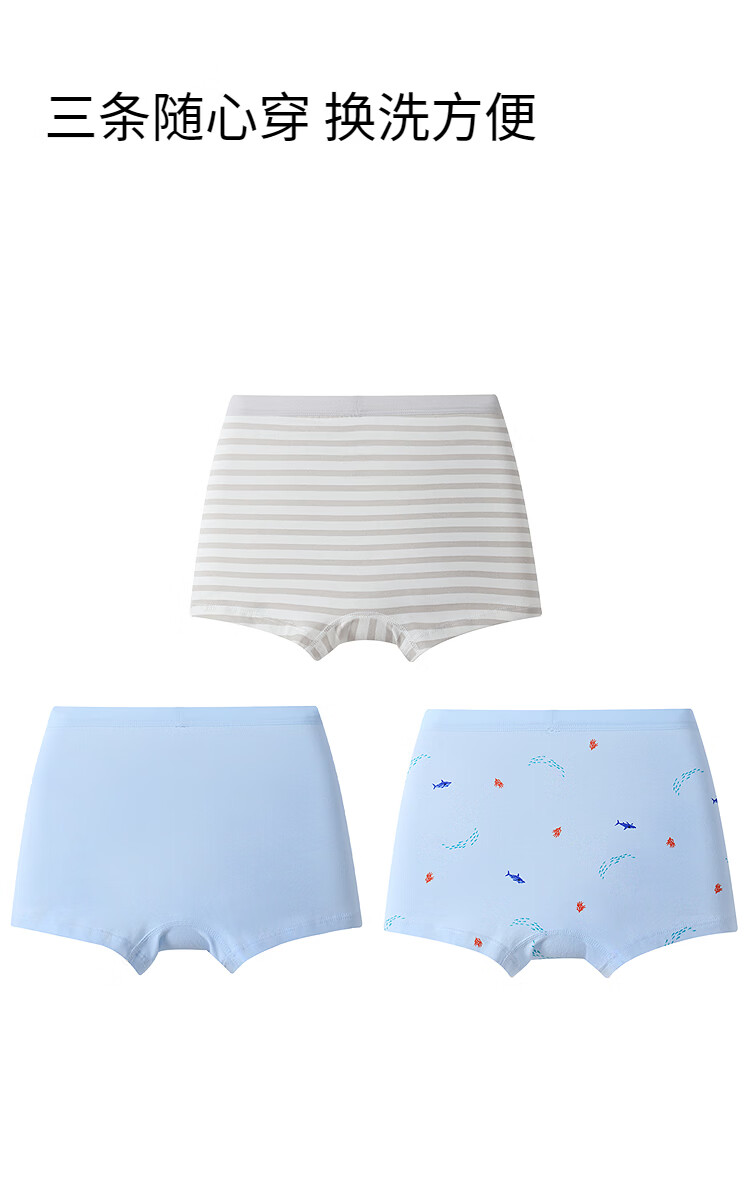 Anair boys' boxer briefs three-piece set 2026 spring new cotton boxer briefs, skin-friendly, breathable and antibacterial, combination 01 (blue flowers + gray stripes + star blue) 110