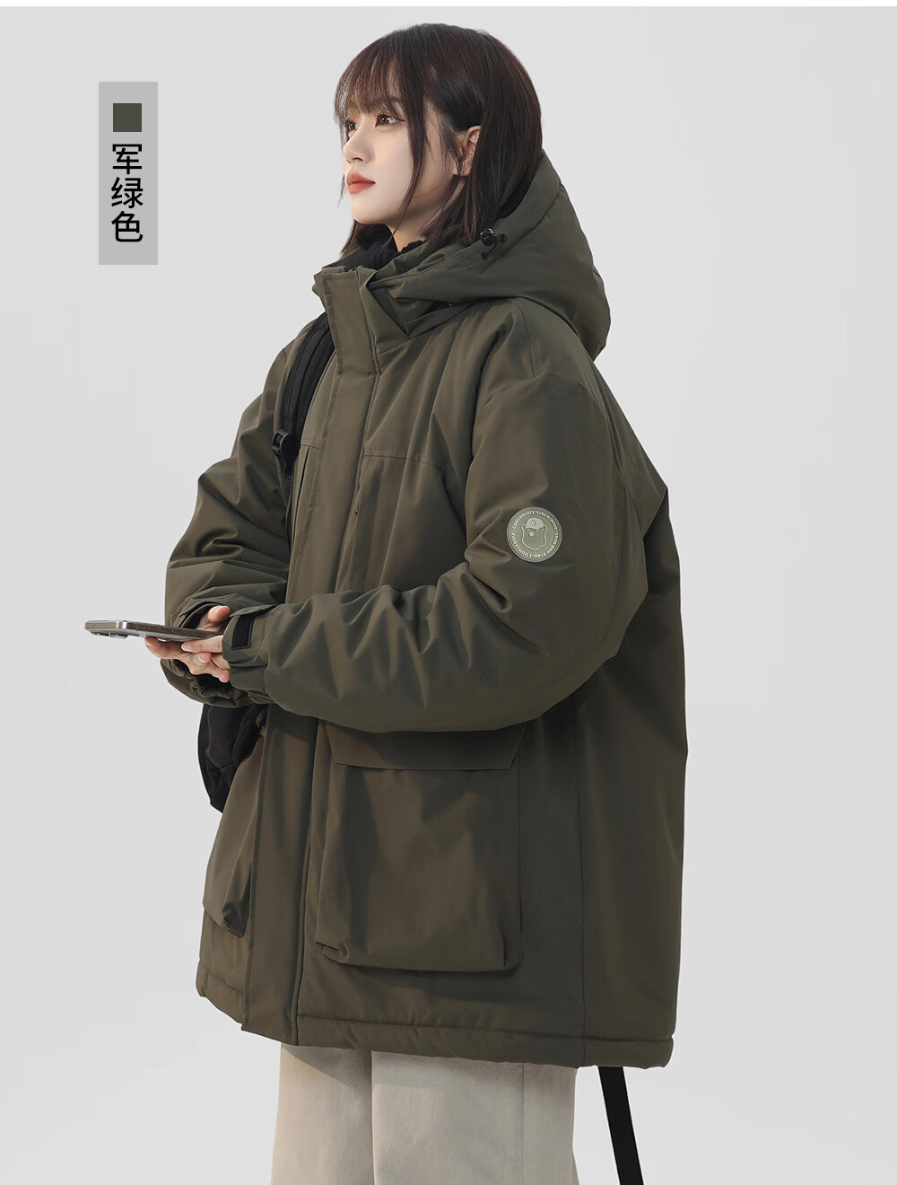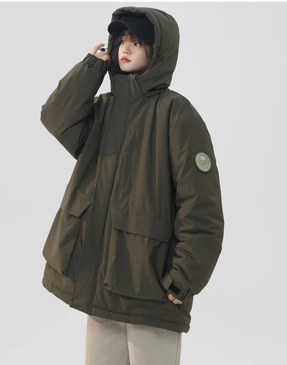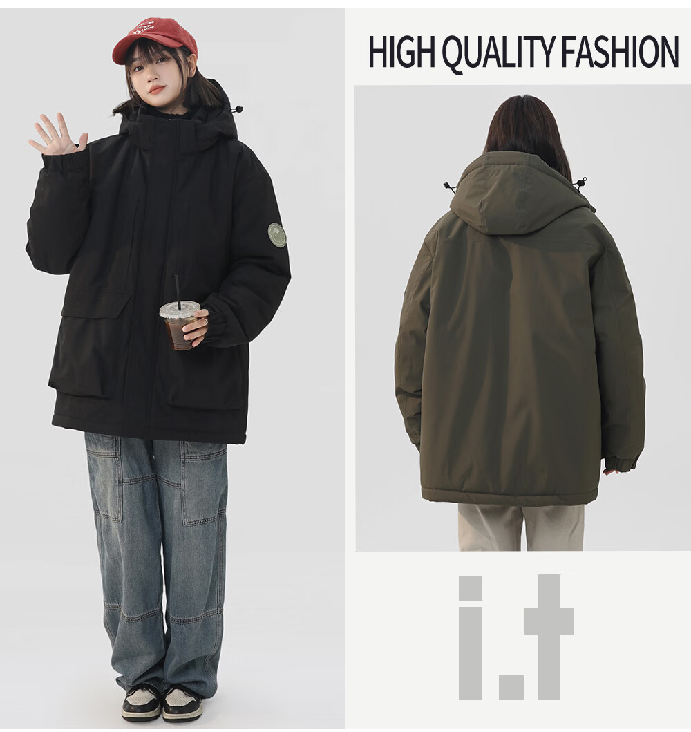 CHOCOOLATE it American trendy brand workwear hooded casual versatile cotton coat winter new thickened warm couple's jacket military green M recommended 100-120Jin Jin equals 0.5 kg