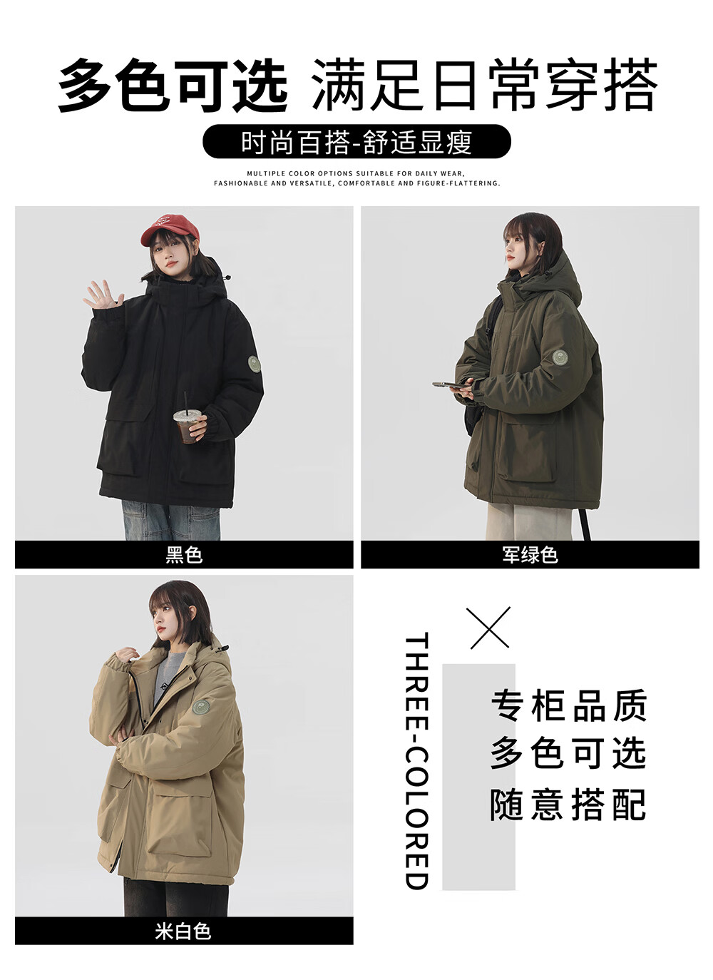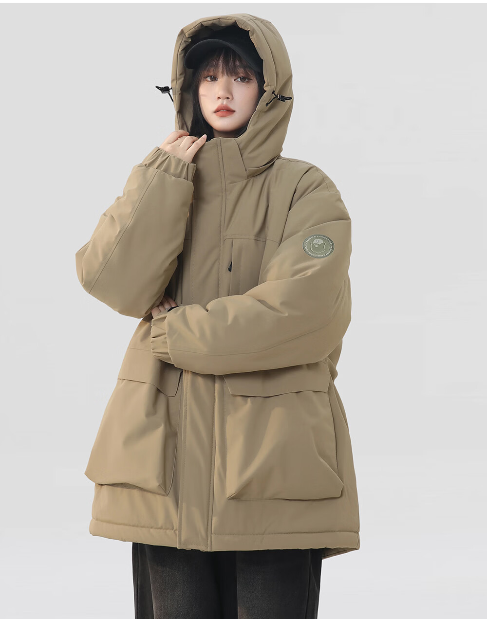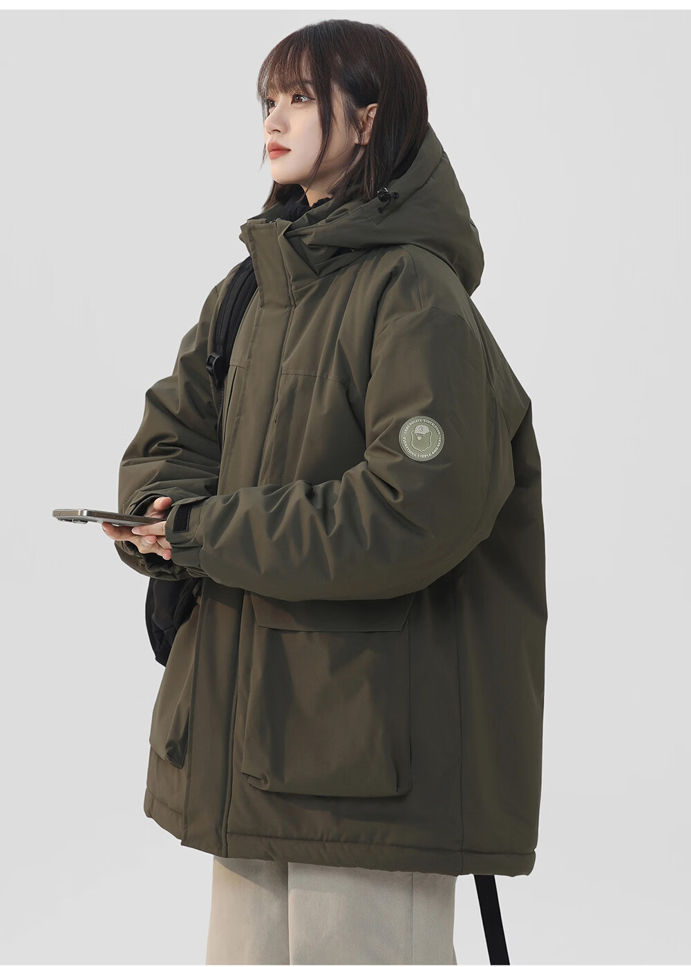 CHOCOOLATE it American trendy brand workwear hooded casual versatile cotton coat winter new thickened warm couple's jacket military green M recommended 100-120Jin Jin equals 0.5 kg