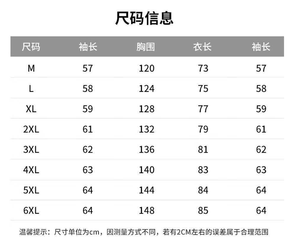 Size (cm) 42 44 46 48 50