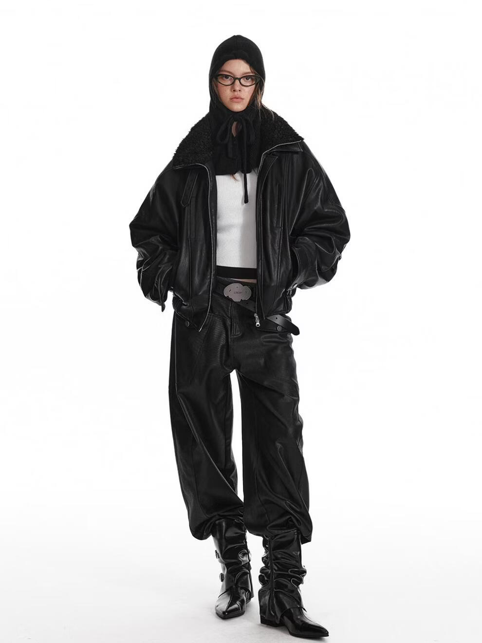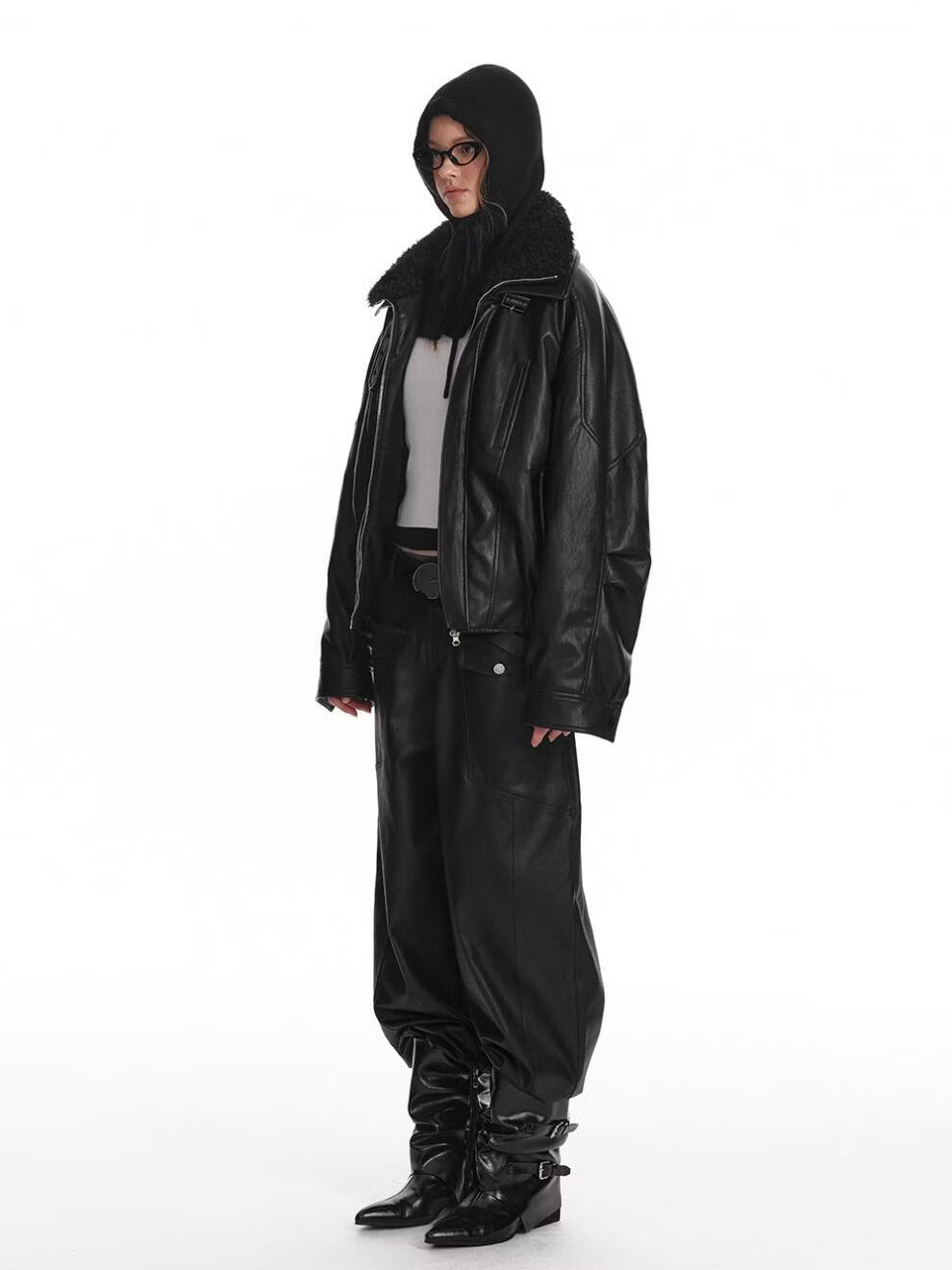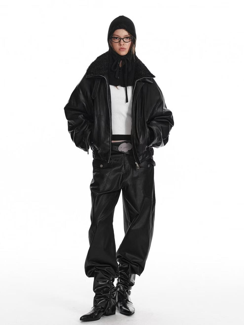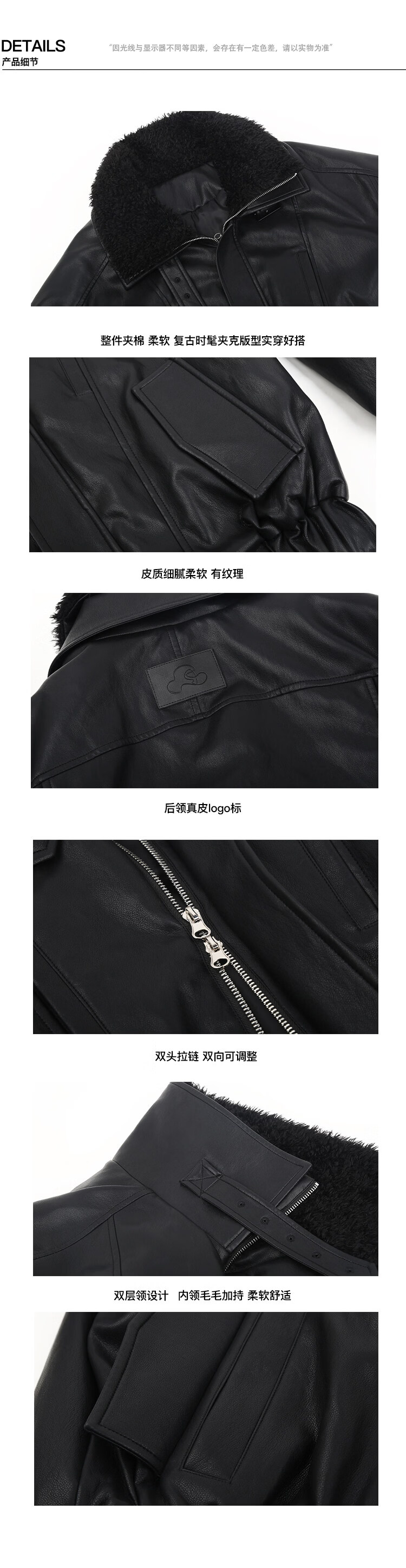 COVA international first-line brand fur collar retro pilot silhouette leather cotton coat for women 2025 winter new fashion jacket black (ready in stock) S