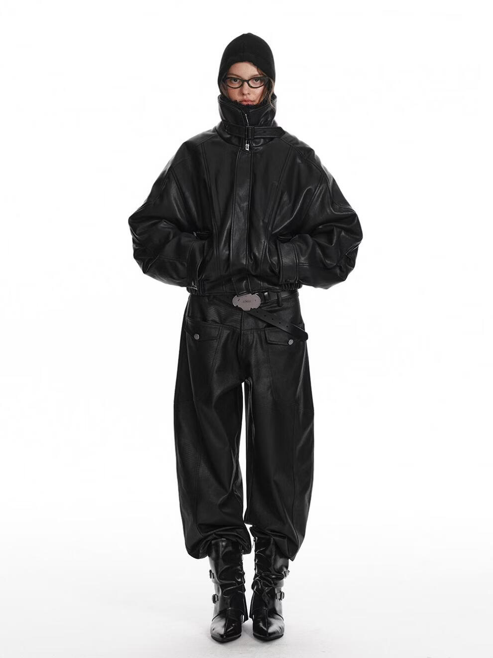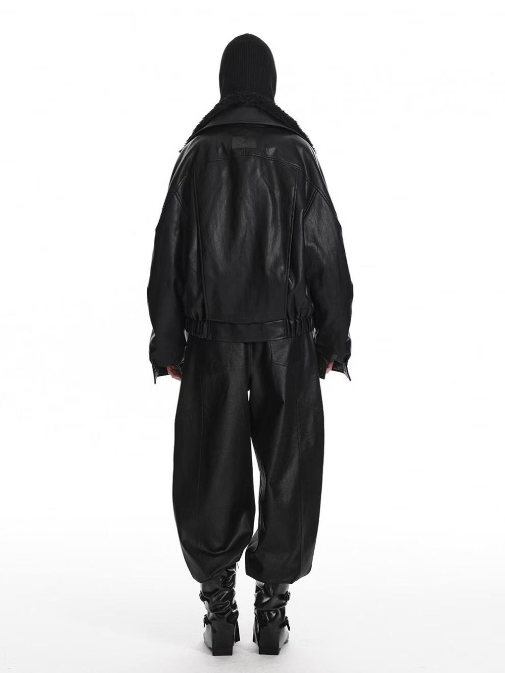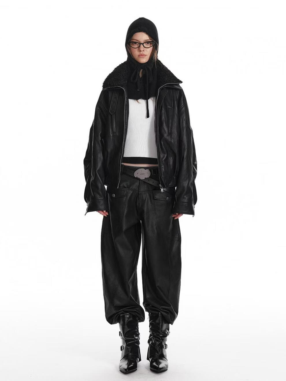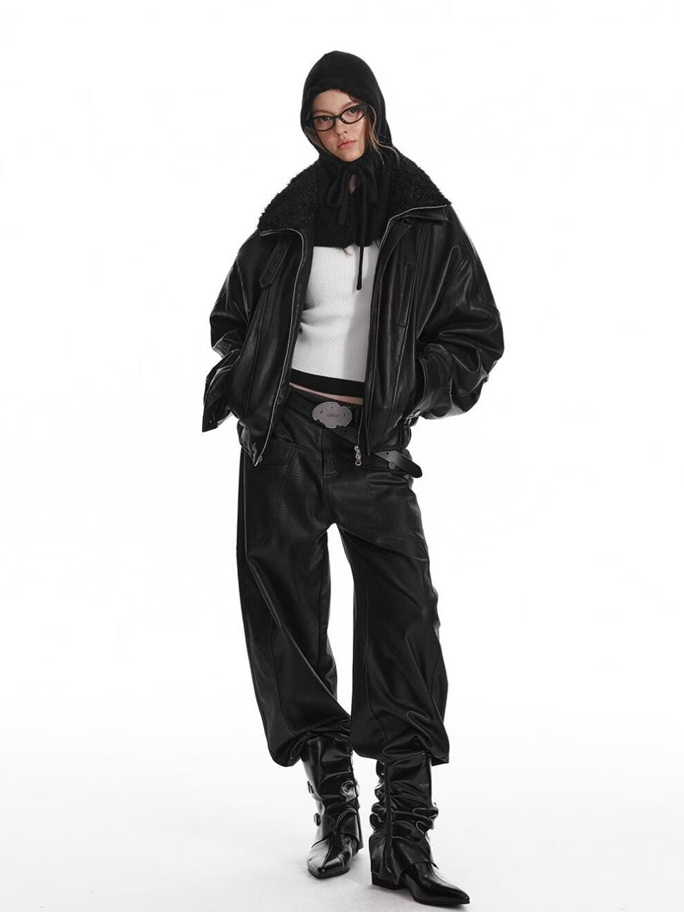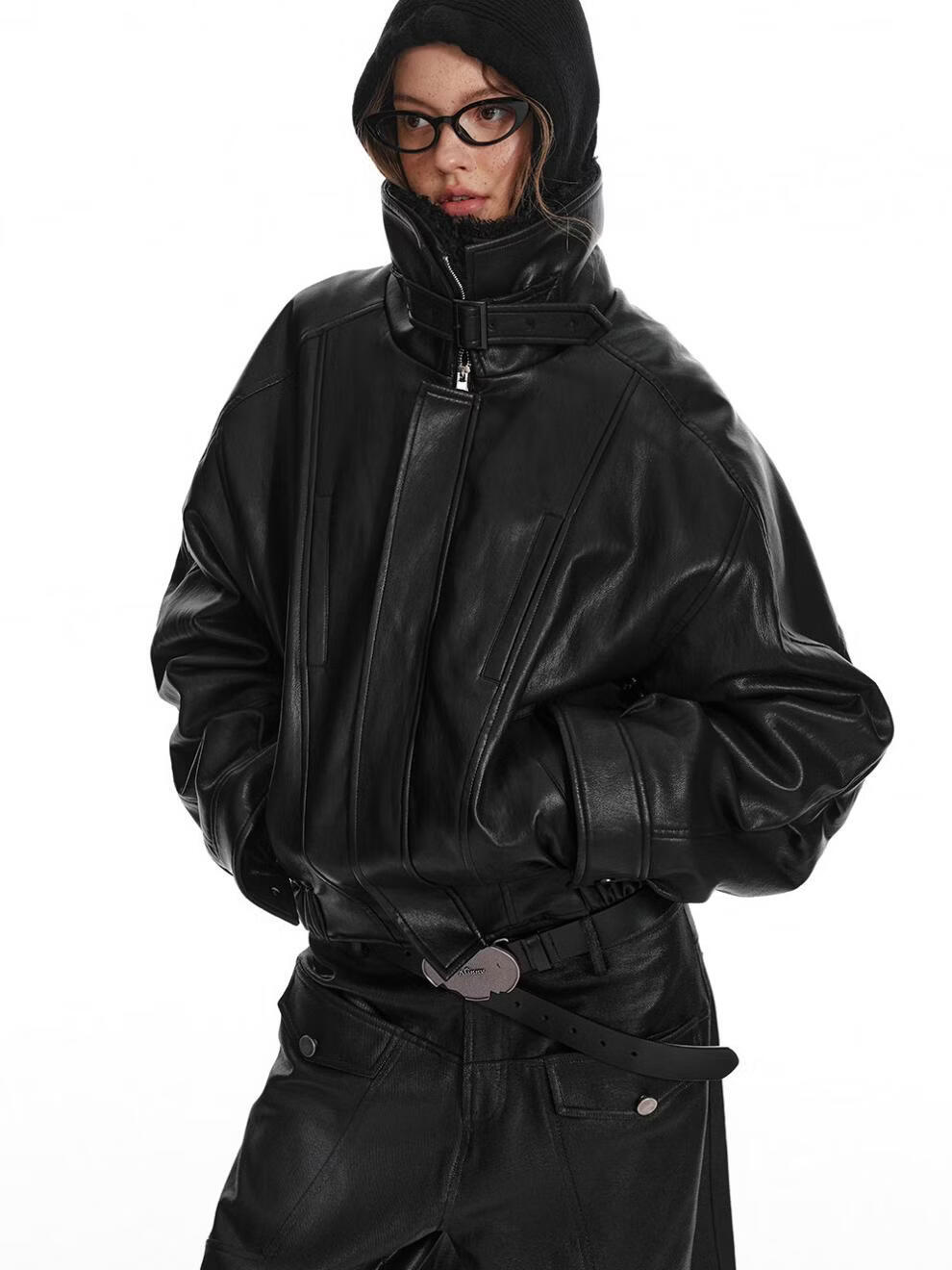 COVA international first-line brand fur collar retro pilot silhouette leather cotton coat for women 2025 winter new fashion jacket black (ready in stock) S
