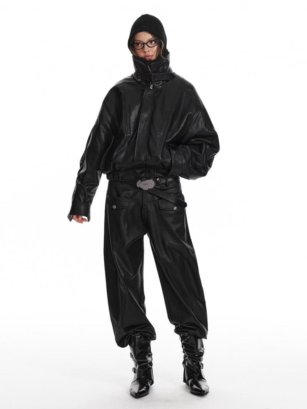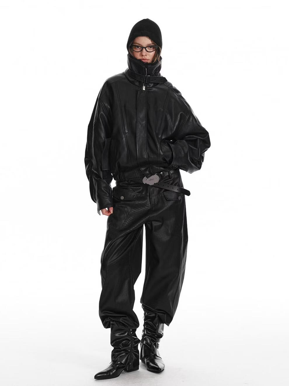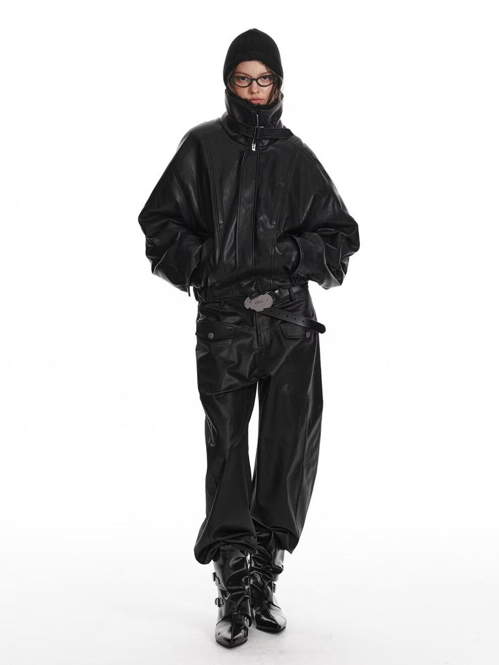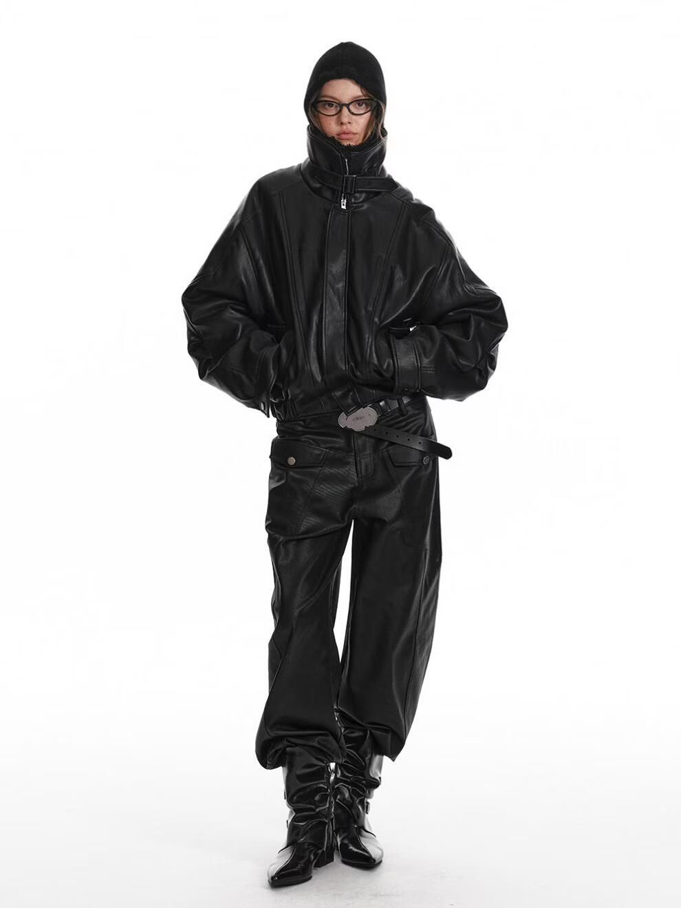 COVA international first-line brand fur collar retro pilot silhouette leather cotton coat for women 2025 winter new fashion jacket black (ready in stock) S
