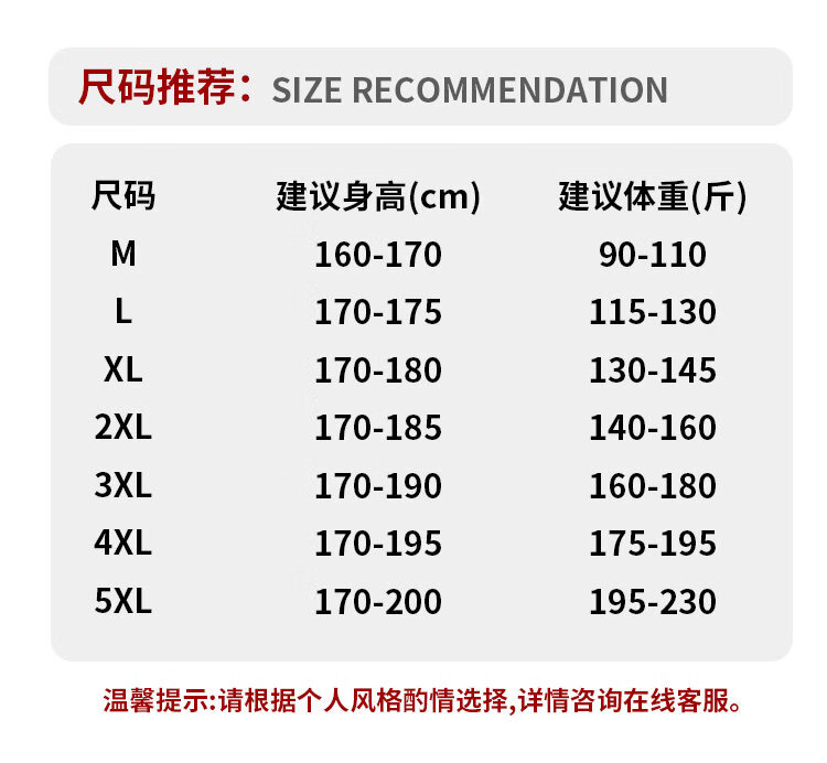China (cm) 165 / 88-90 170 / 96-98 175 / 108-110 180 / 118-122 185 / 126-130