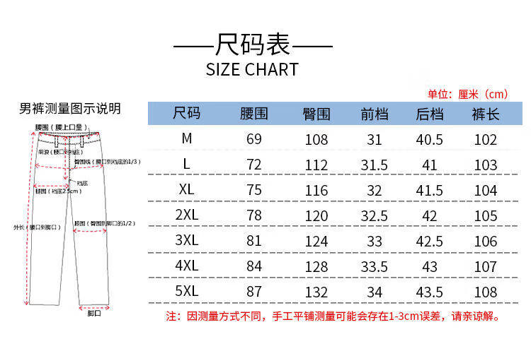 Outseam (cm) 99 cm 101.5 cm 104 cm 106.5 cm 109 cm