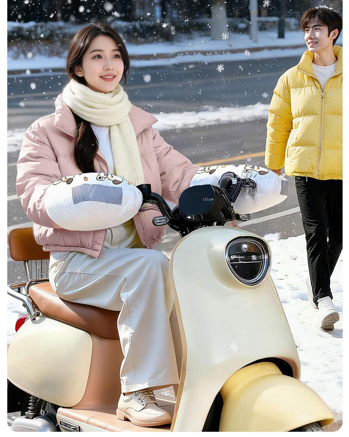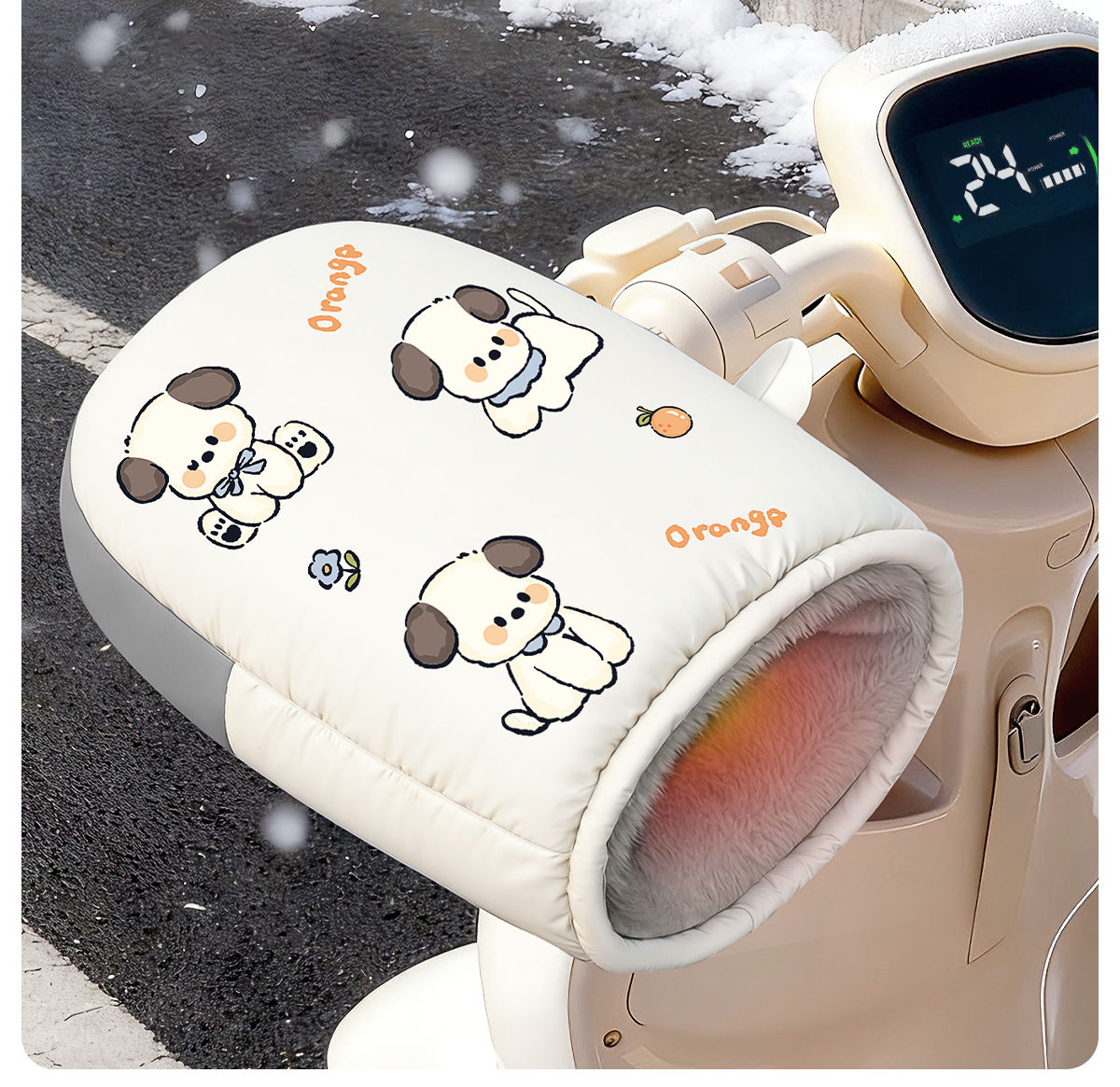 CLCEY extreme outdoor electric rider handlebar cover winter hand guard sun protection battery motorcycle warm heating extreme outdoor lotus leaf level waterproof + night reflective mid-soled orange puppy one size