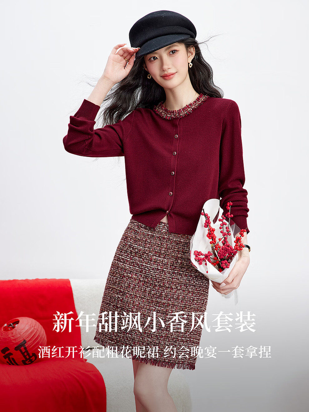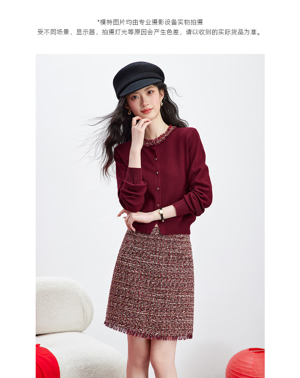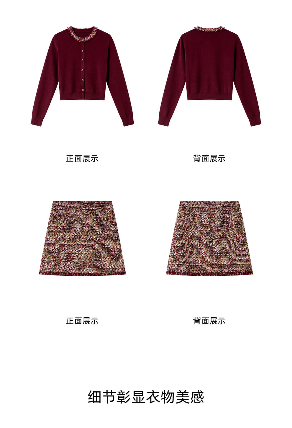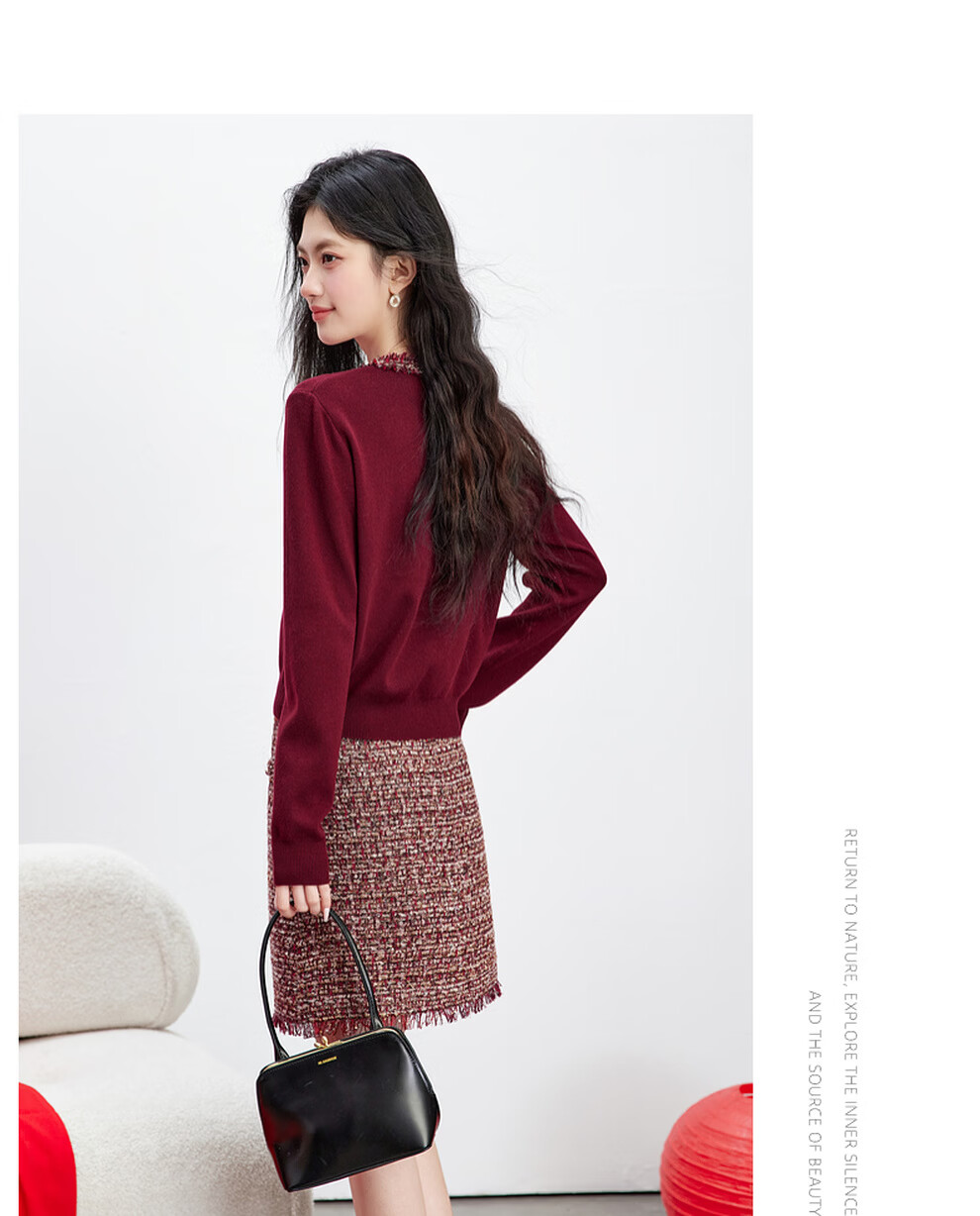 Fanximan New Year Red Sweater Suit Skirt Women's 26 Spring New Round Neck Sweater Skirt Two-piece Set A5017 Bordeaux Red M (Recommended 100-110 Jin Jin equals 0.5 kg)