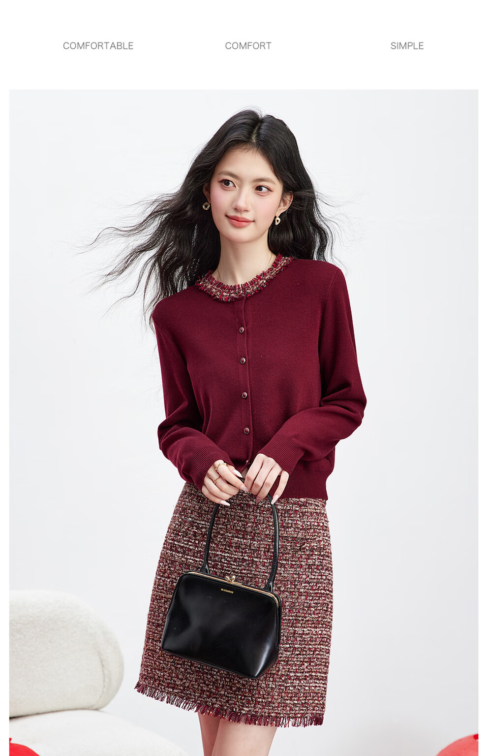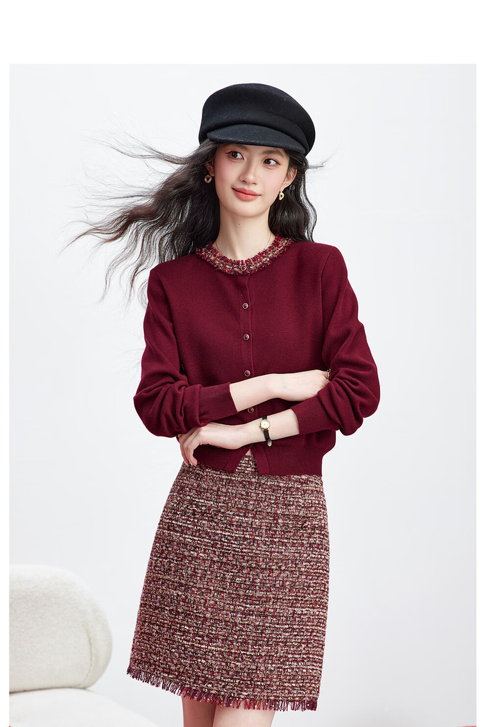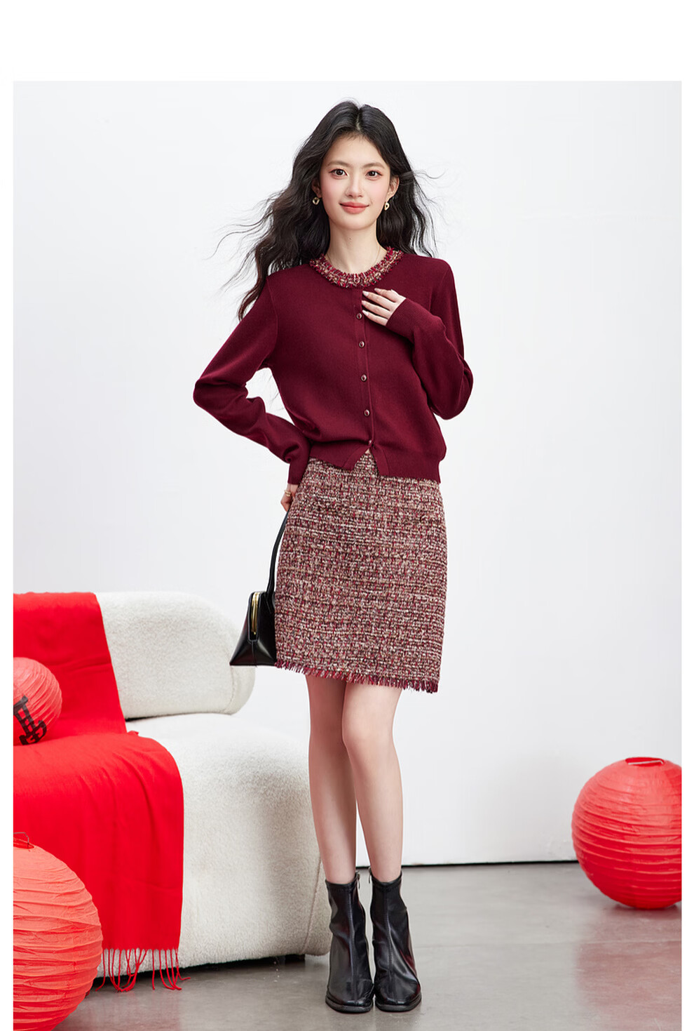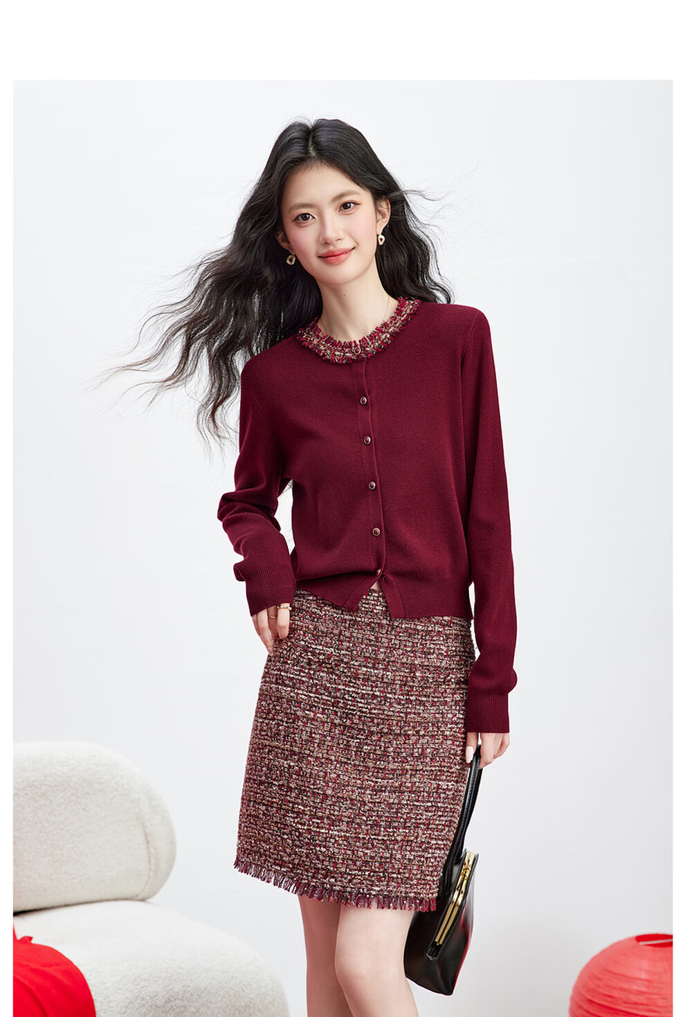 Fanximan New Year Red Sweater Suit Skirt Women's 26 Spring New Round Neck Sweater Skirt Two-piece Set A5017 Bordeaux Red M (Recommended 100-110 Jin Jin equals 0.5 kg)