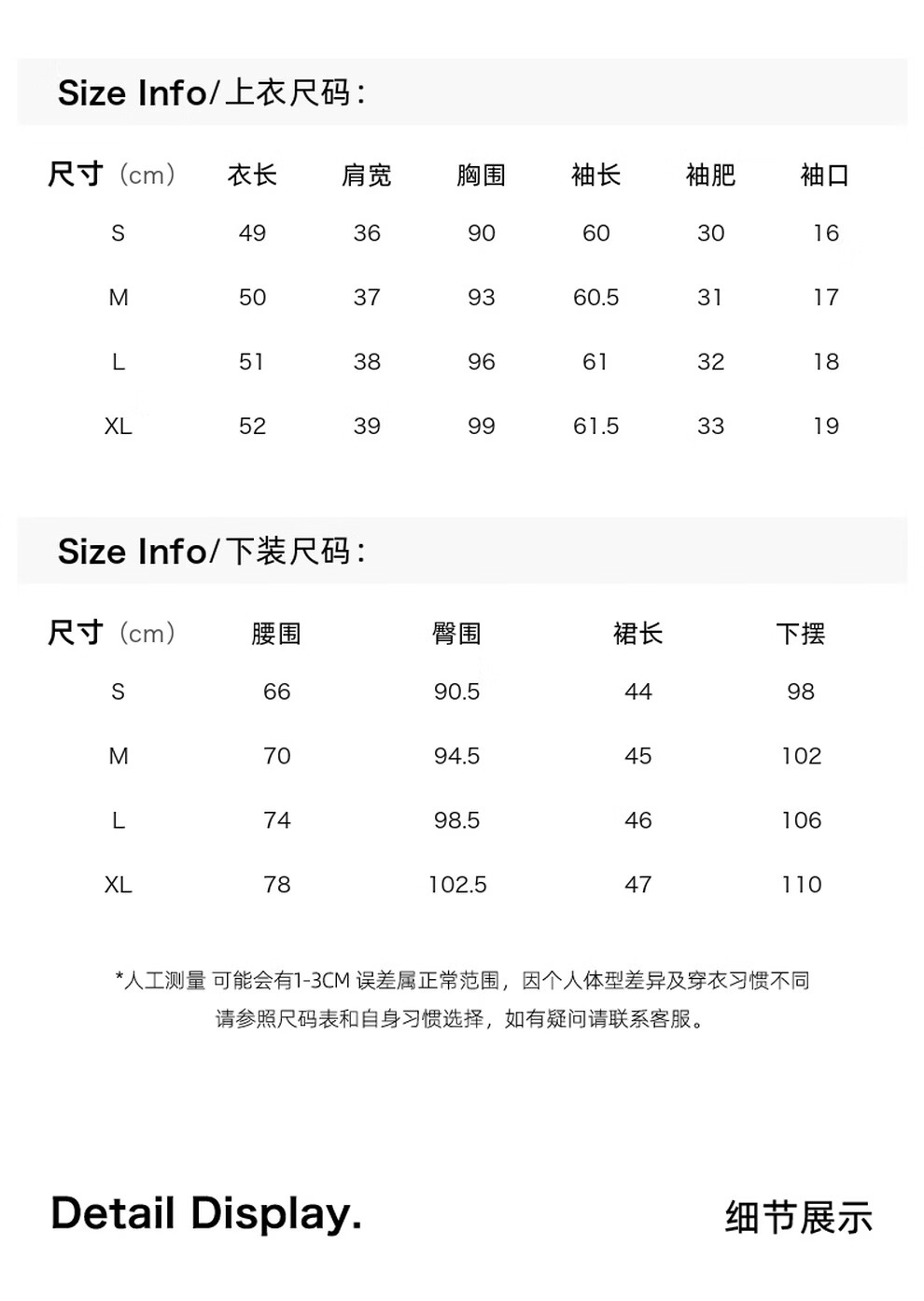 China (cm) 160-165/84-86 165-170 / 88-90 167-172 / 92-96 168-173 / 98-102 170-176 / 106-110