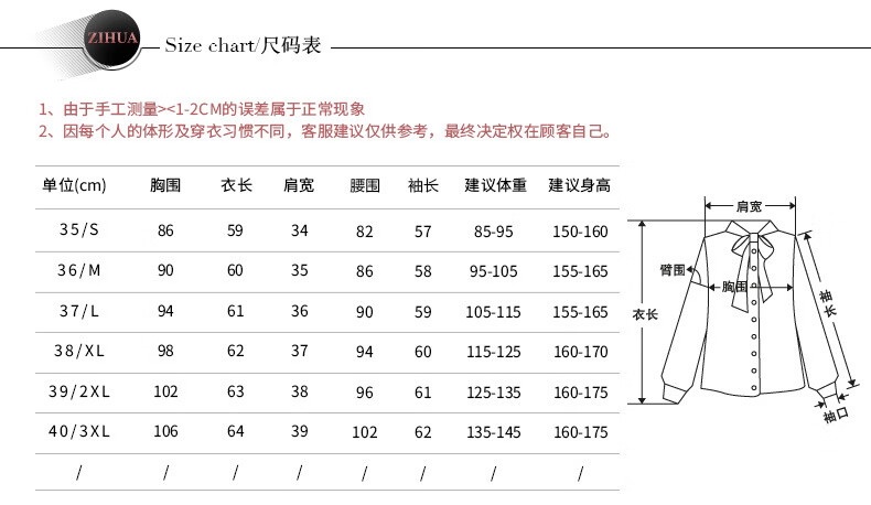 China (cm) 160-165/84-86 165-170 / 88-90 167-172 / 92-96 168-173 / 98-102 170-176 / 106-110