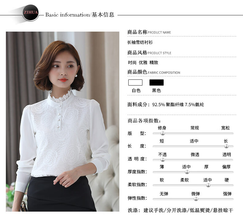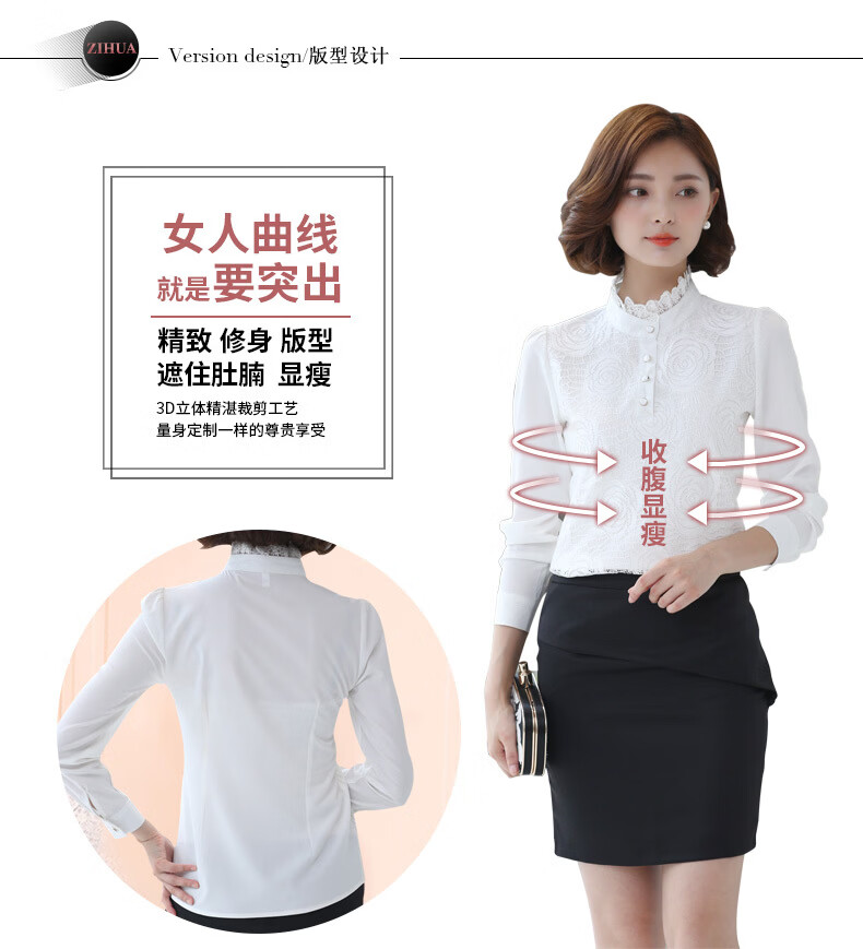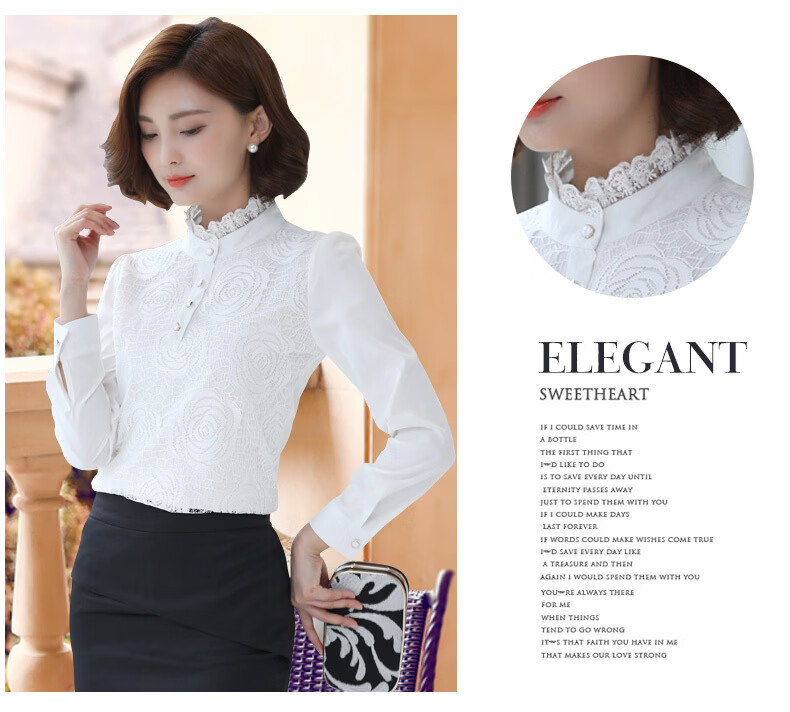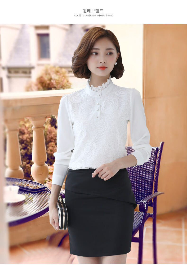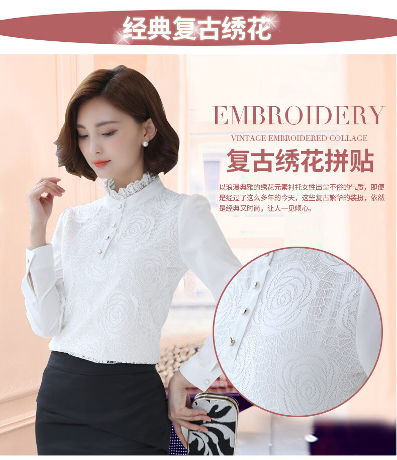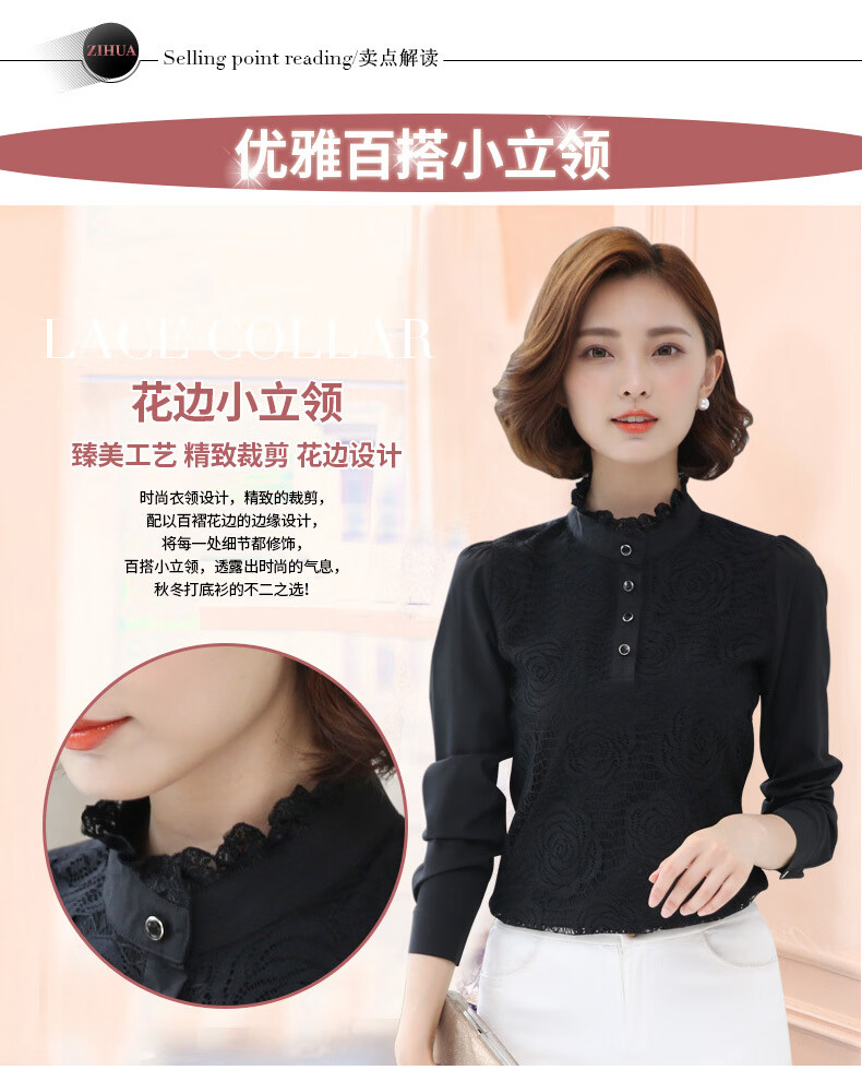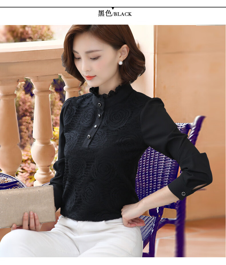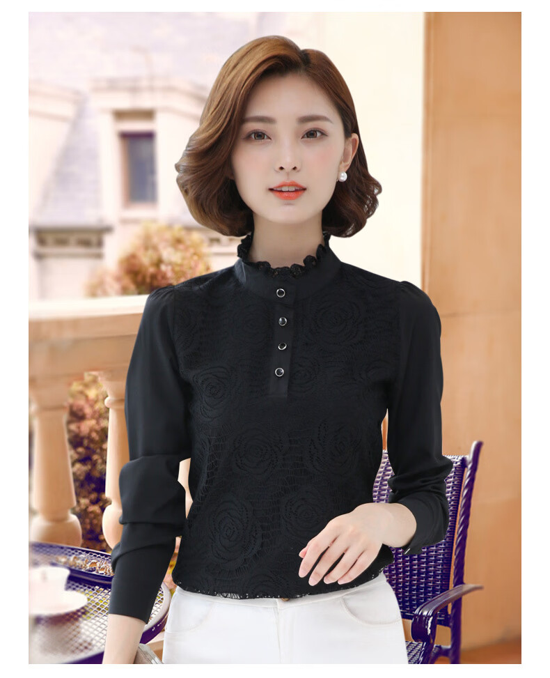 ROMON shirt women's long-sleeved 2026 spring new style Korean style stand-up collar plus velvet warm lace chiffon bottoming shirt versatile top black spring and autumn S