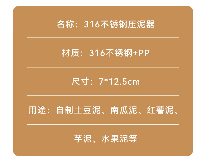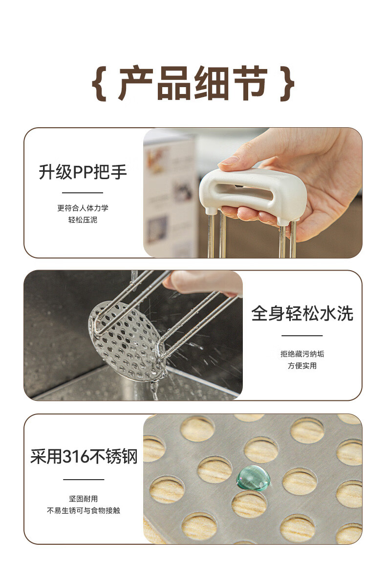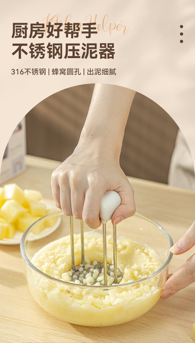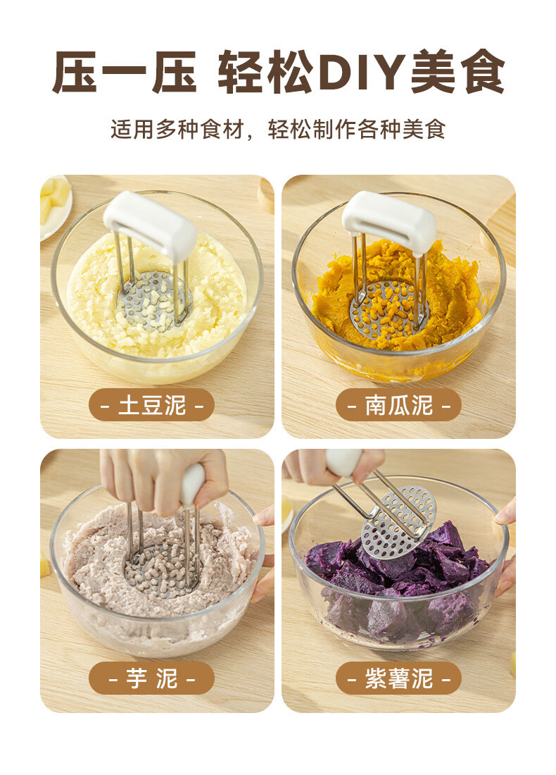 Wing Fantasy 36 Stainless Steel Mashed Potato Pressing Artifact Taro Food Grade Baby Supplementary Food Crush Kitchen Stainless Steel Bear Claw Mud Press x1