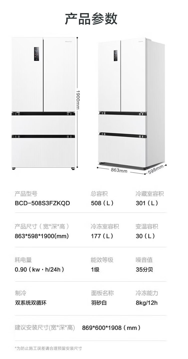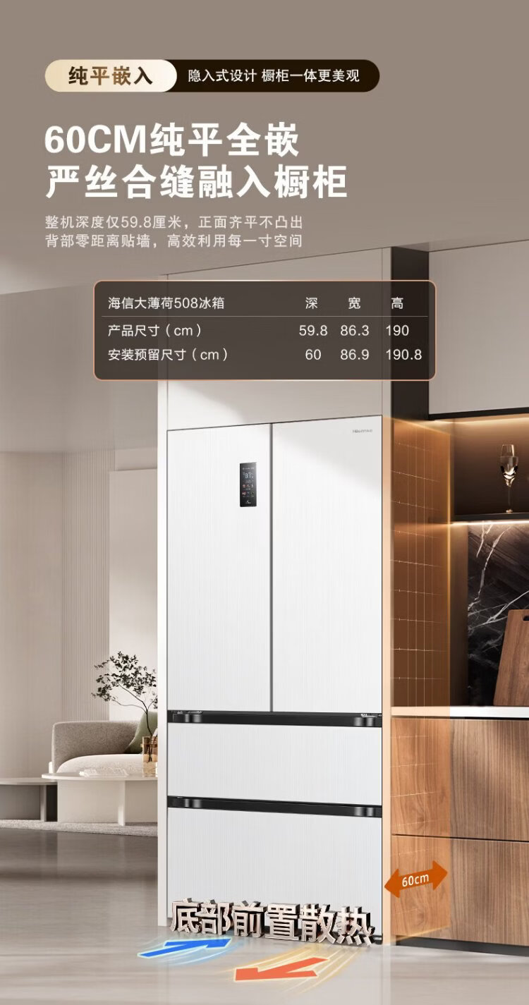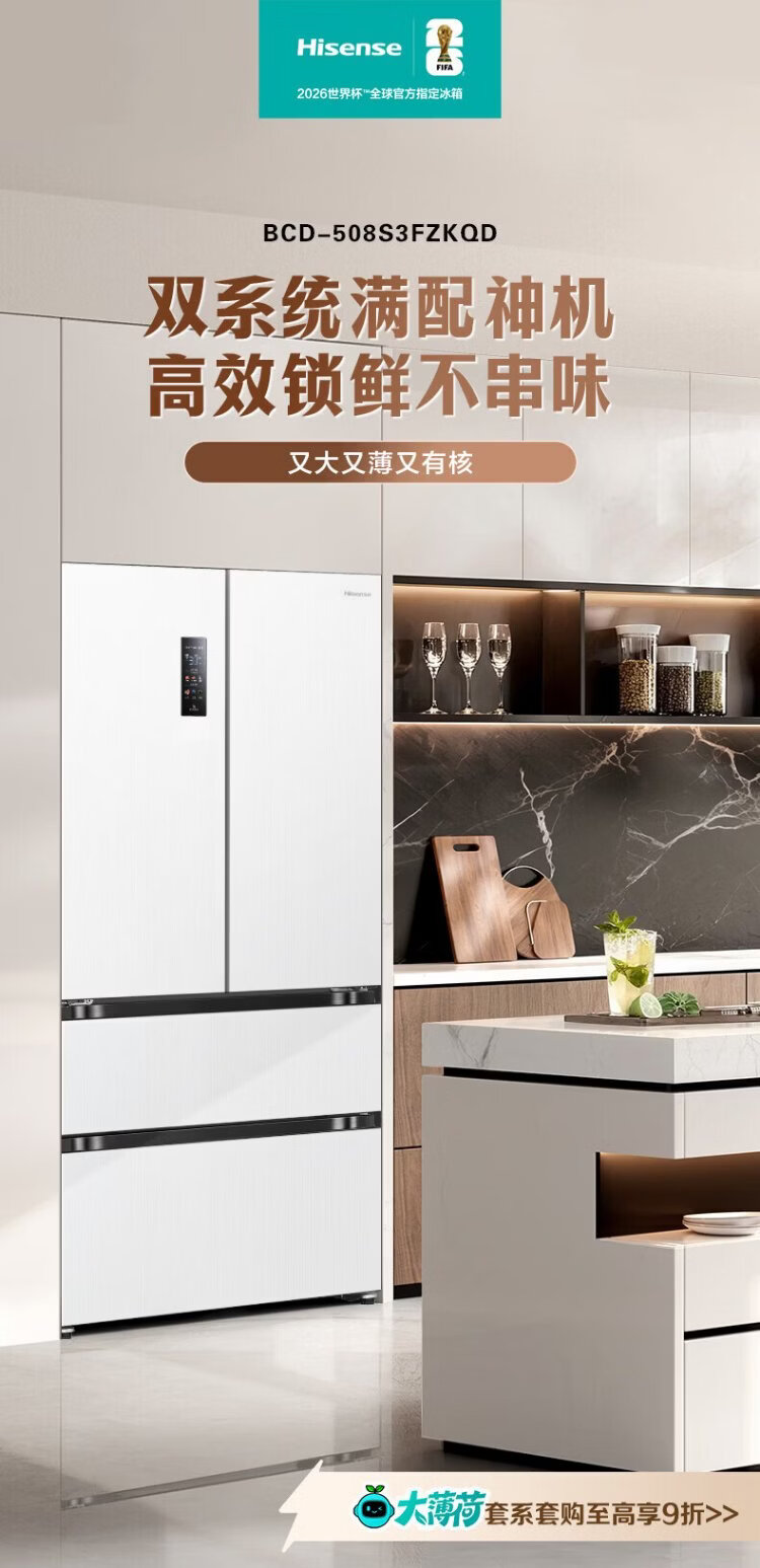 Hisense Big Mint 508L Многодверный холодильник во французском стиле, двухсистемный встроенный холодильник большой емкости с активной стерилизацией и дезодорацией белого цвета, изготовленный по индивидуальному заказу Кубка мира BCD-508S3FZKQD