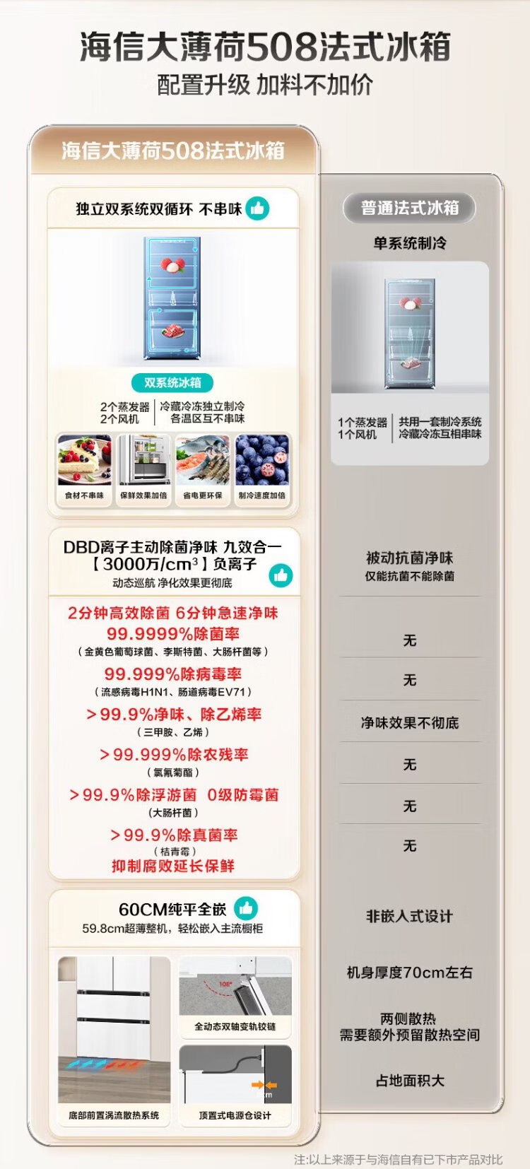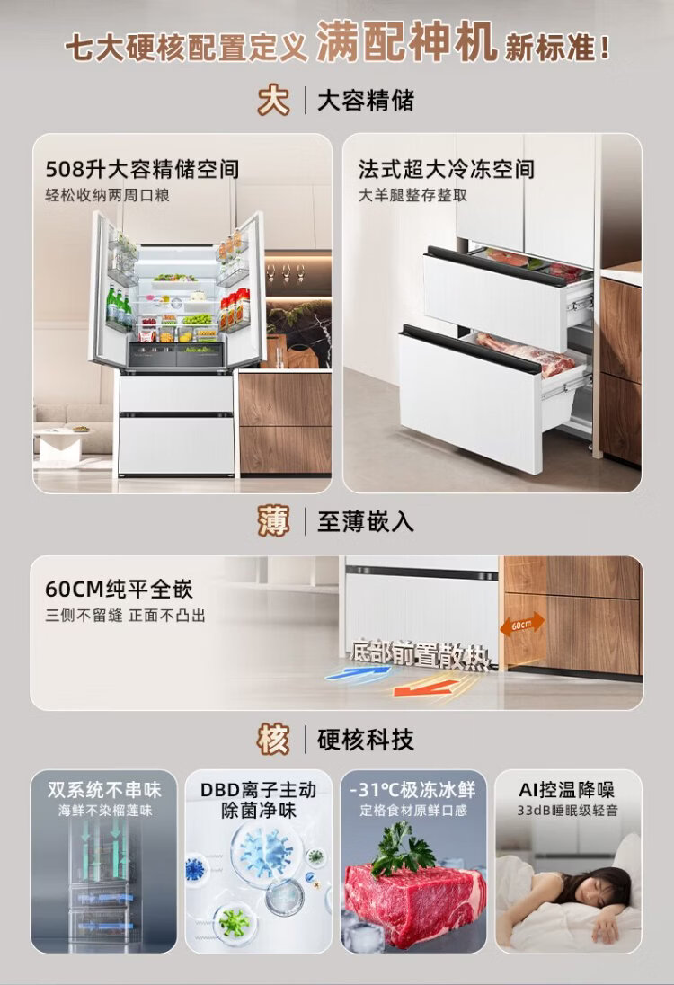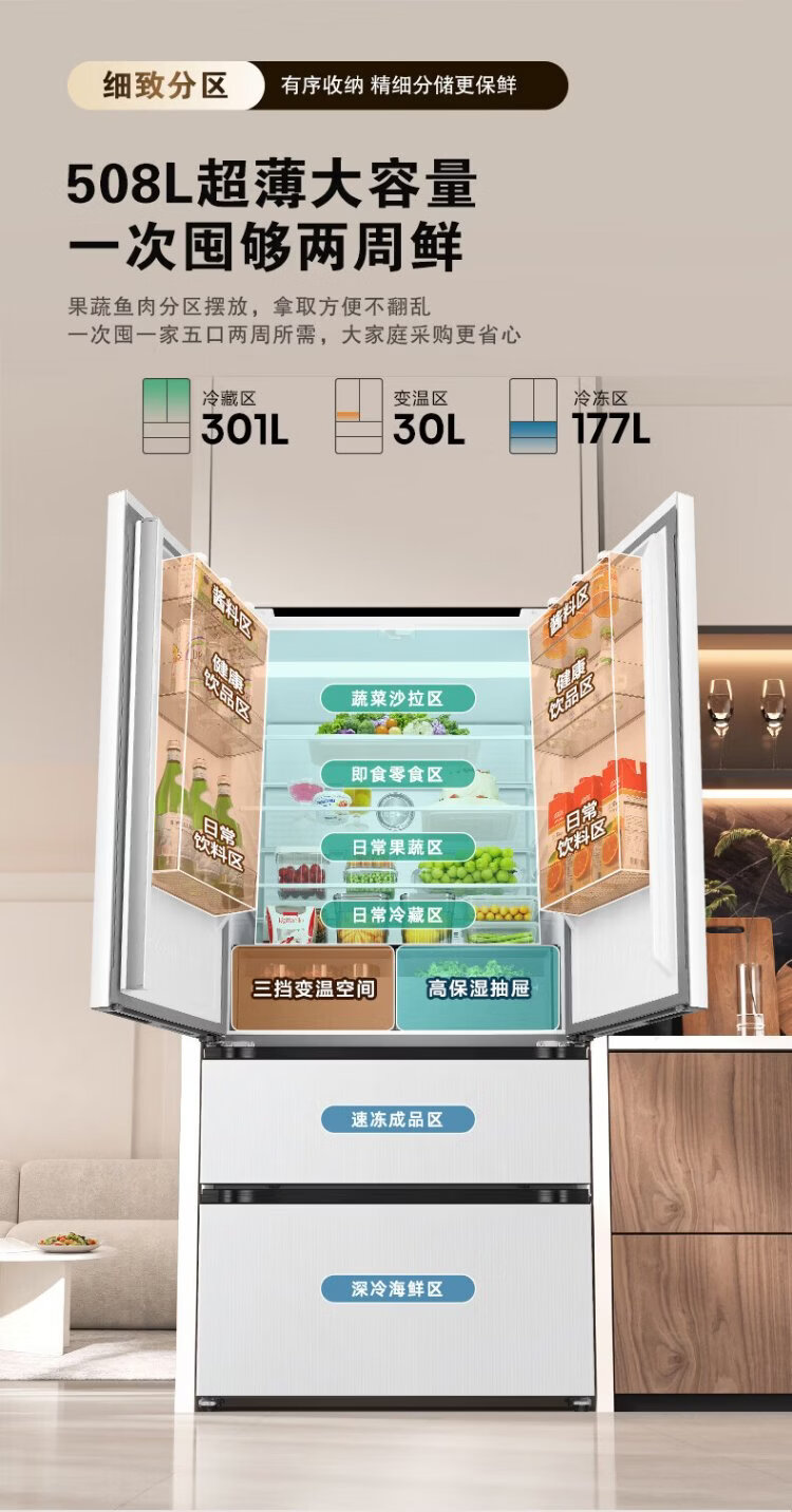 Hisense Big Mint 508L Многодверный холодильник во французском стиле, двухсистемный встроенный холодильник большой емкости с активной стерилизацией и дезодорацией белого цвета, изготовленный по индивидуальному заказу Кубка мира BCD-508S3FZKQD