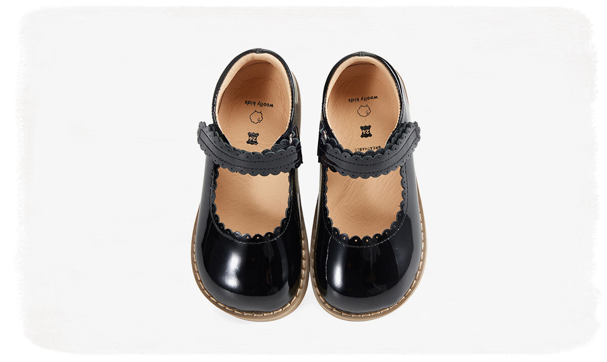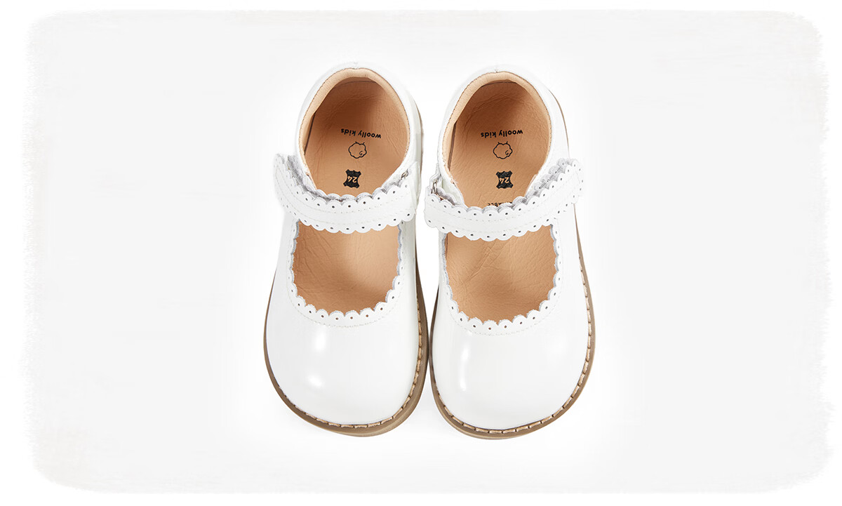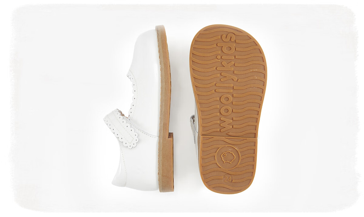 Lamb Wally woollykids Lamb Wally Australian genuine leather baby girl banquet campus retro style anti-slip soft-soled patent leather shoes, ivory white, size 27, inner length 17.0cm, suitable for feet 16.1-16.5cm long