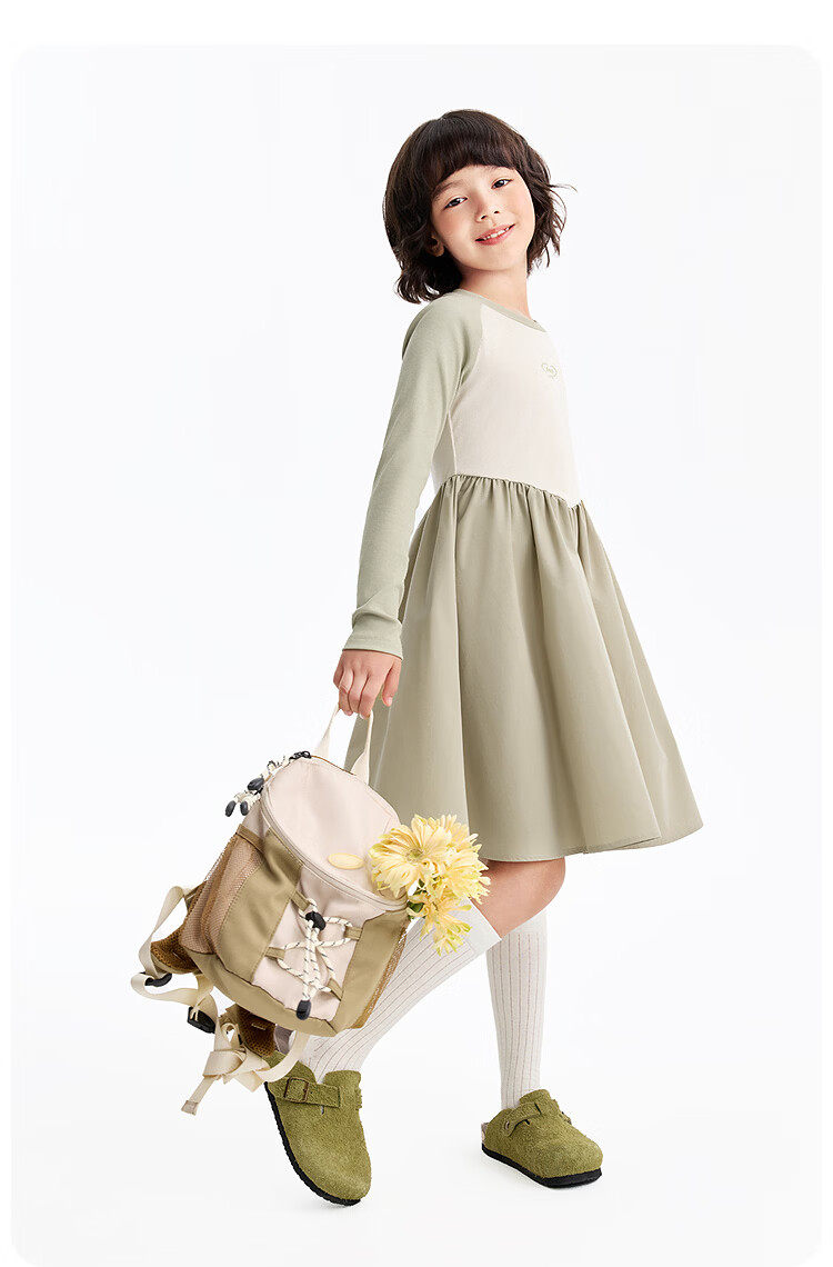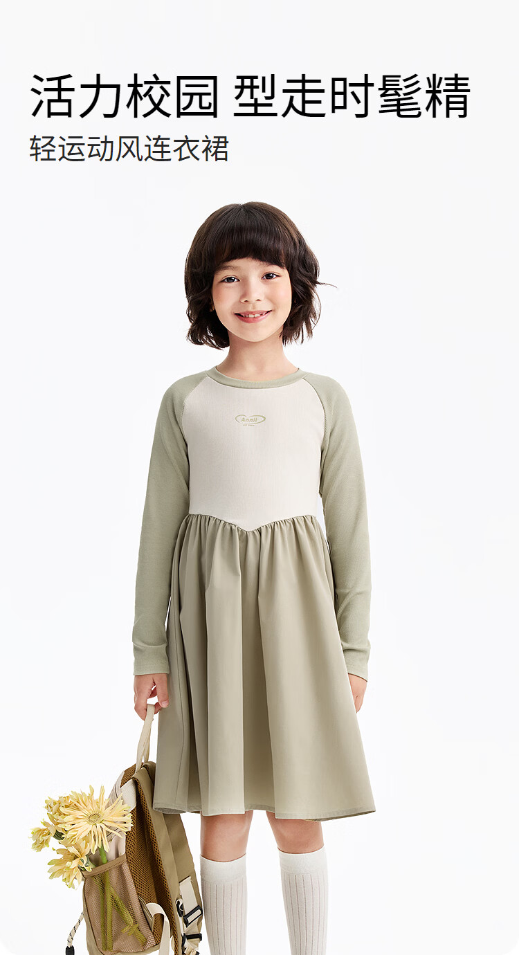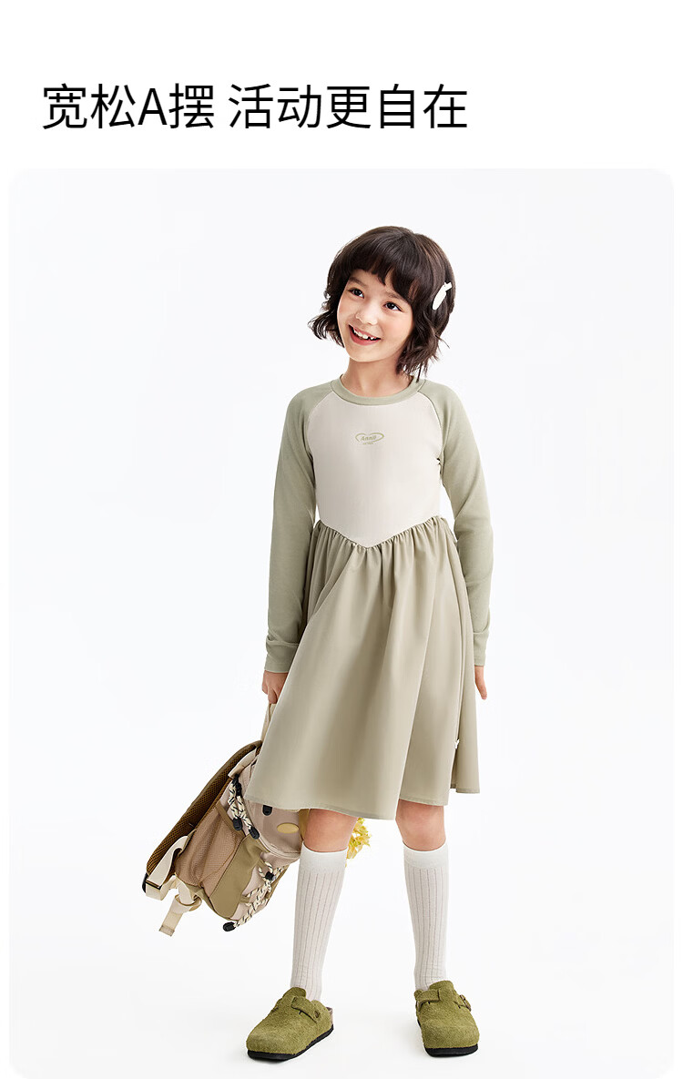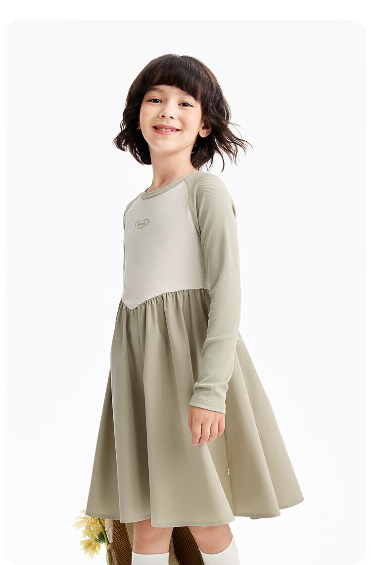 Annil children's clothing girls' long-sleeved dress 2026 spring new style Chunshan Apricot 110