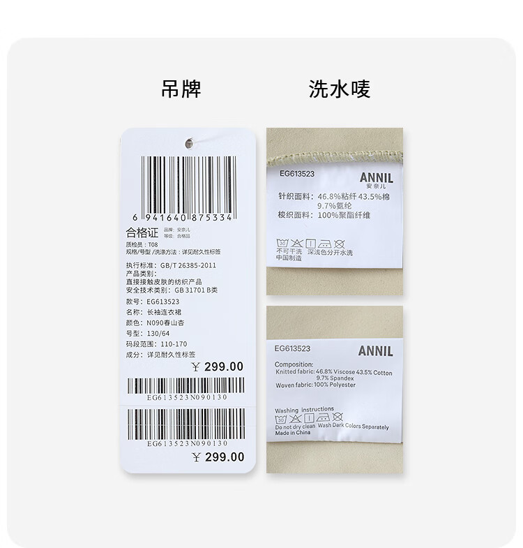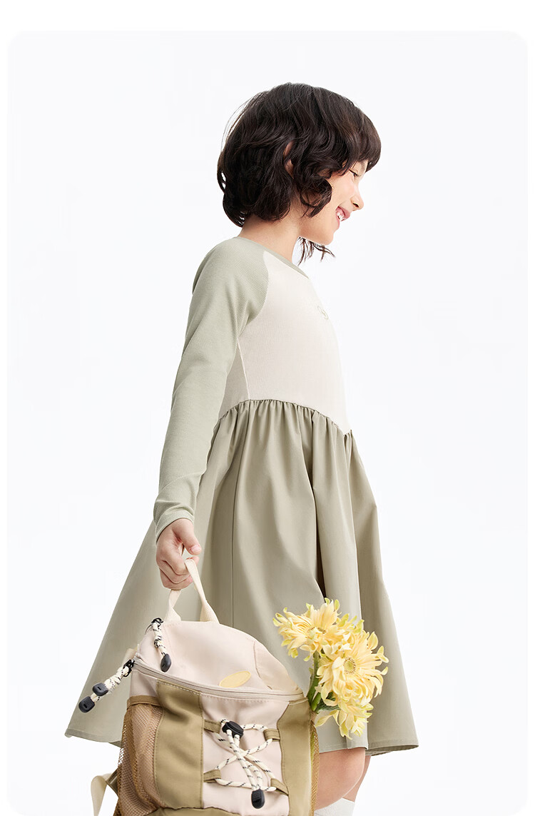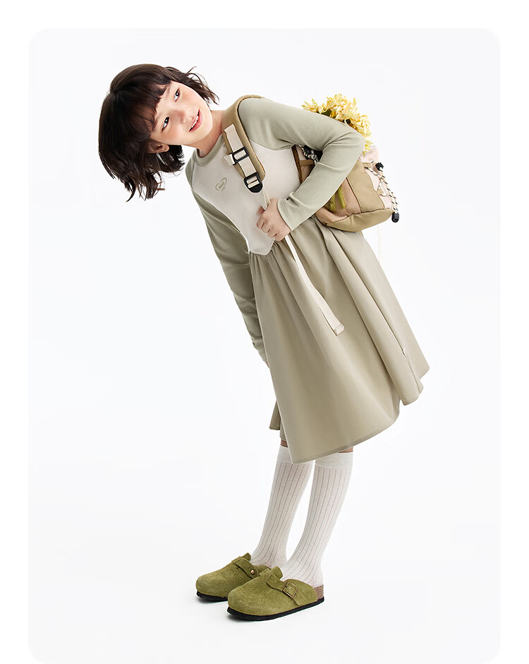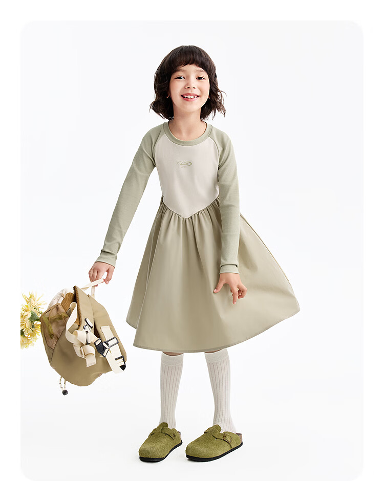 Annil children's clothing girls' long-sleeved dress 2026 spring new style Chunshan Apricot 110