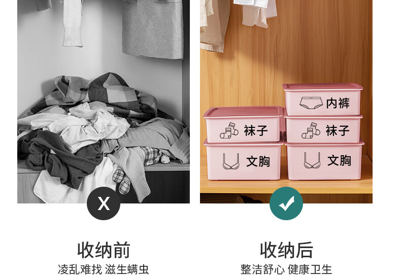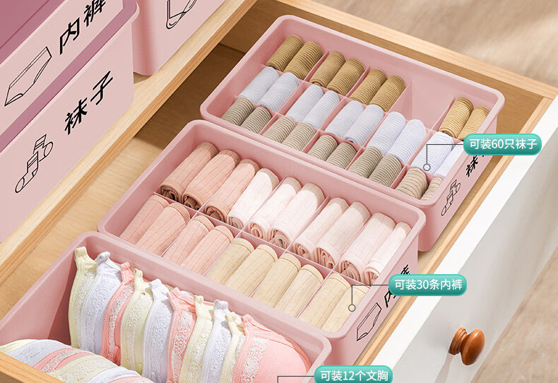 Yongfan household three-in-one underwear storage box, thickened Japanese style underwear storage box, 2024 new upgrade and thickened 2-piece set, underwear and sock box with lid, light blue