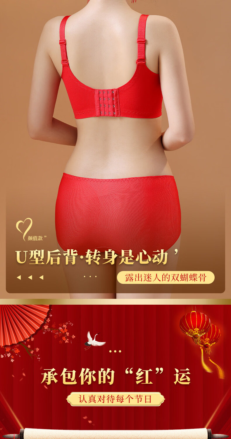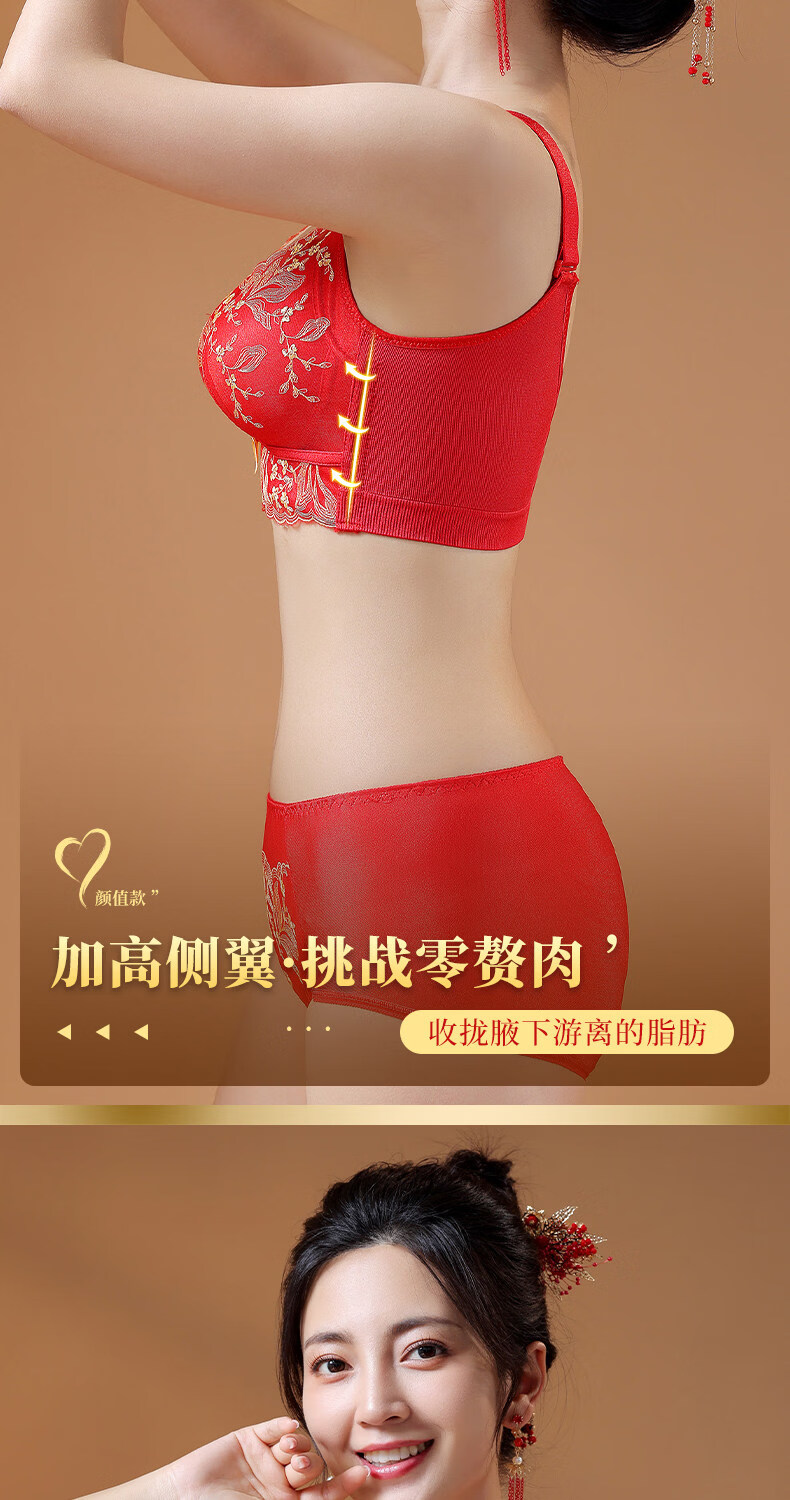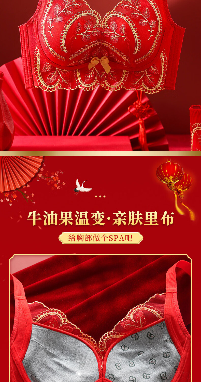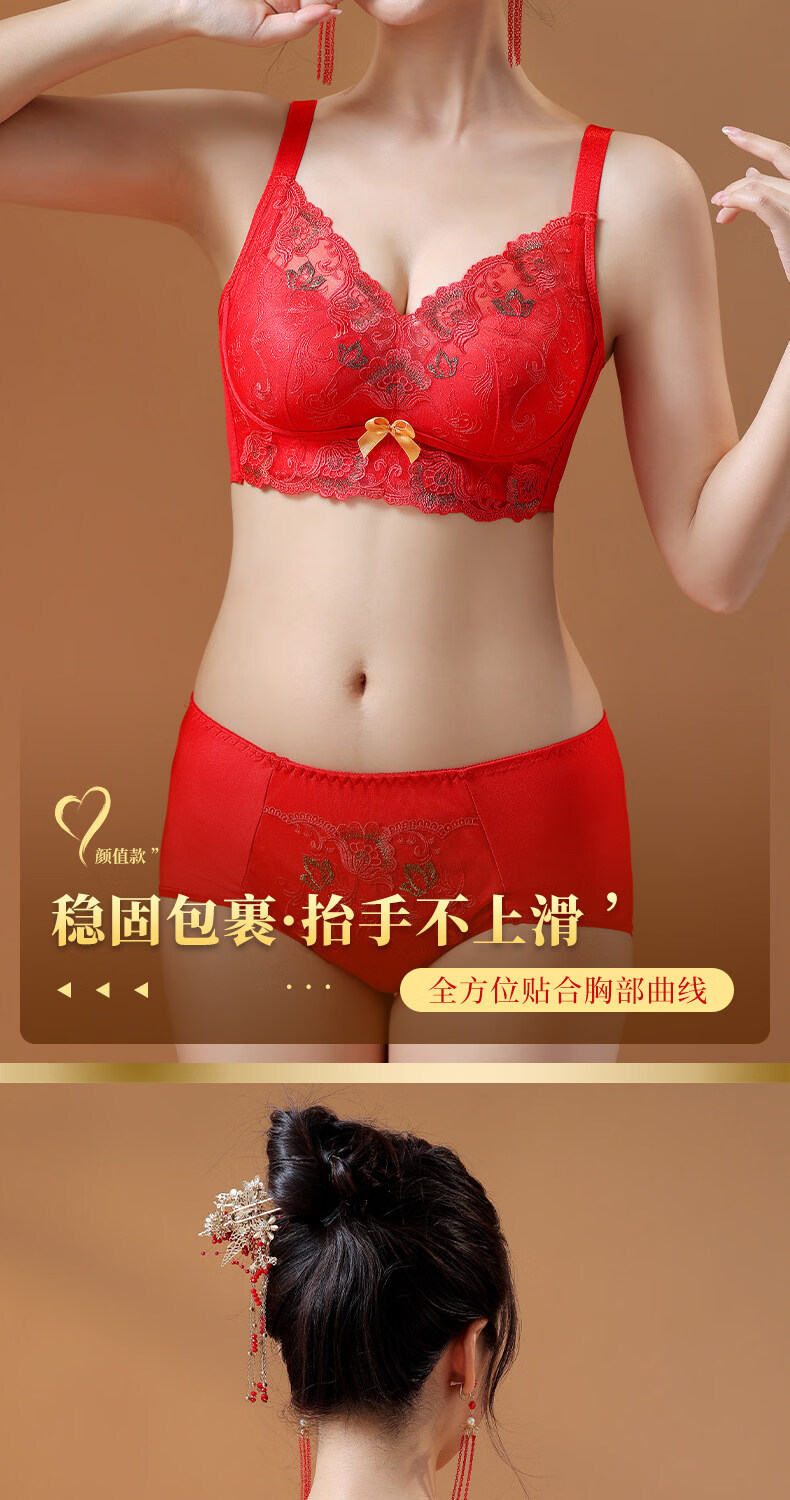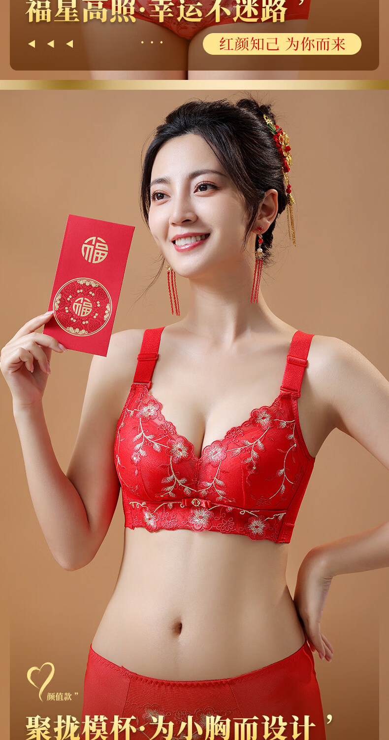 LangSha (LangSha) Big Red Zodiac Year Underwear Set for Women with Small Breasts Pushed Up No Wires for the Year of the Horse 2026 Wedding Sexy Bra Wealth and Fortune Single Piece 80A 36B Full Cup (Small Breasts Pushed Up)