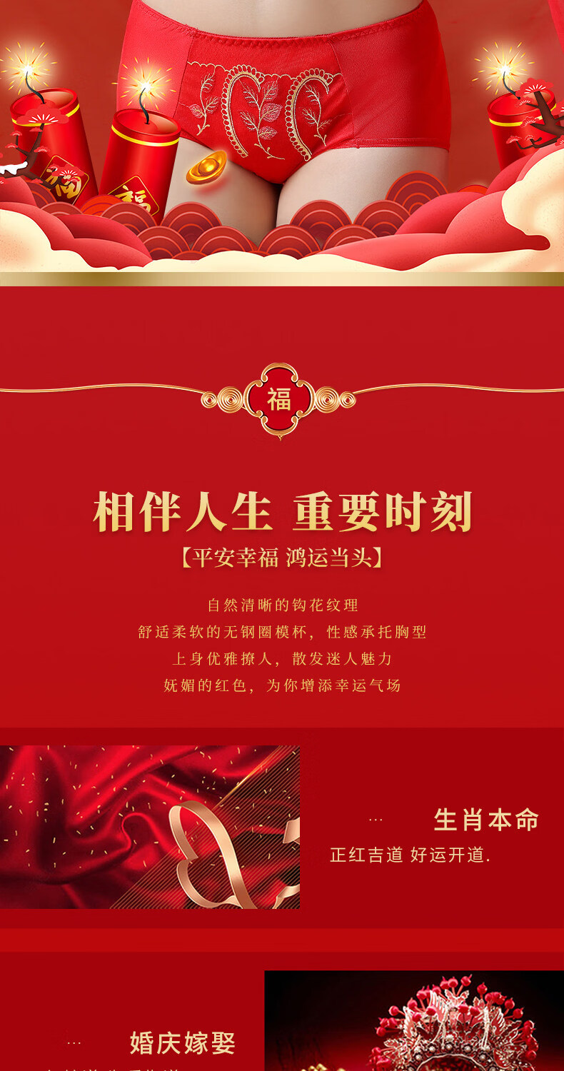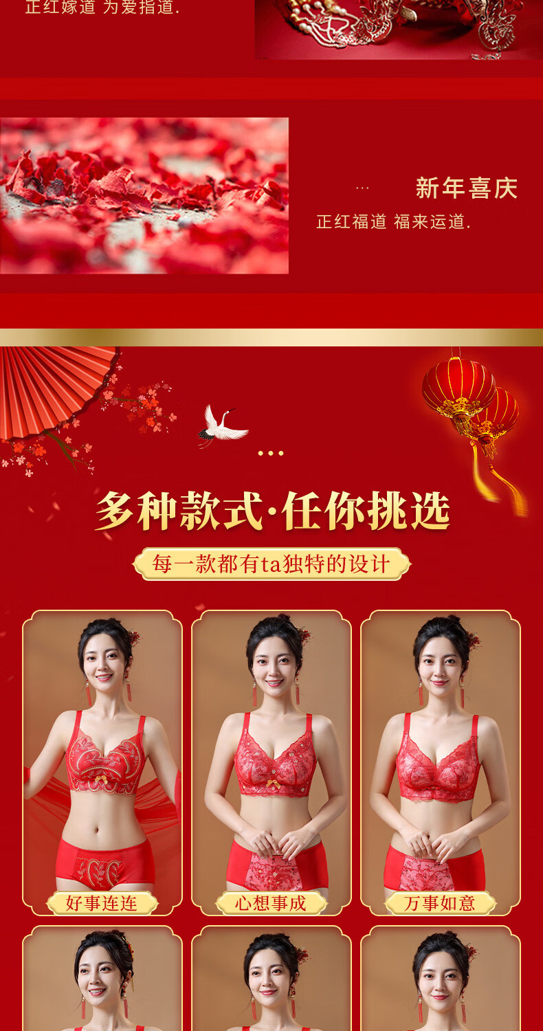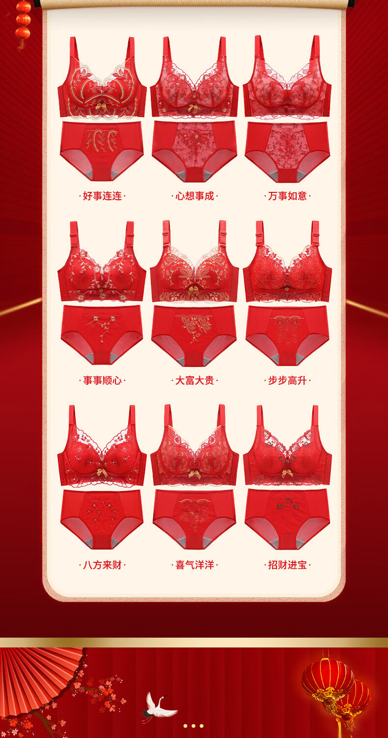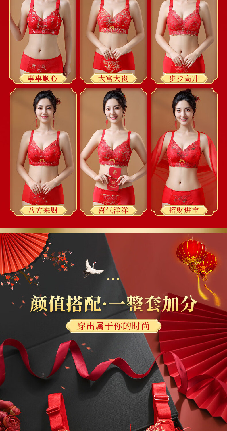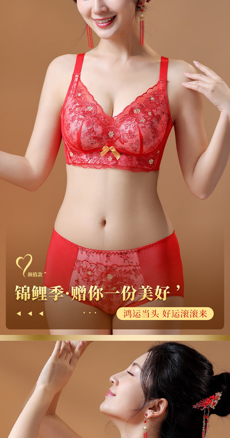 LangSha (LangSha) Big Red Zodiac Year Underwear Set for Women with Small Breasts Pushed Up No Wires for the Year of the Horse 2026 Wedding Sexy Bra Wealth and Fortune Single Piece 80A 36B Full Cup (Small Breasts Pushed Up)