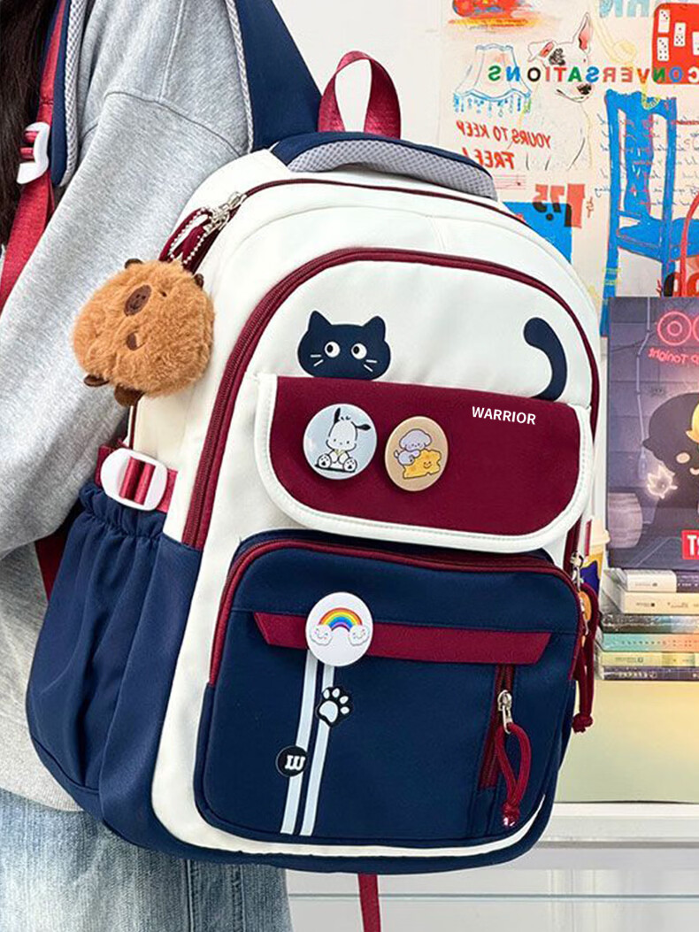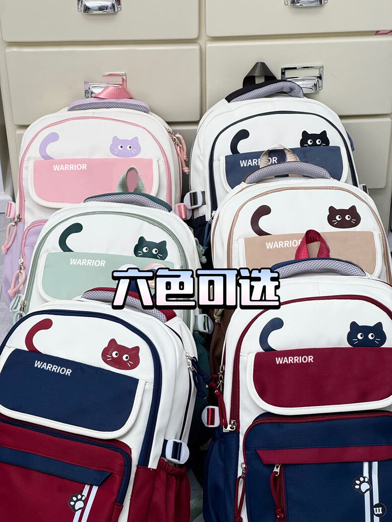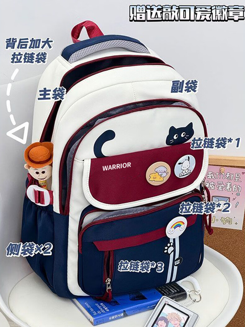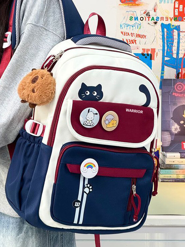 Warrior schoolbag for primary school girls in grades three to six, junior high school students with good looks, large capacity, lightweight backpack, student backpack, dark blue