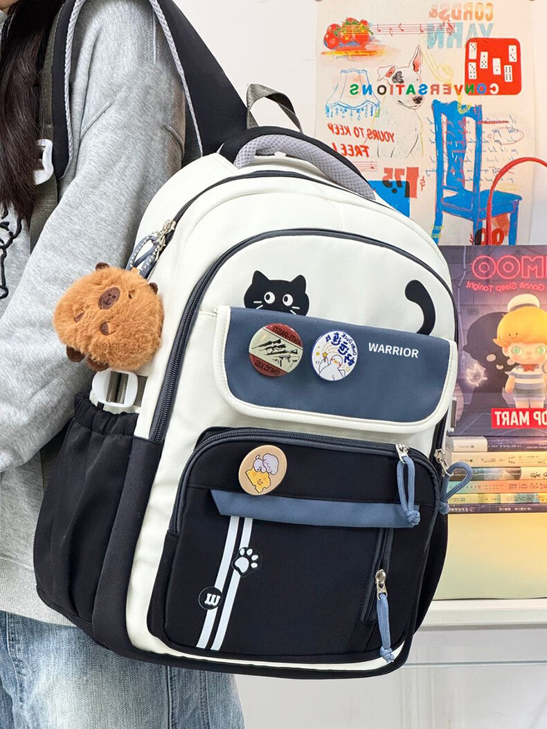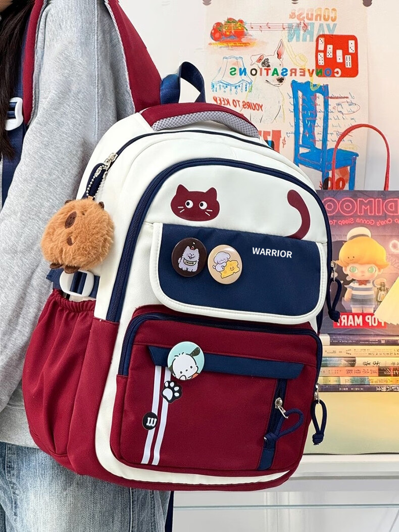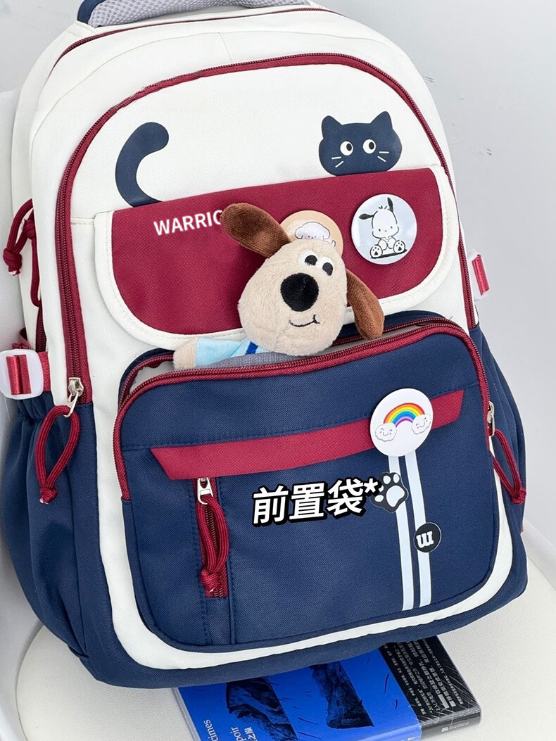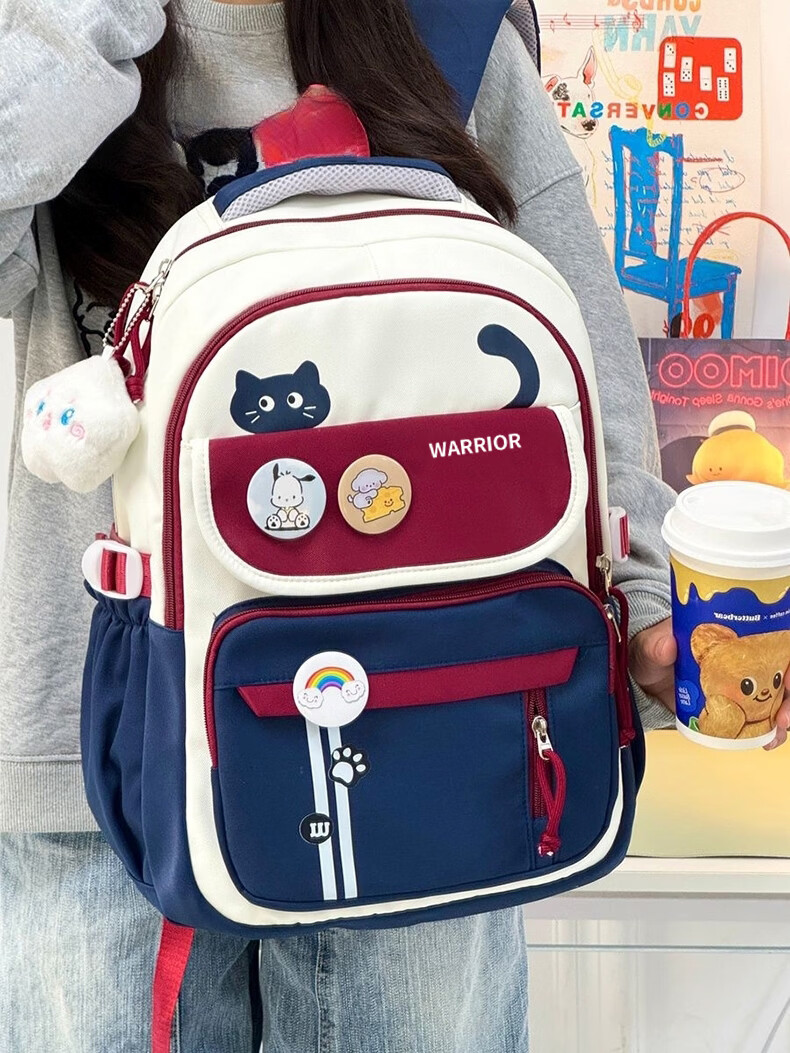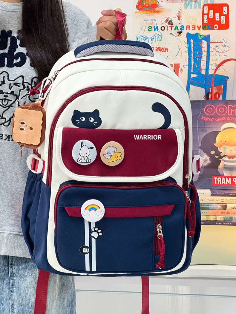 Warrior schoolbag for primary school girls in grades three to six, junior high school students with good looks, large capacity, lightweight backpack, student backpack, dark blue