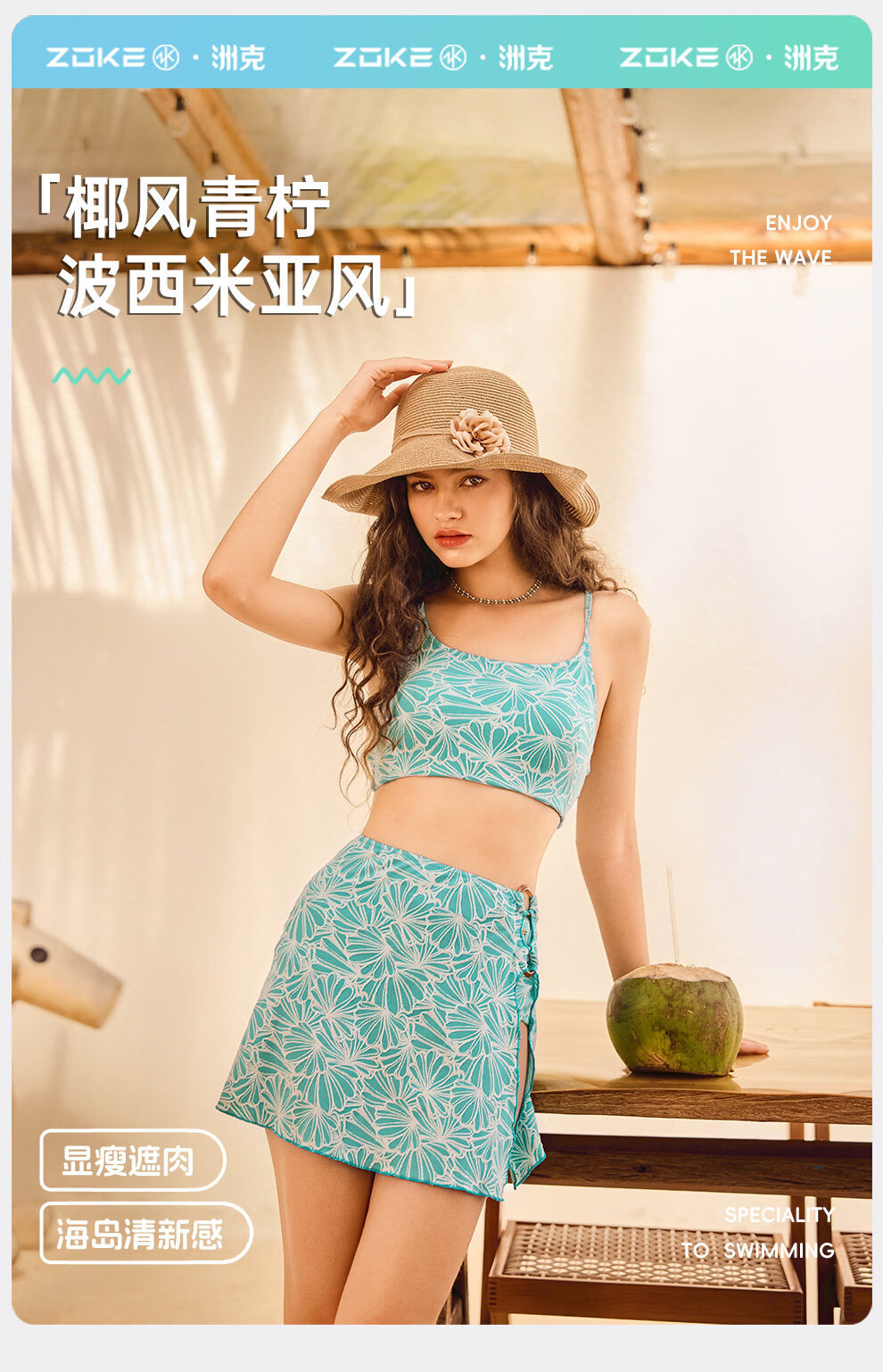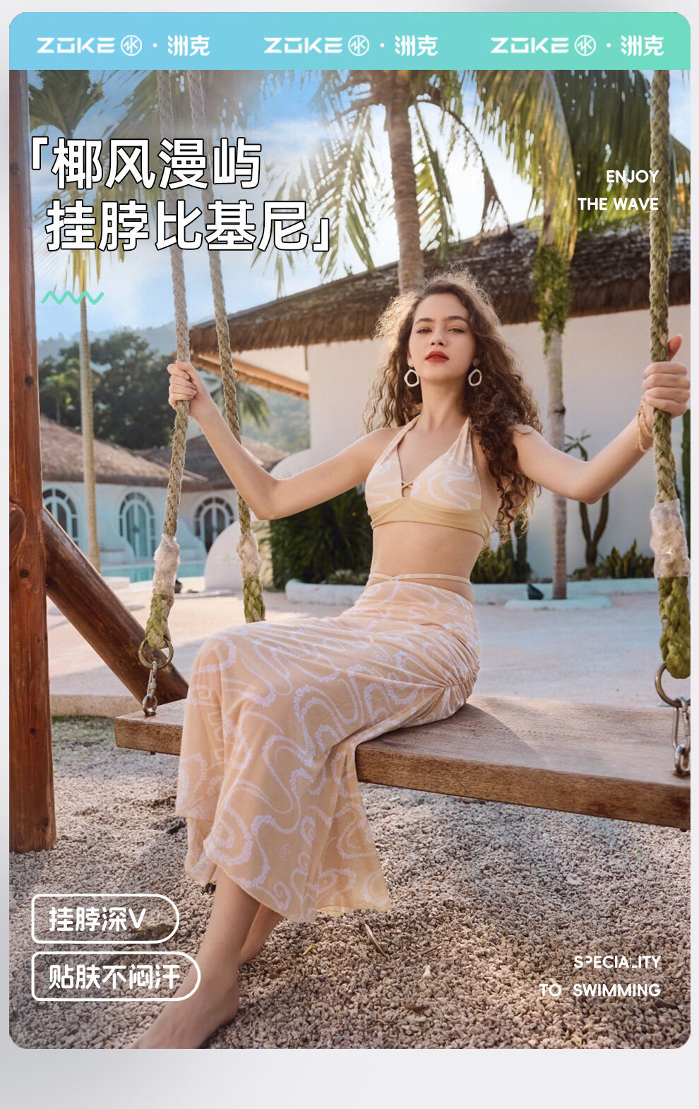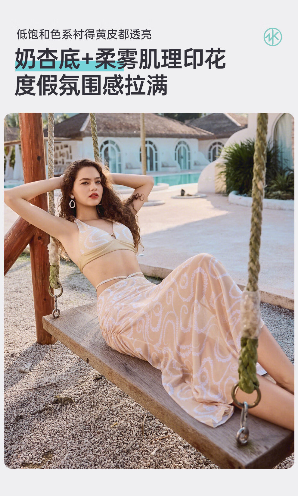 ZOKE ZOKE Swimming Bikini Swimsuit Women's Split Blouse Skirt Sexy Beach Hot Spring Resort Swimsuit Breasts Apricot Soft Mist Big Women's Bikini Apricot White Classic Pattern 126501602-1 M