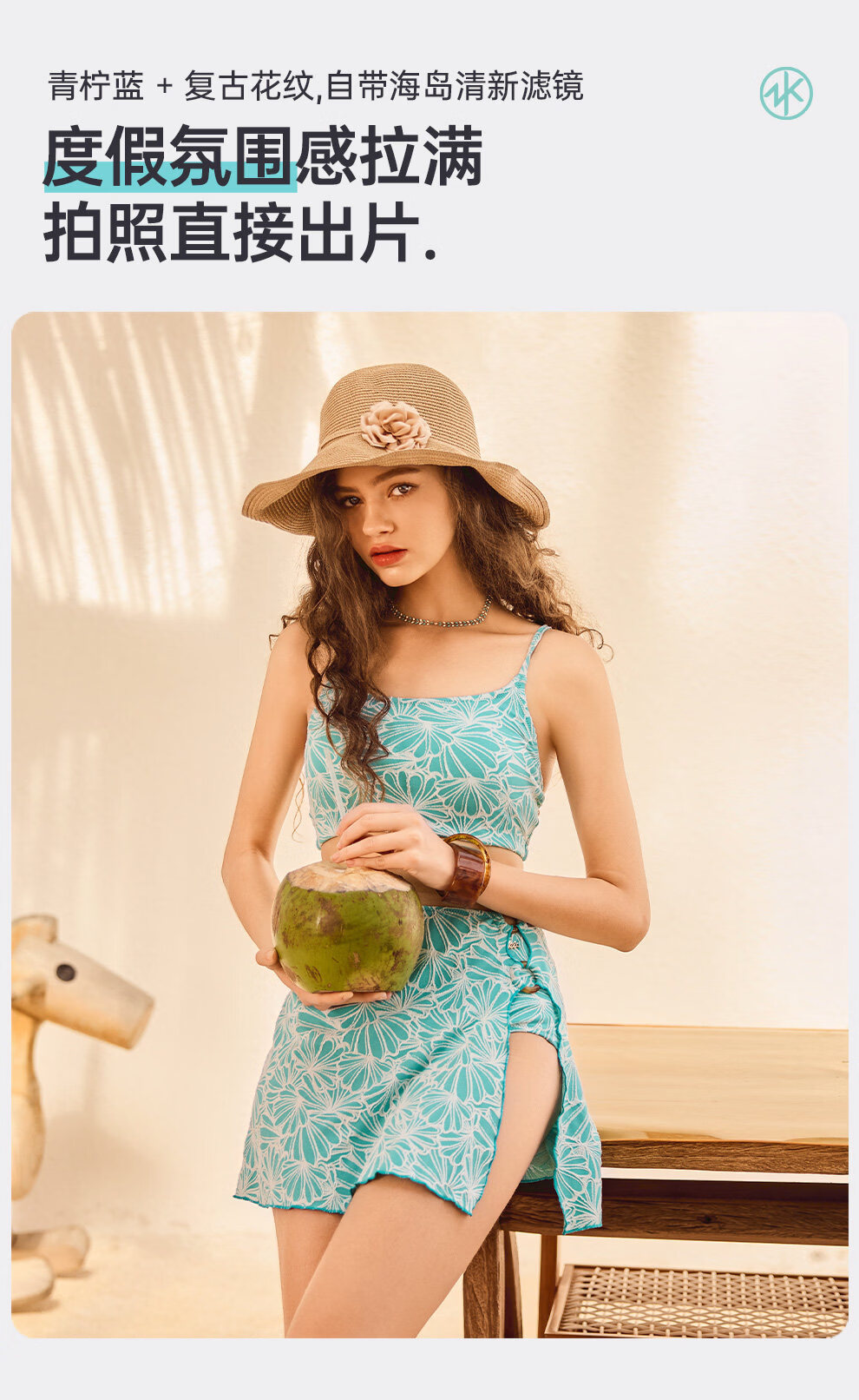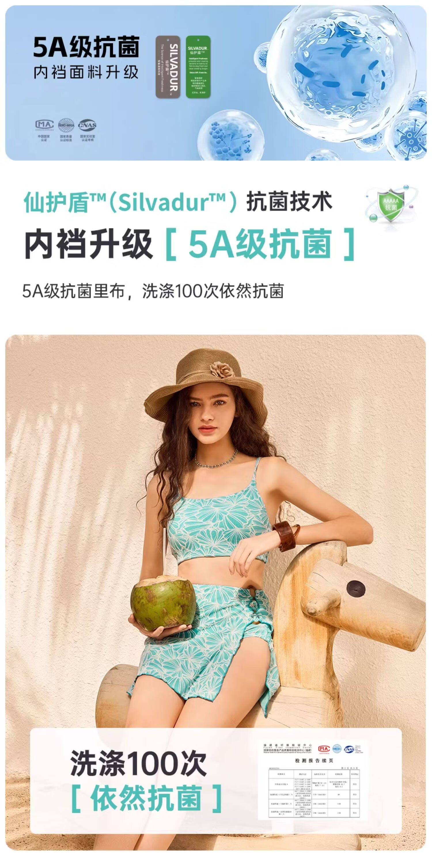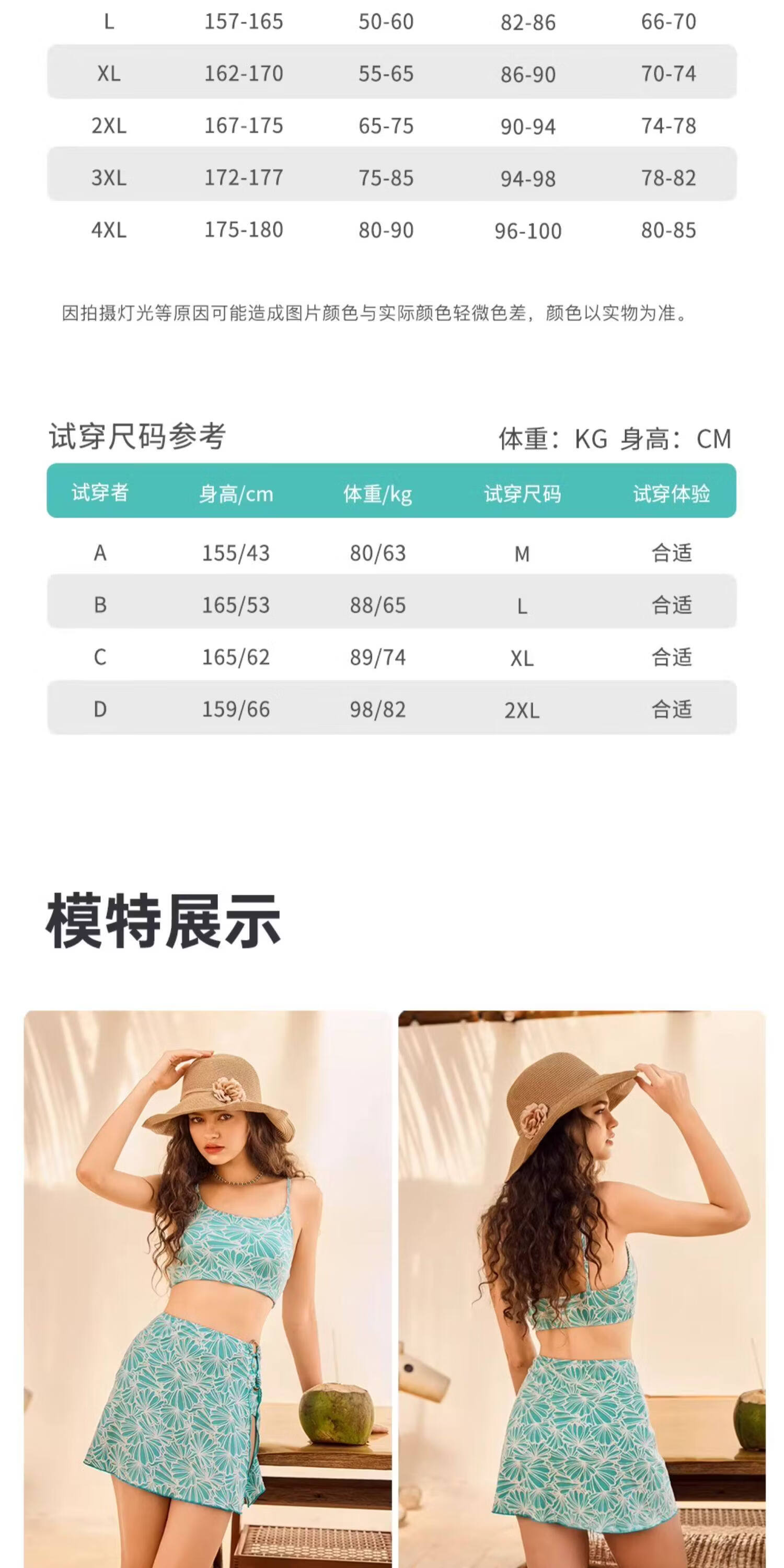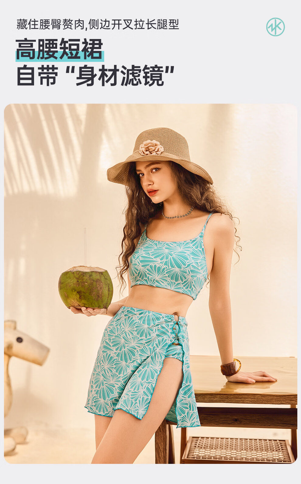 ZOKE ZOKE Swimming Bikini Swimsuit Women's Split Blouse Skirt Sexy Beach Hot Spring Resort Swimsuit Breasts Apricot Soft Mist Big Women's Bikini Apricot White Classic Pattern 126501602-1 M