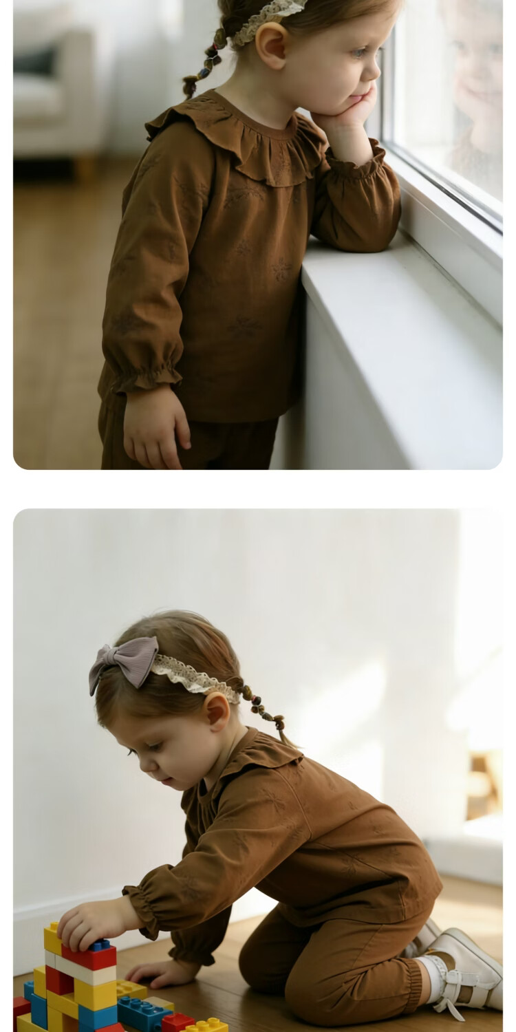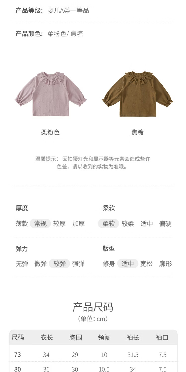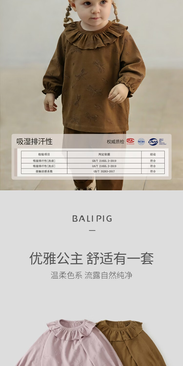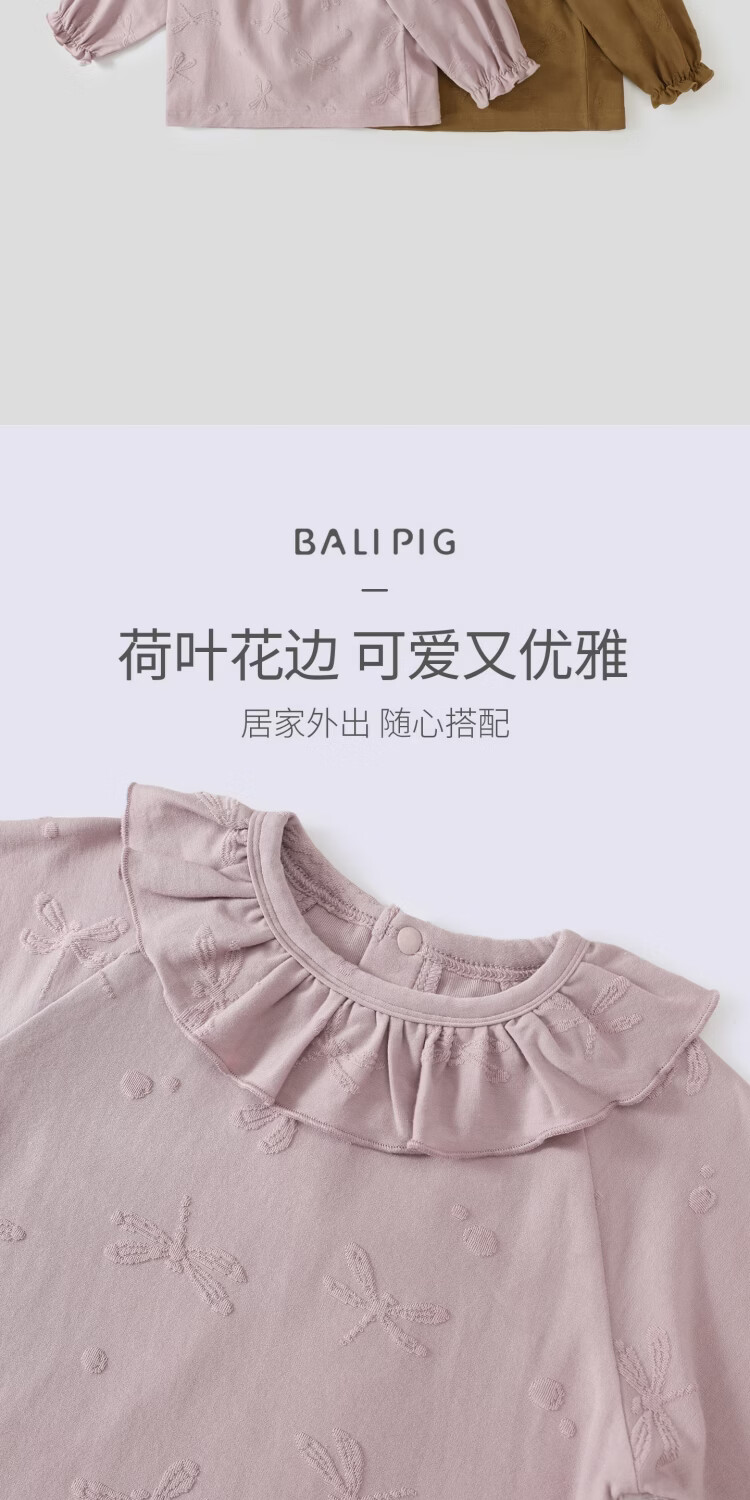 Bali Piggy Avocado Bamboo Fiber Baby Girl T-shirt Spring and Autumn Girls Long Sleeve Ruffle Clothes Four Seasons Children's Top Caramel 73