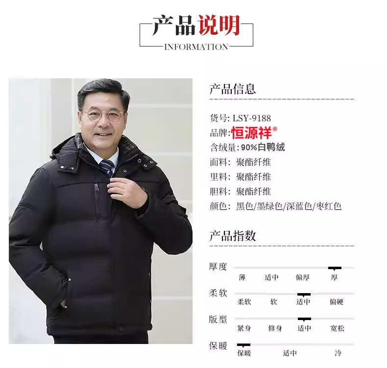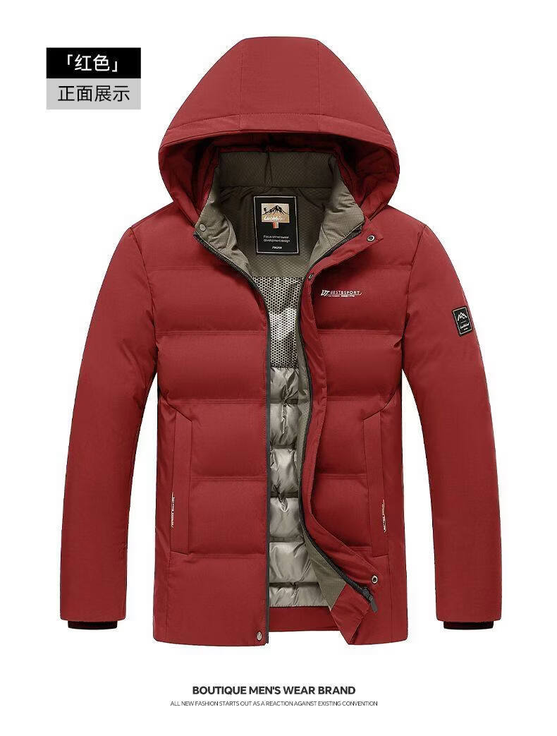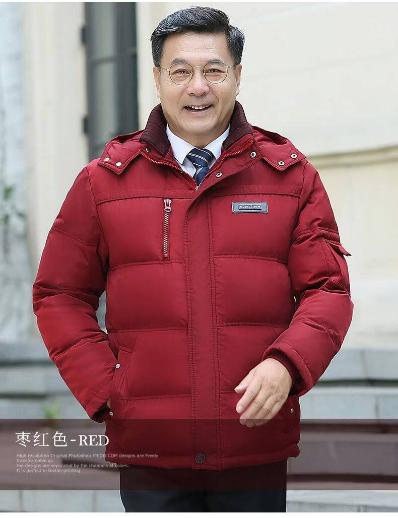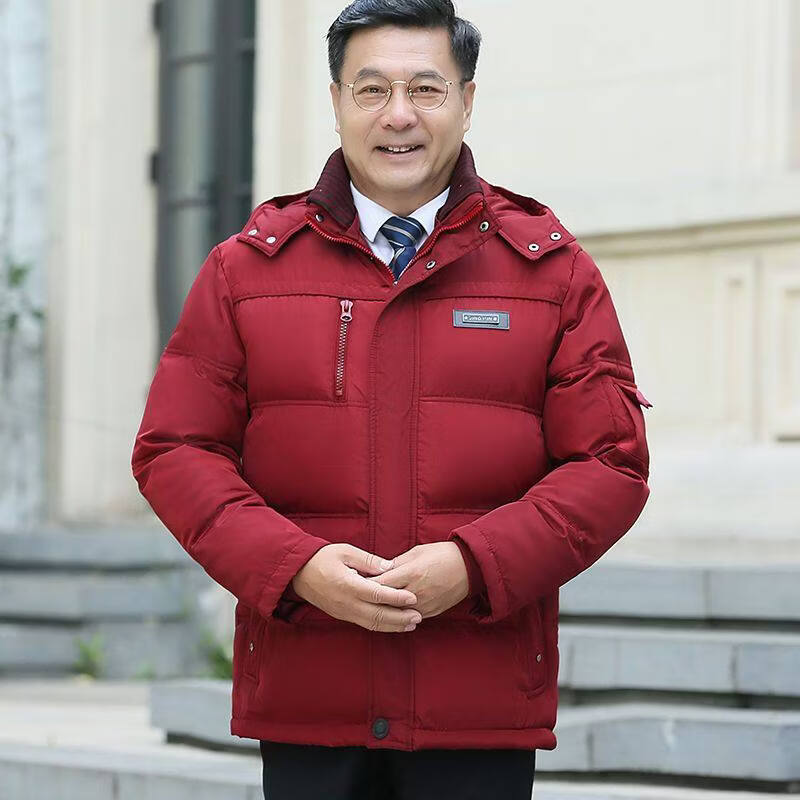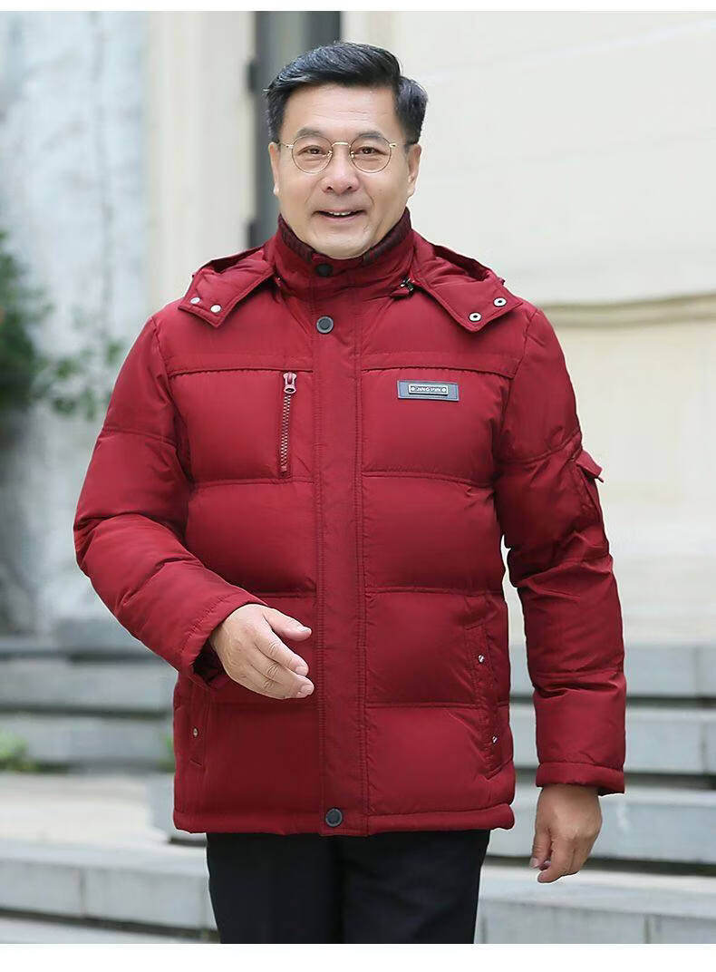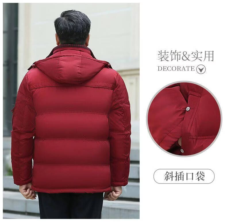 Hengyuanxiang 2026 new dad winter jacket red zodiac year festive middle-aged and elderly men's down jacket short style maroon XL size 100-120Jin Jin equals 0.5 kg