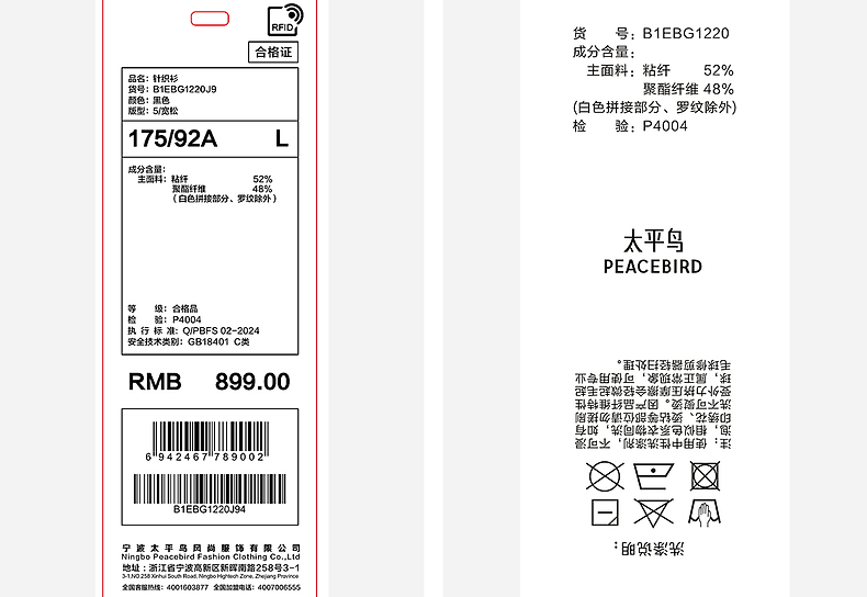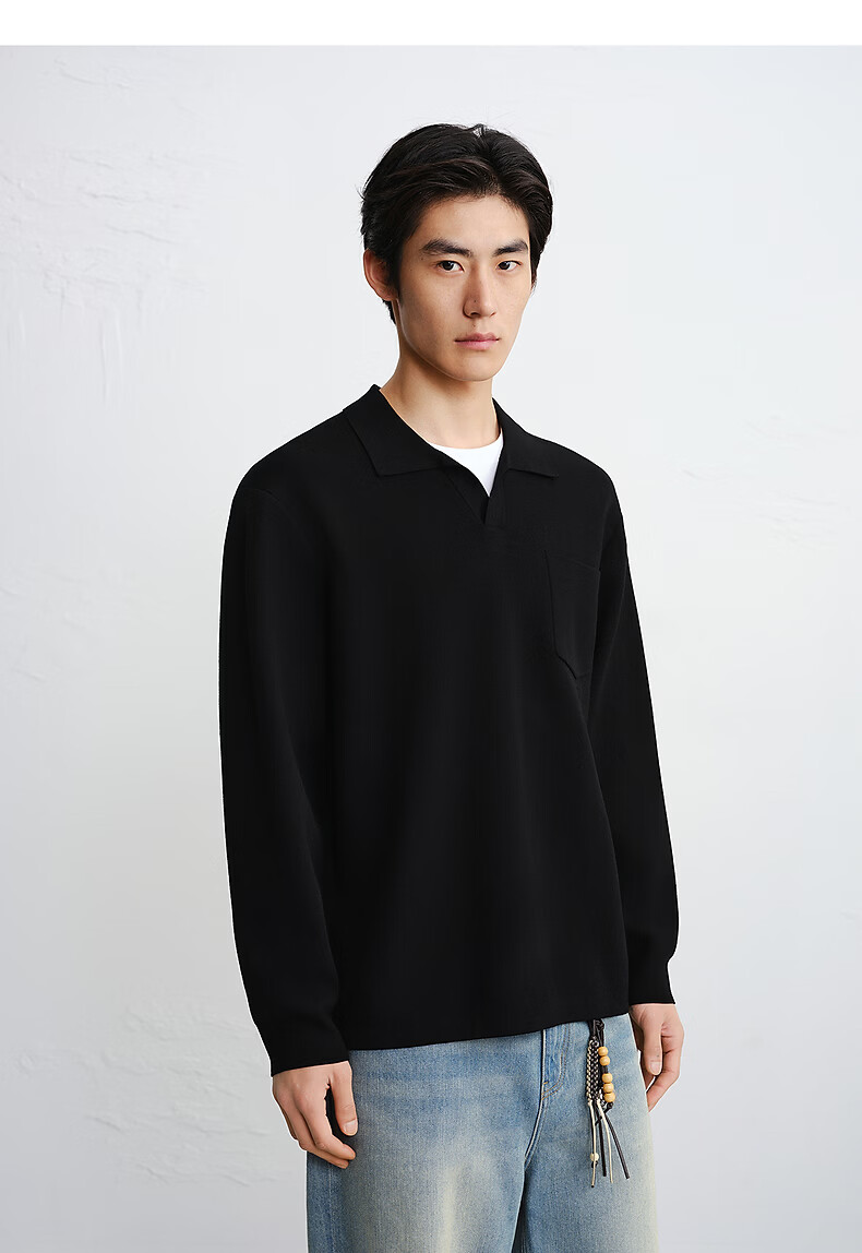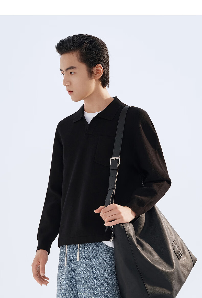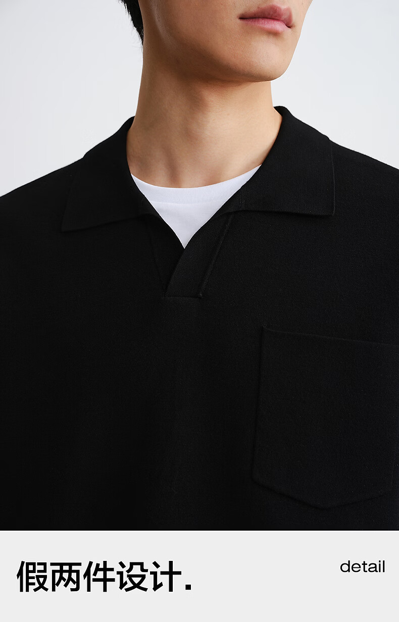 PEACEBIRD Men's Wear Shopping Mall Same Style Trendy Knitwear Fake Two-Piece Collar Sweater Men's B1EBG1220 Black 1 M