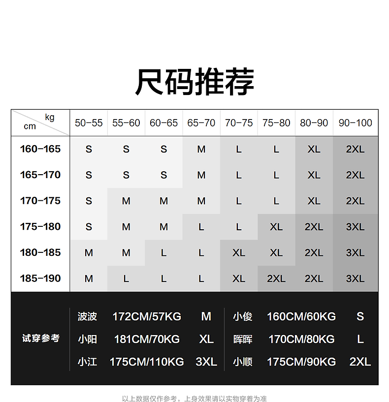 China (cm) 165 / 88-90 170 / 96-98 175 / 108-110 180 / 118-122 185 / 126-130