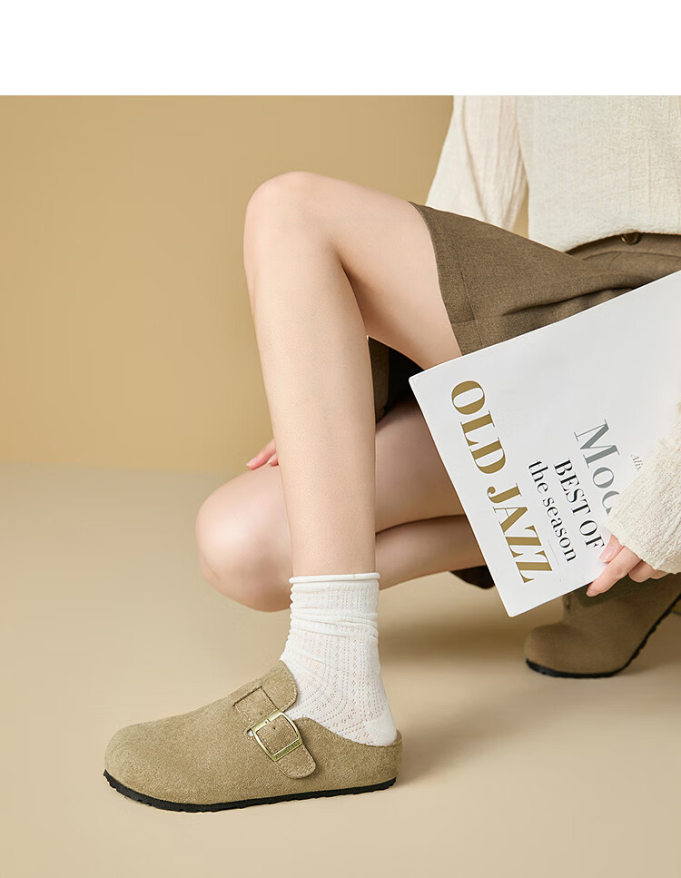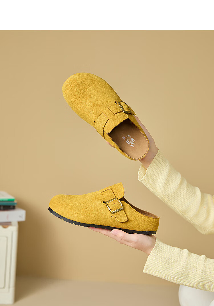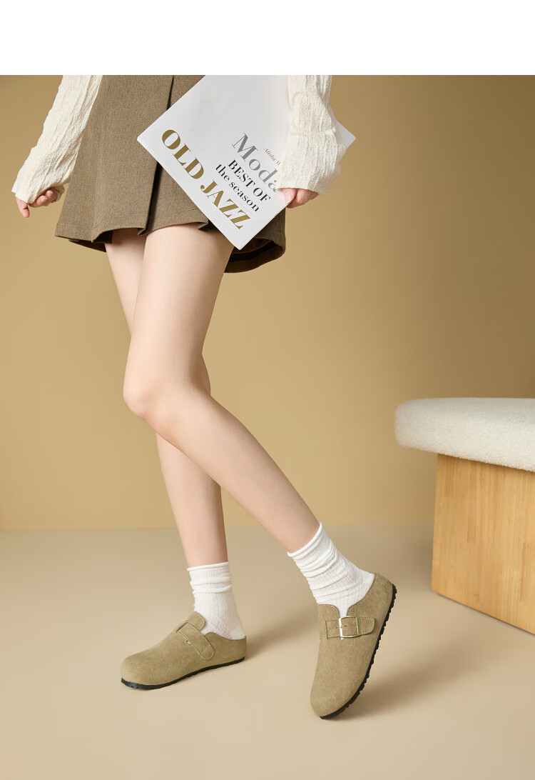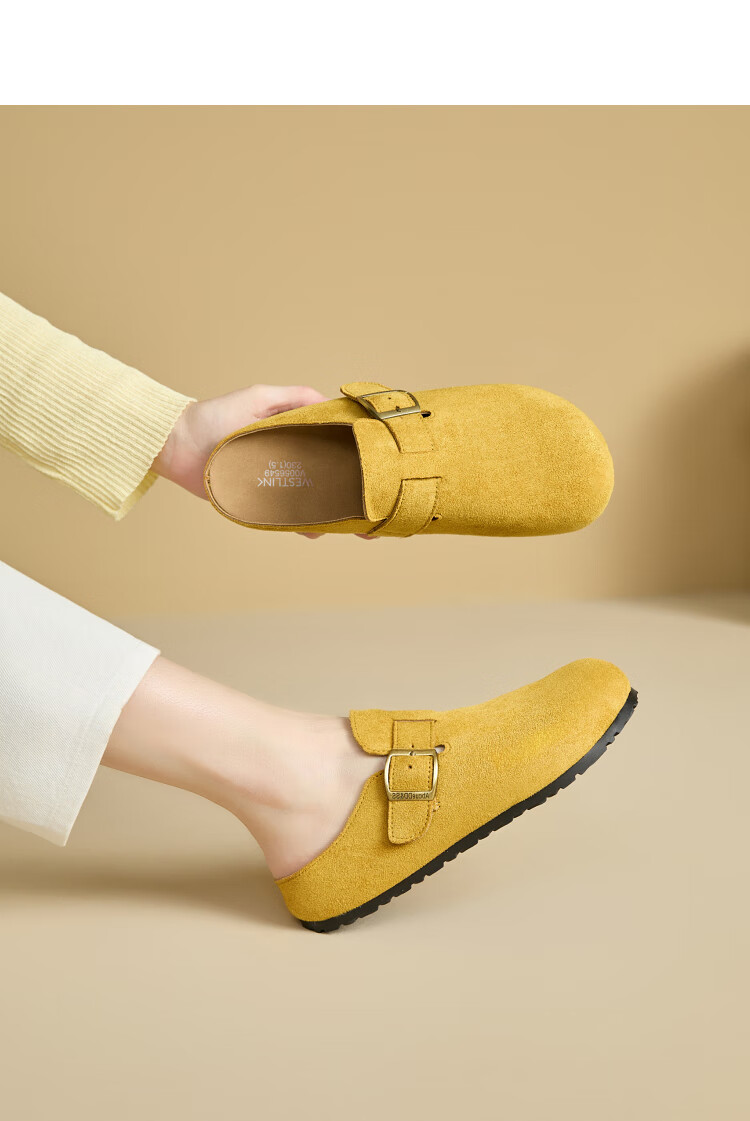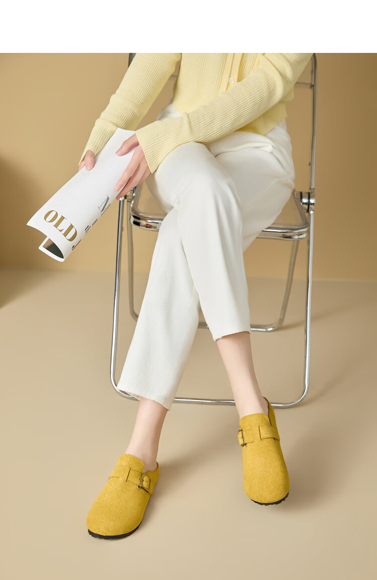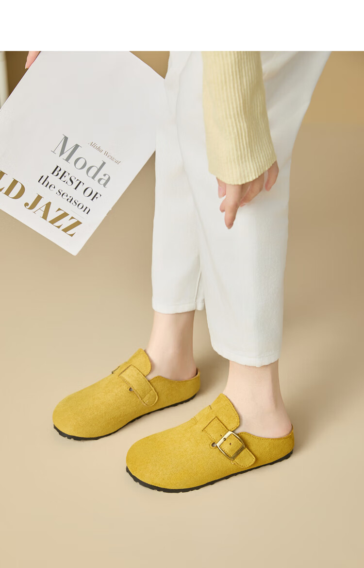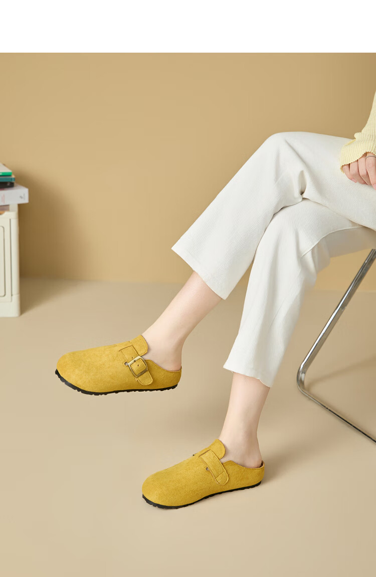 Xiyu Birkenstock Shoes Women's 2025 New Spring Versatile Yellow Slip-on Birkenstock Women's Shoes Flat Bottom Half Slippers Light Khaki 35