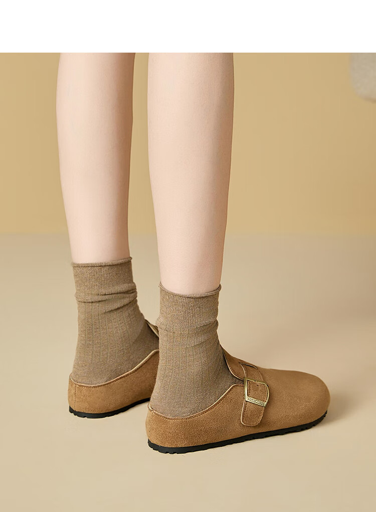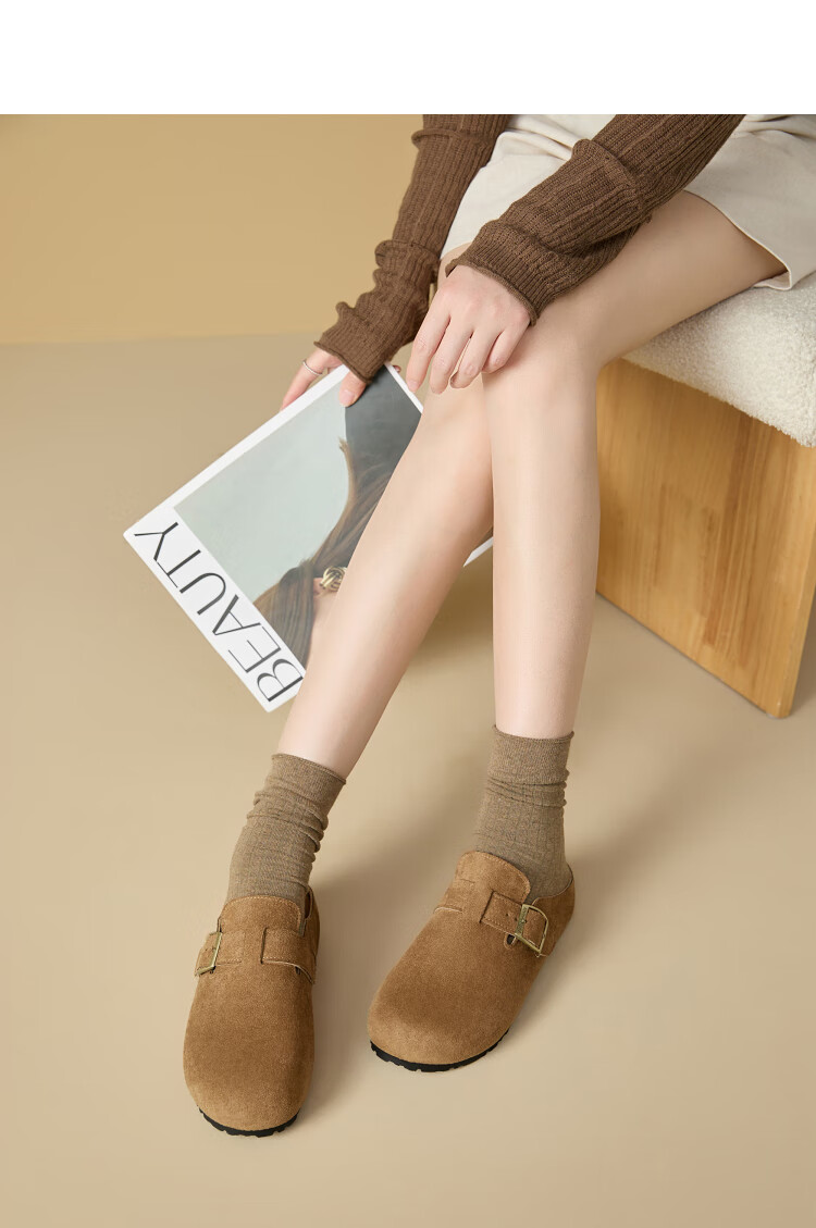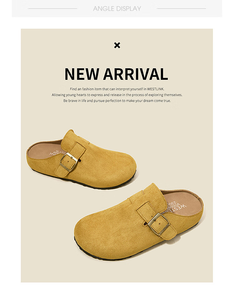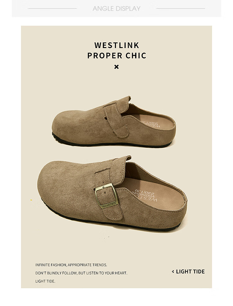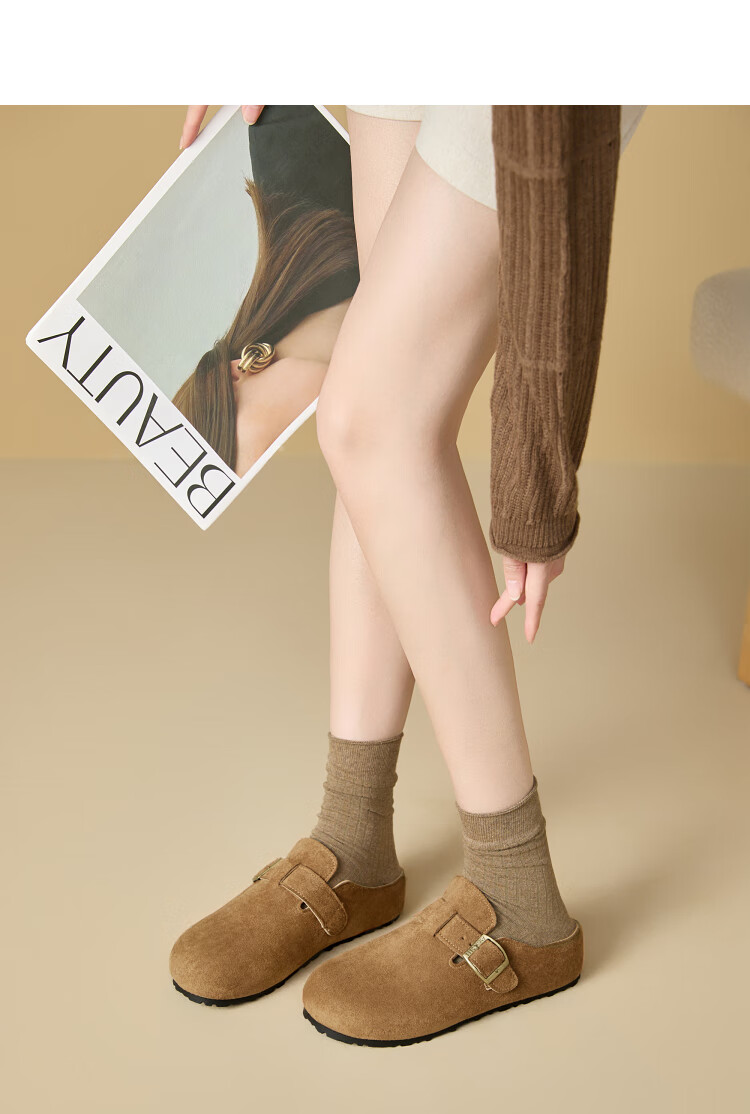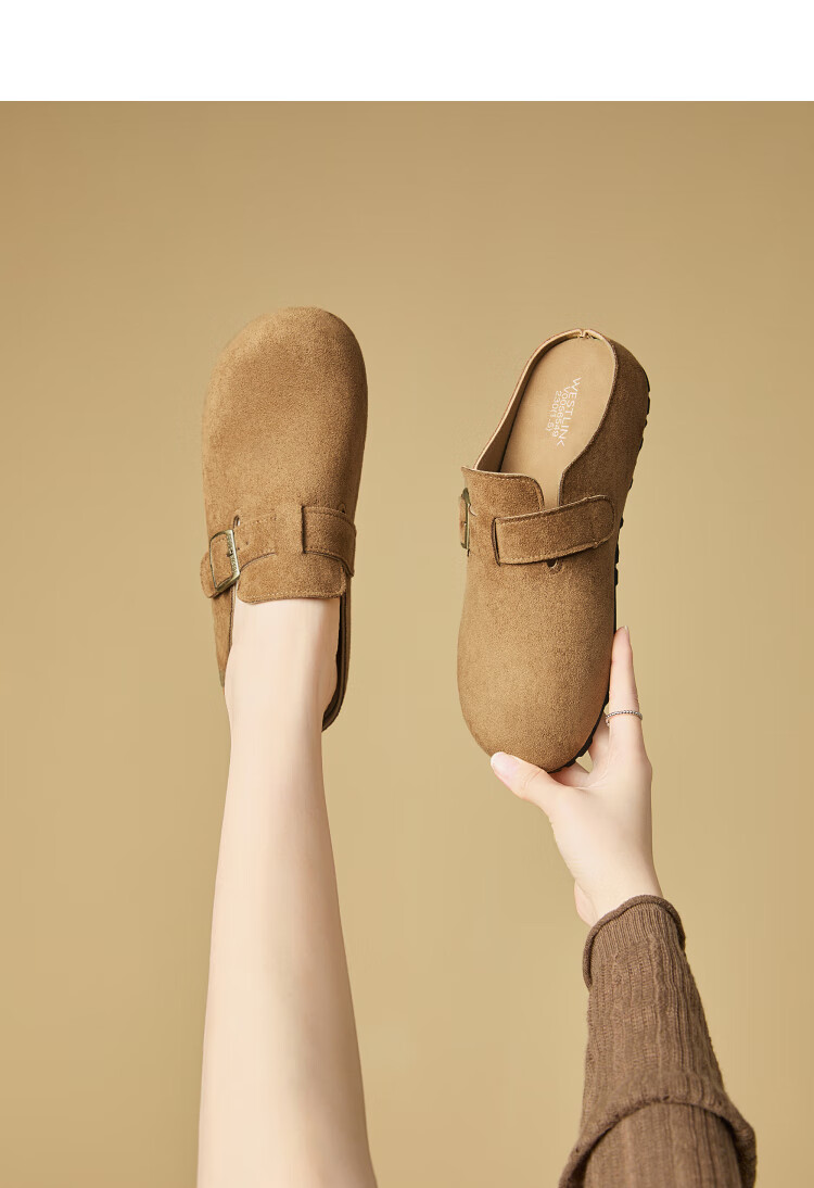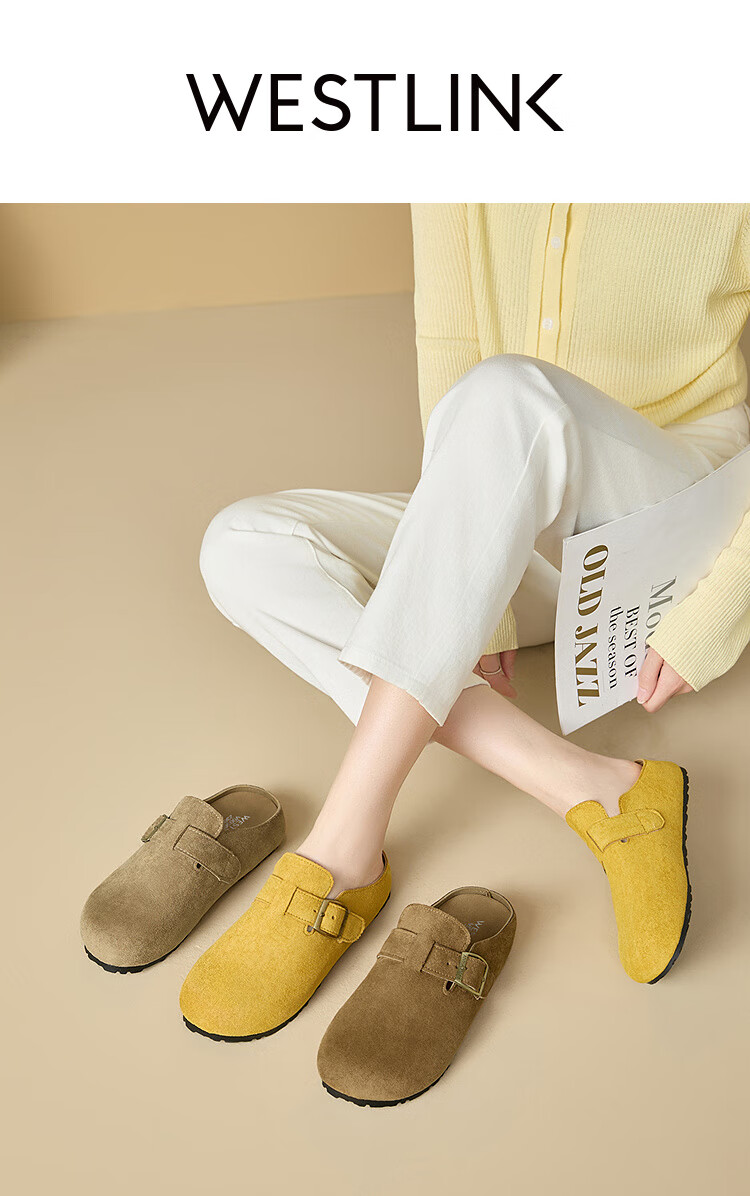 Xiyu Birkenstock Shoes Women's 2025 New Spring Versatile Yellow Slip-on Birkenstock Women's Shoes Flat Bottom Half Slippers Light Khaki 35