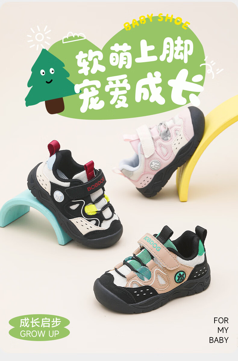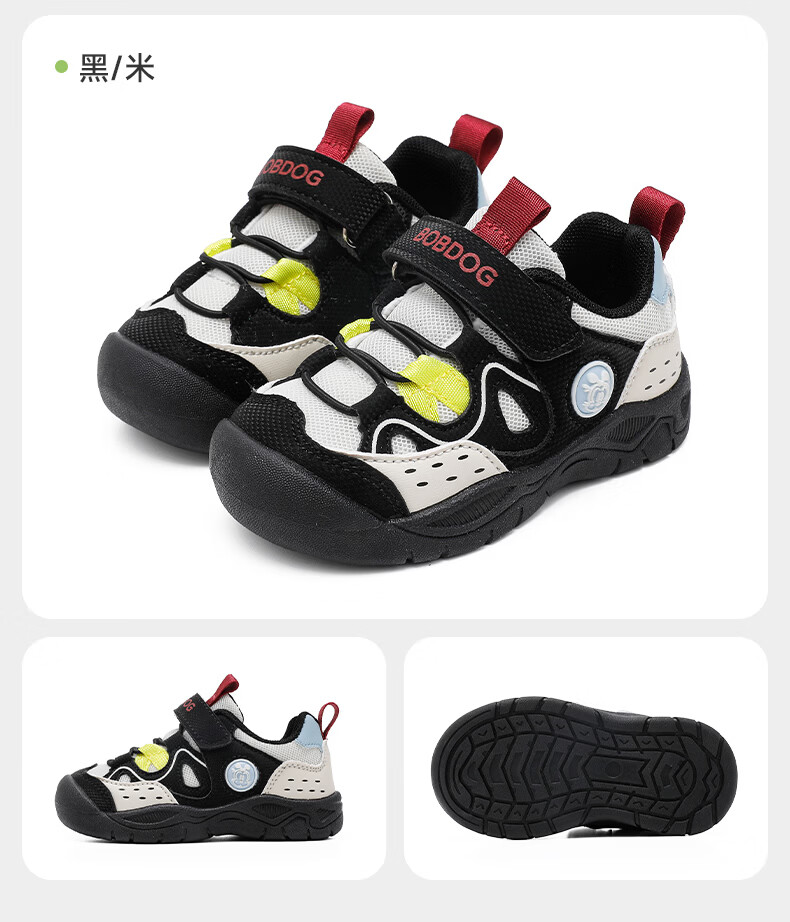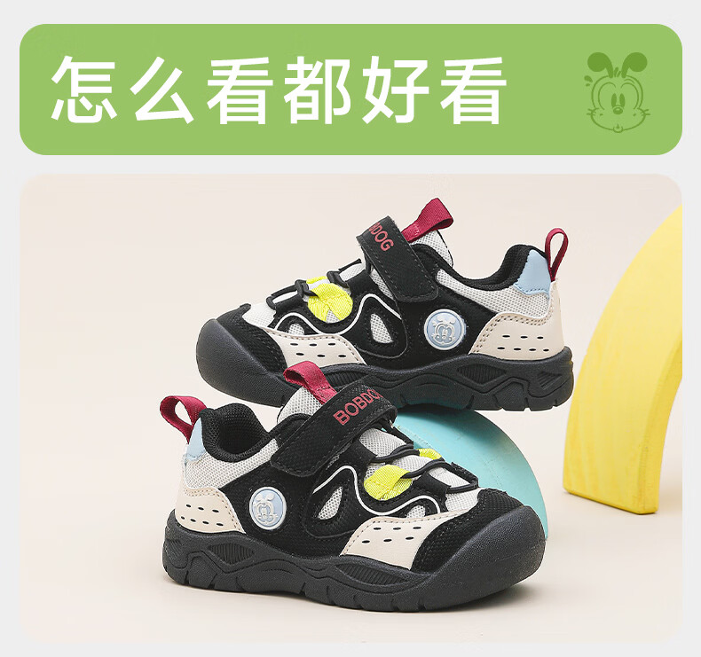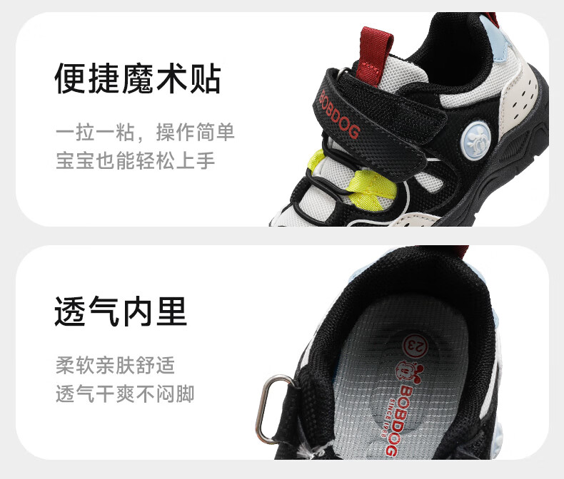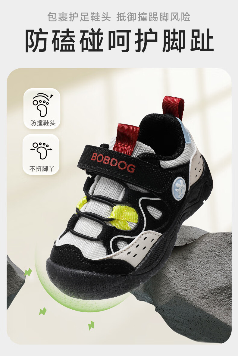 BOBDOG children's shoes, children's baby shoes, 2026 spring new kindergarten boys' functional shoes, girls' toddler shoes, black/meter 29, suitable for feet length 17.7CM
