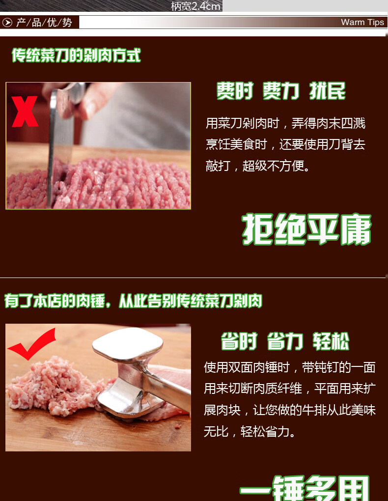 Woxuan meat hammer steak hammer steak tool steak hammer minced meat hammer large steak hammer meat floss hammer meat tool meat hammer round head small hammer