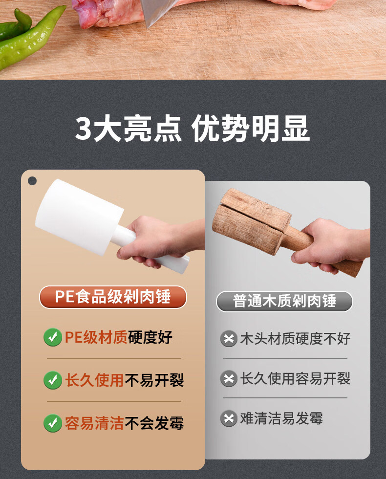 Woxuan hard plastic hammer, meat hammer, small meat hammer, meat chopping hammer, bone chopping hammer, fish killing hammer, kitchen helper back knocking hammer, diameter 10 cm