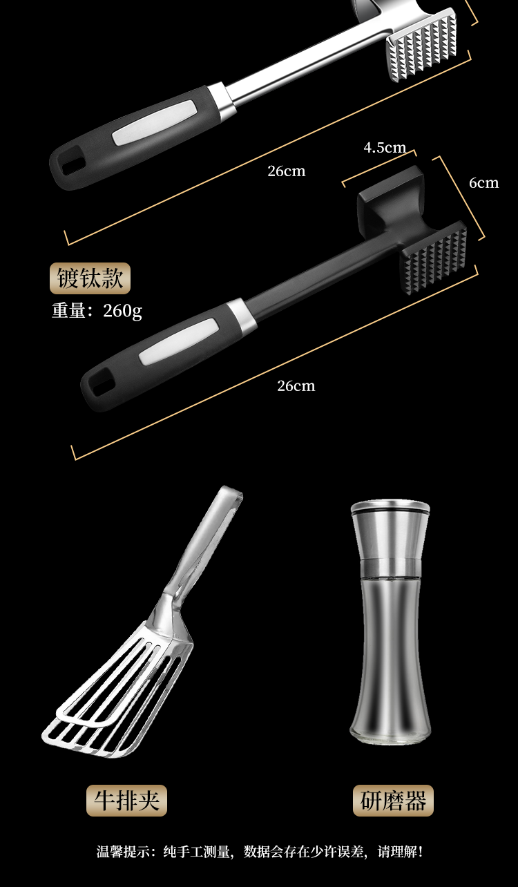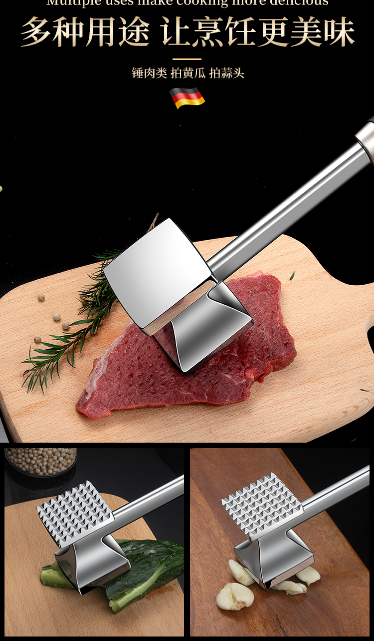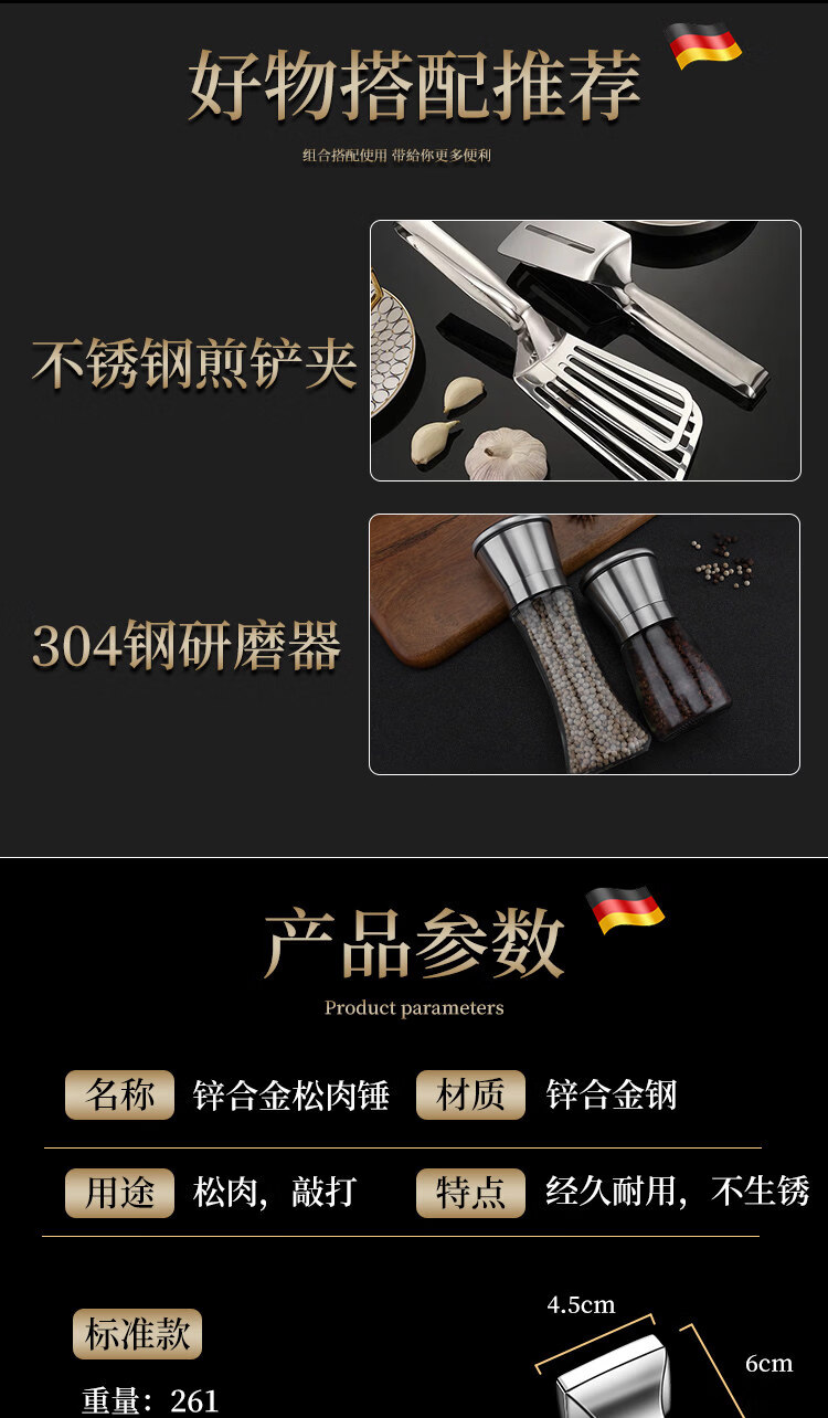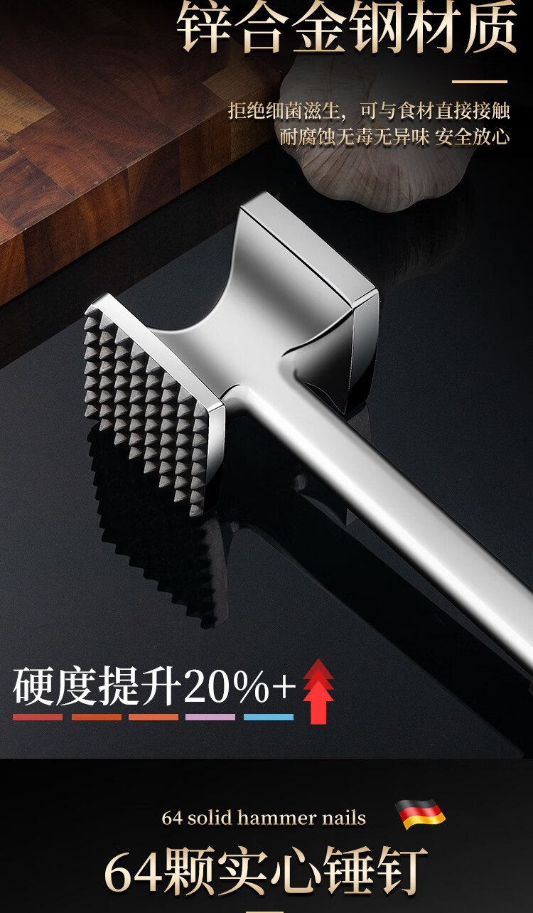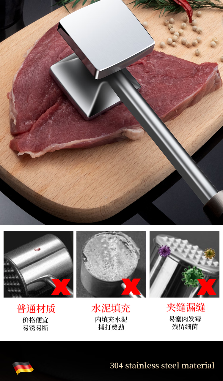 沃选牛排松肉锤不锈钢实心家用砸肉锤工具捶肉器专用敲打断筋肉锤神器 64钉不锈钢肉锤【率99%】