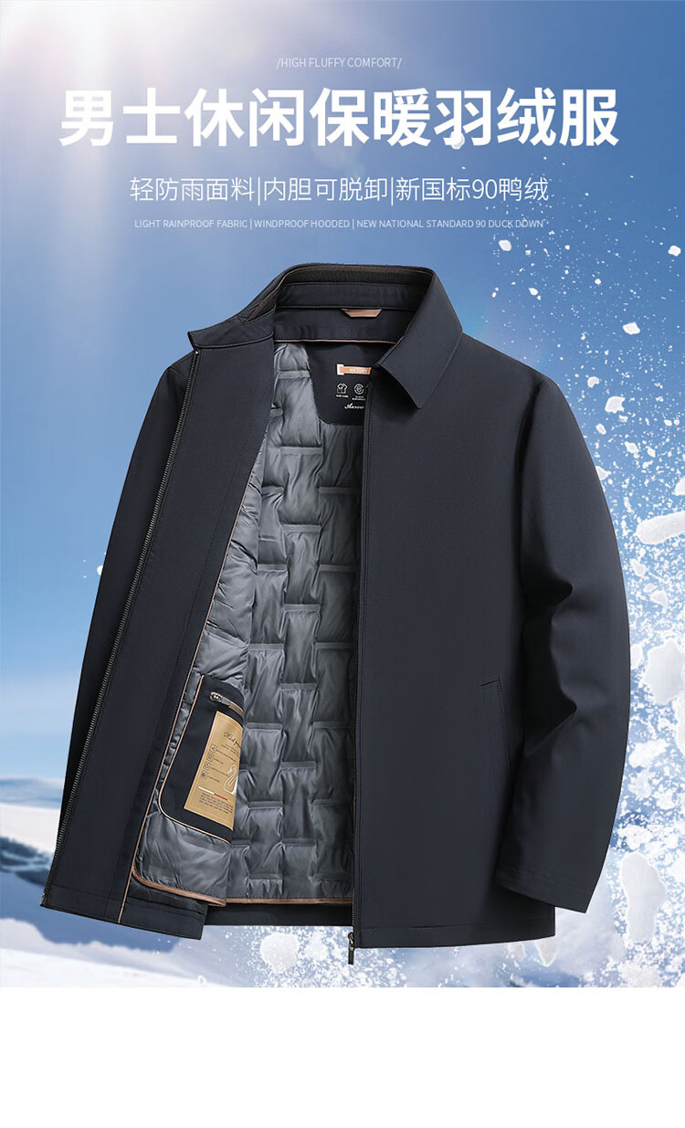 Snow Flying (SNOWFLYING) High-end Lightweight Down Jacket Men's Short Style 2025 Autumn and Winter New Business Executive Down Jacket Warm Jacket Dark Blue 3XL Men's Style 2025 New Style Recommended 175-190Jin Jin is equal to 0.5 kg