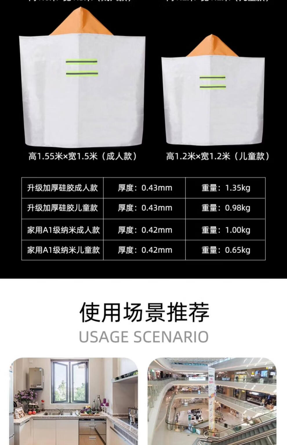 Fireproof cloak cape for home firefighting special certified high-rise fire escape clothing equipment fire extinguishing fire blanket adult model_thick silicone_come with self-rescue respirator