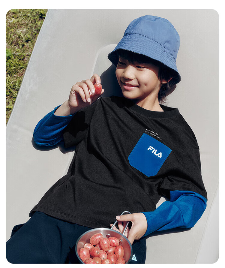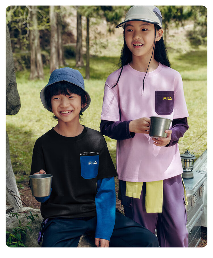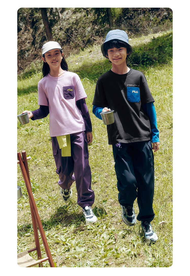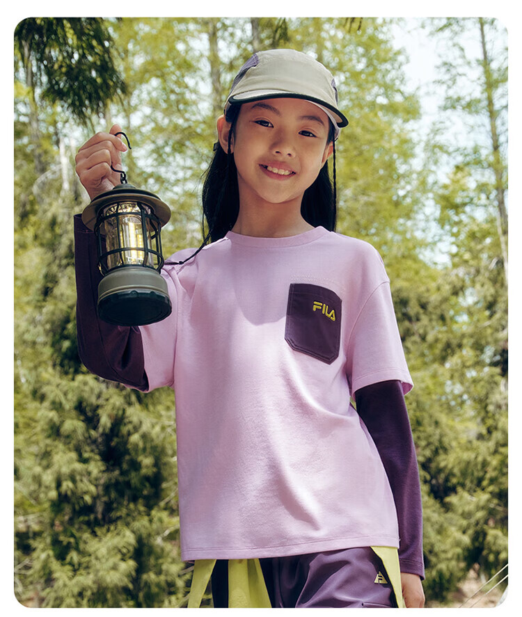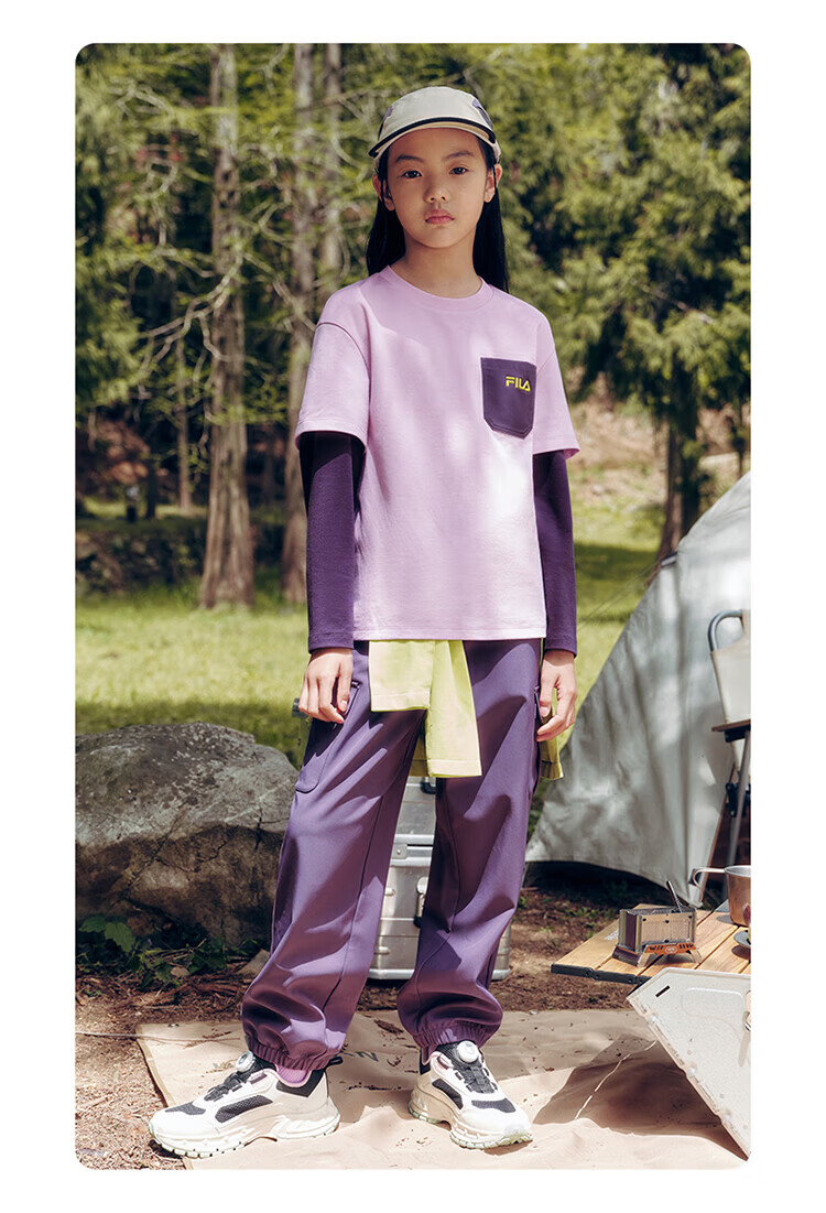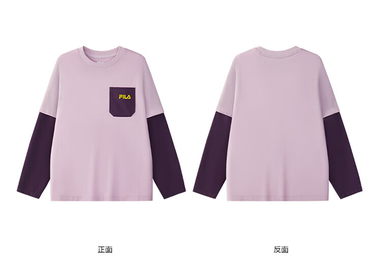 FILA Children's Clothing Long T Category 2025 Autumn New Men's and Women's Long Sleeve T-shirts for Medium and Large Children Blushed Purple-VT 130