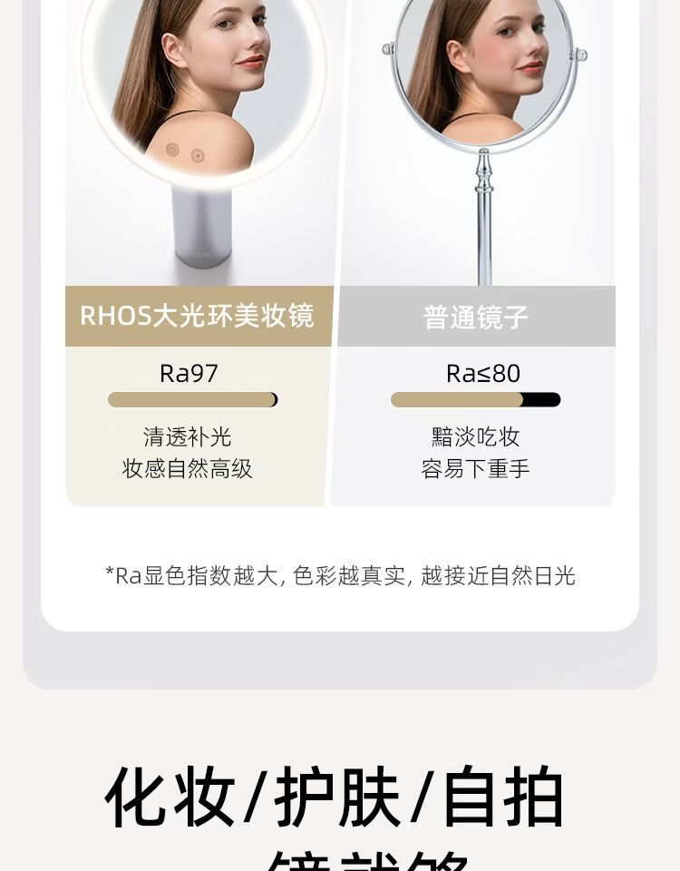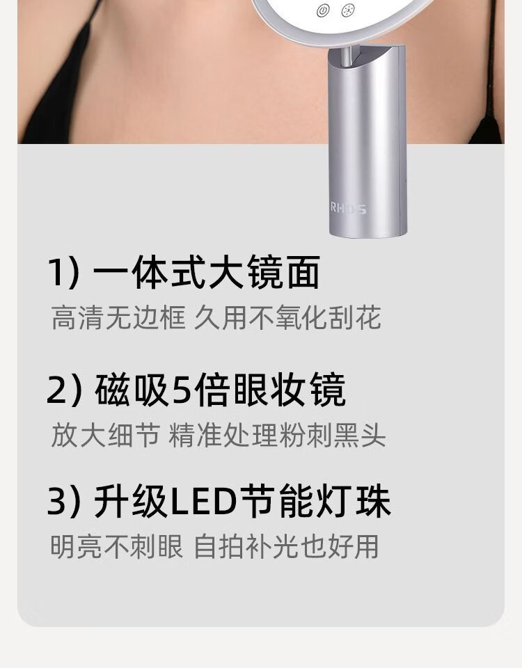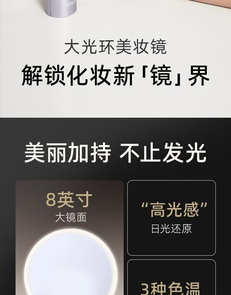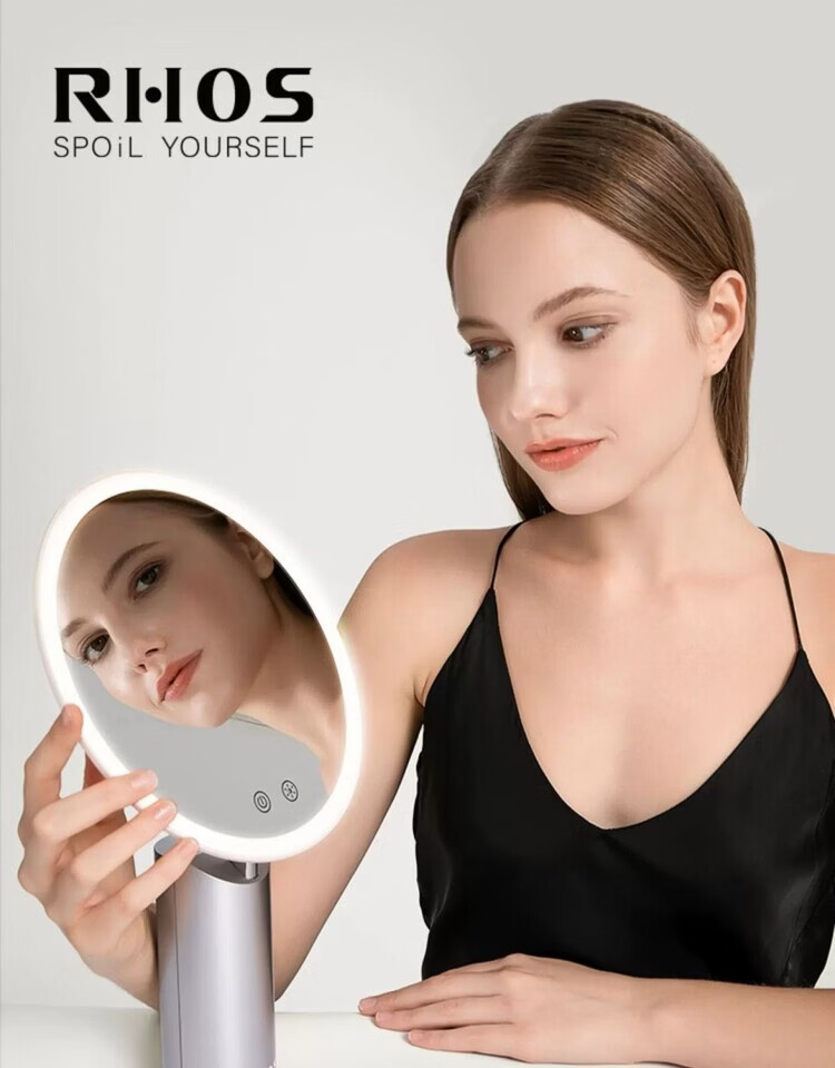 RHOS light luxury large aperture LED makeup mirror desktop with light smart high-definition makeup mirror home desktop makeup mirror column makeup mirror large halo + five times magnetic small mirror