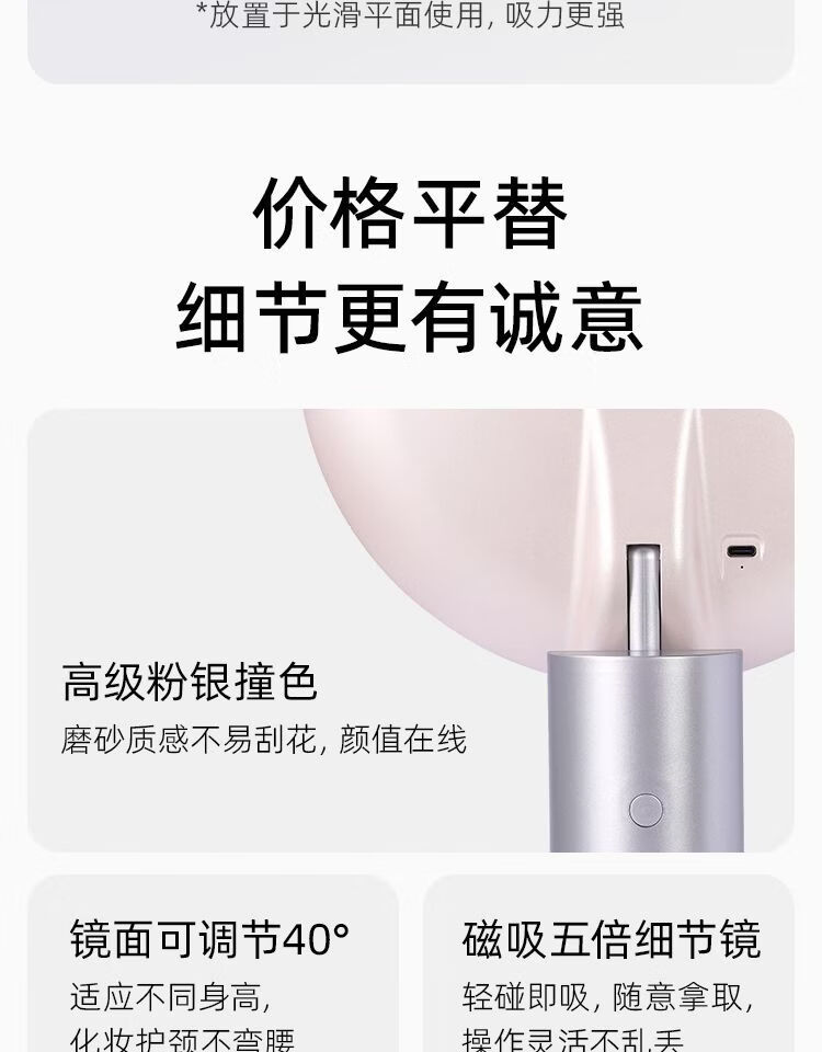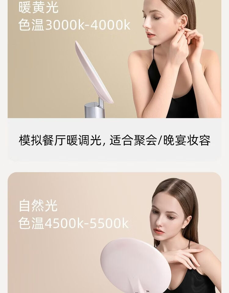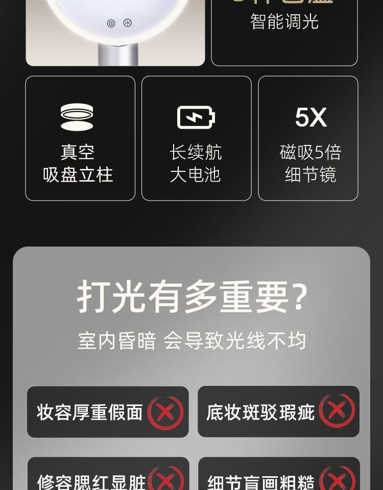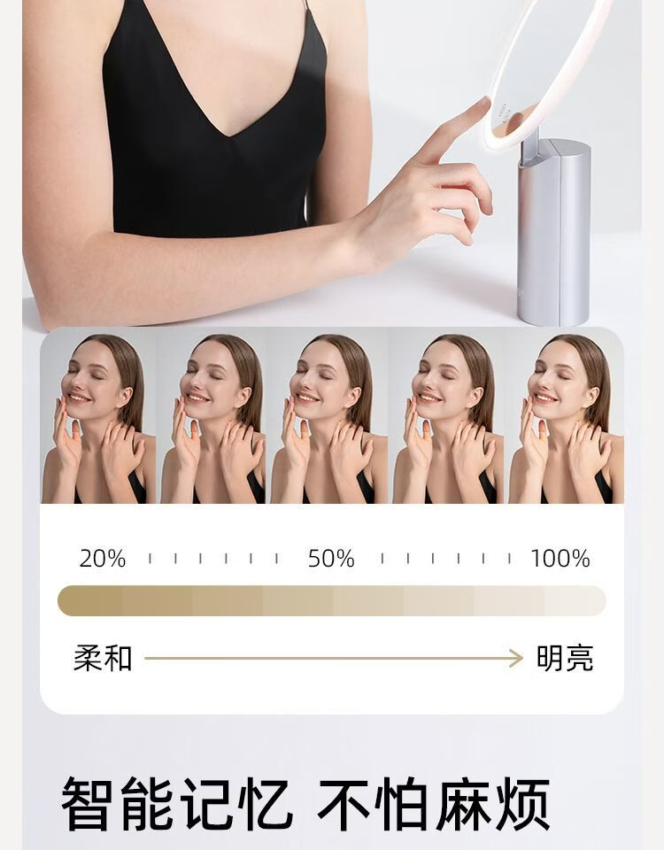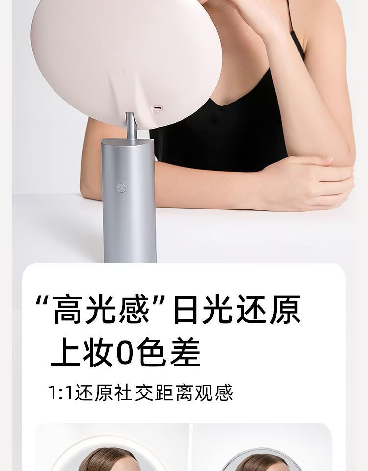 RHOS light luxury large aperture LED makeup mirror desktop with light smart high-definition makeup mirror home desktop makeup mirror column makeup mirror large halo + five times magnetic small mirror